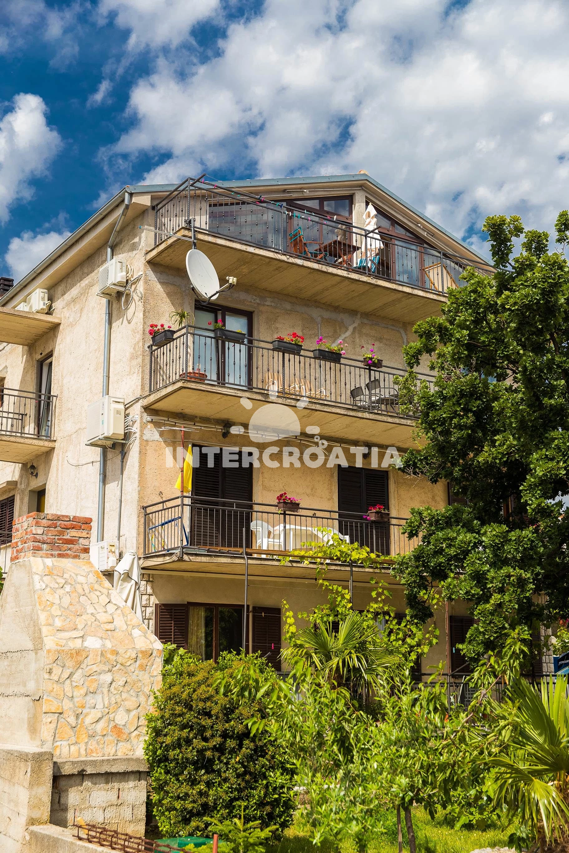 Vzdálenosti: Moře 500 m, pláž 500 m (oblázky), supermarket 300 m, čerpací stanice 600 m, směnárna 600 m, diskotéka 650 m, tenisové kurty 700 m, centrum 700 m, restaurace 700 m, ambulance 700 m, pošta 700 m, potápění 800 m, lékárna 800 m, bar 800 m, banka 800 m, marina 1 km, muzeum 1 km, letiště (Rijeka) 25 km,