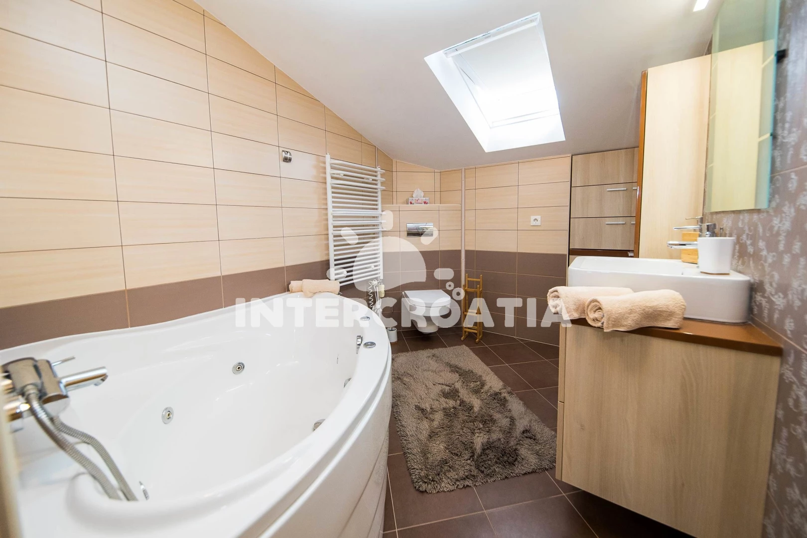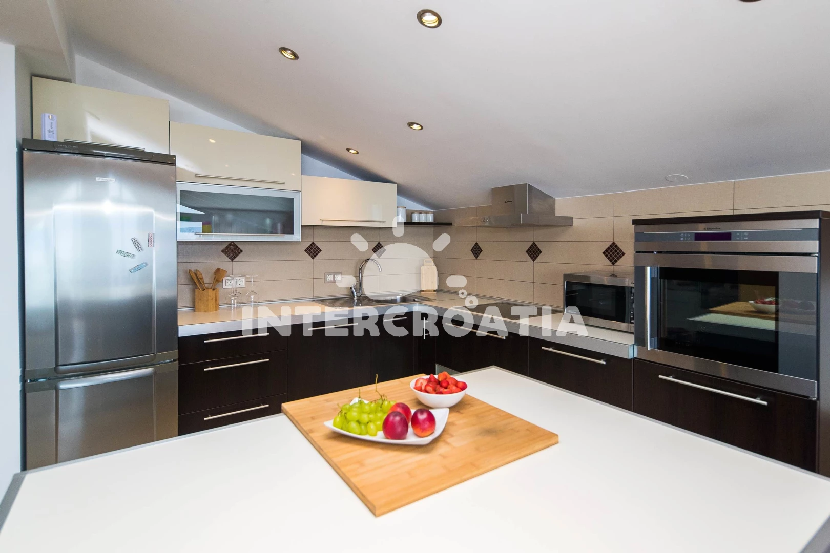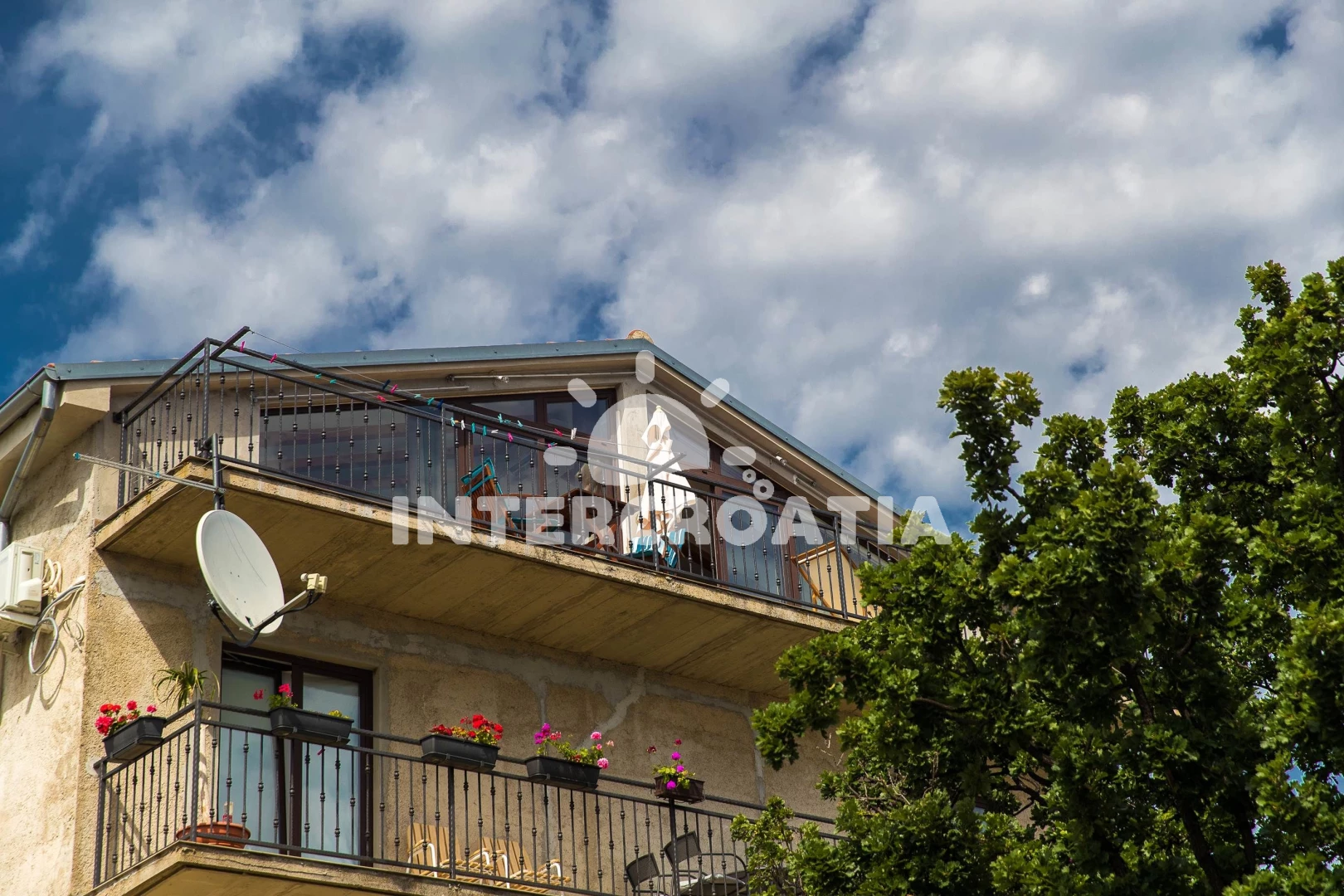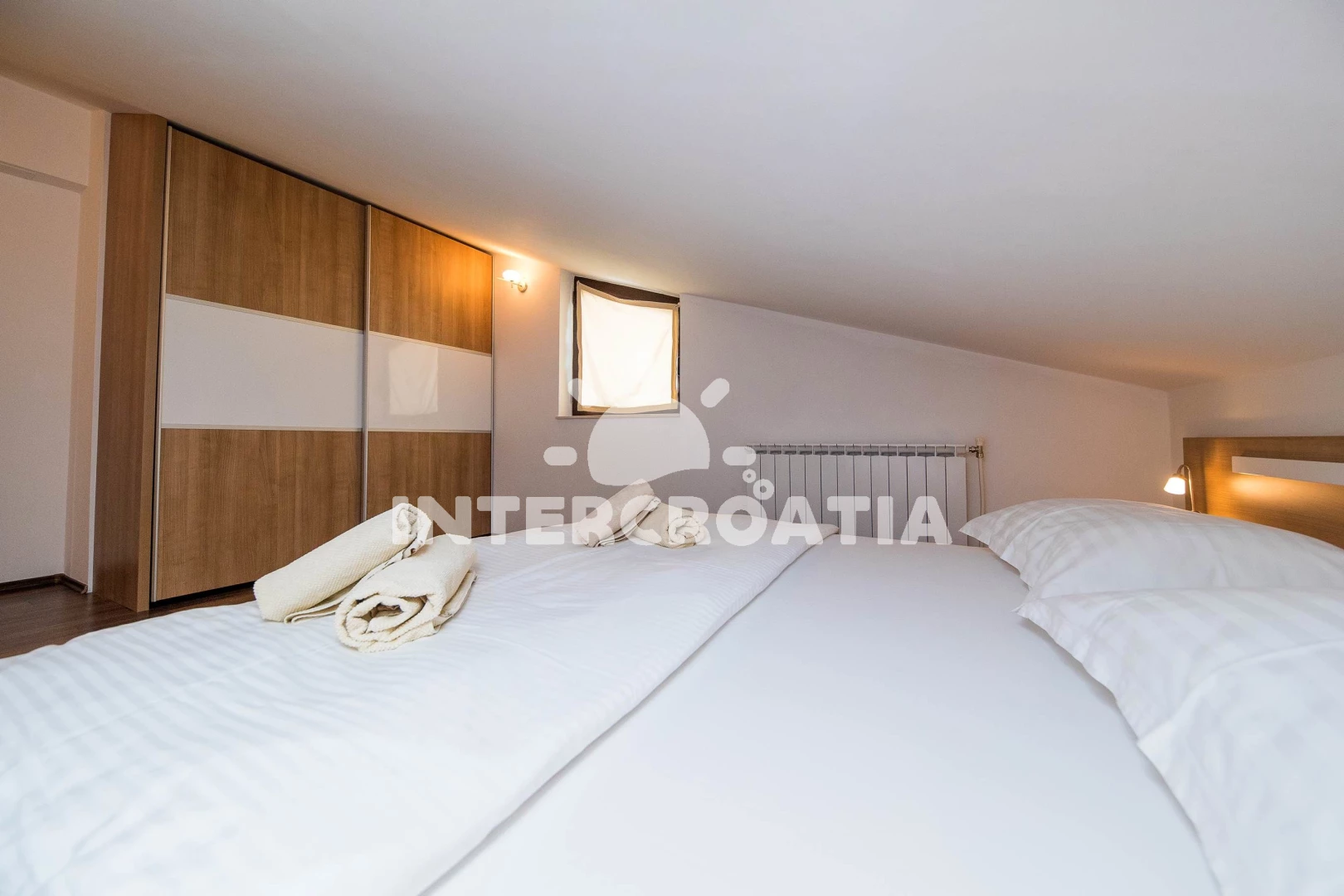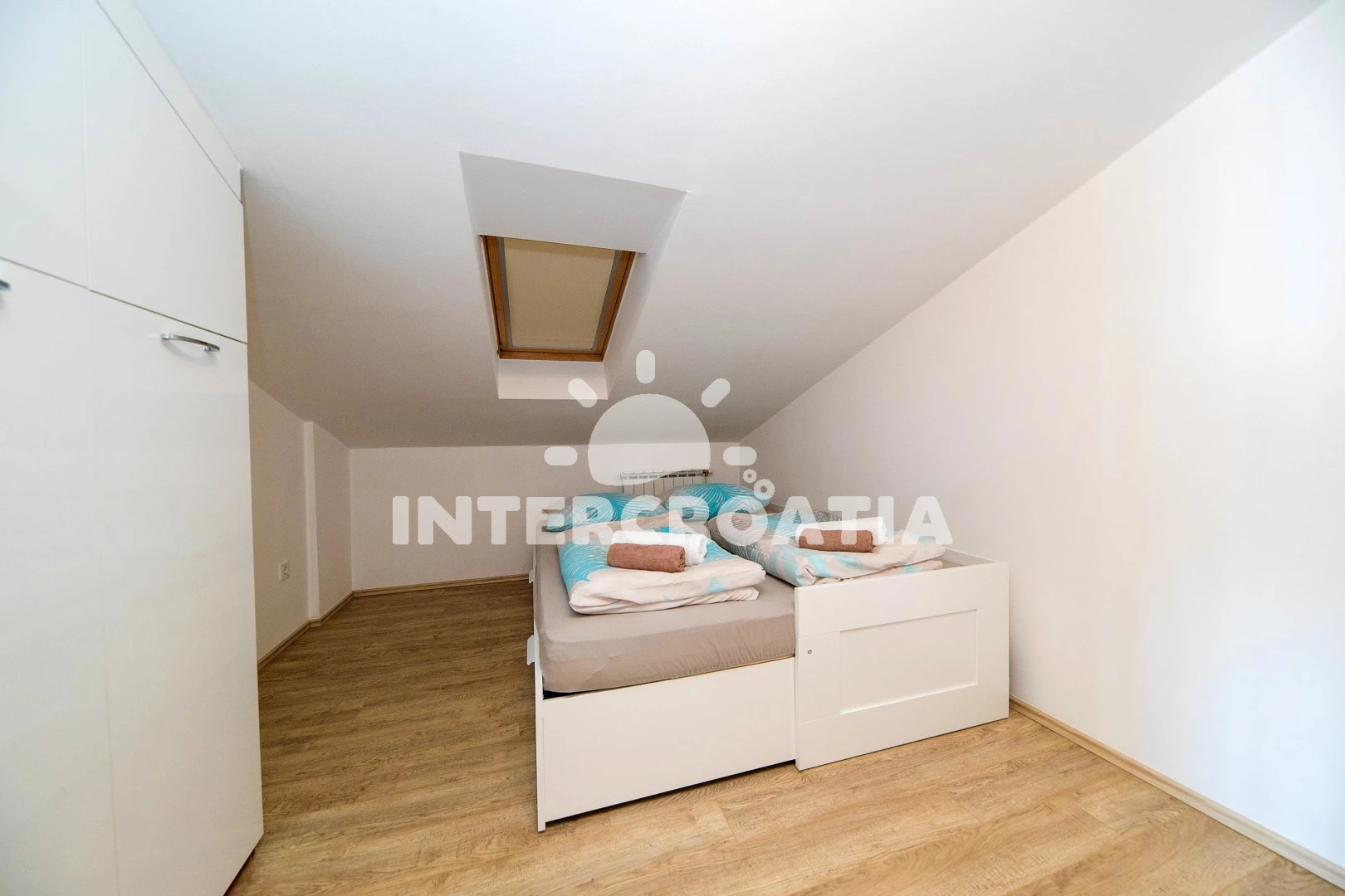 Apartmán (120 m2) s balkonem, a výhledem na moře. Nachází se v podkroví objektu. Apartmán má 2 ložnice a je vhodný pro až 4 osoby. Kuchyňská linka je vybavena varnou deskou, troubou, toustovačem, kávovarem, myčkou na nádobí, rychlovarnou konvicí, nádobím, lednicí, mrazákem. K dispozici televize se satelitním programem, žehlička. První ložnice s dvoulůžkem. Druhá ložnice s dvoulůžkem. Koupelna se sprchovým koutem, umyvadlem, WC.