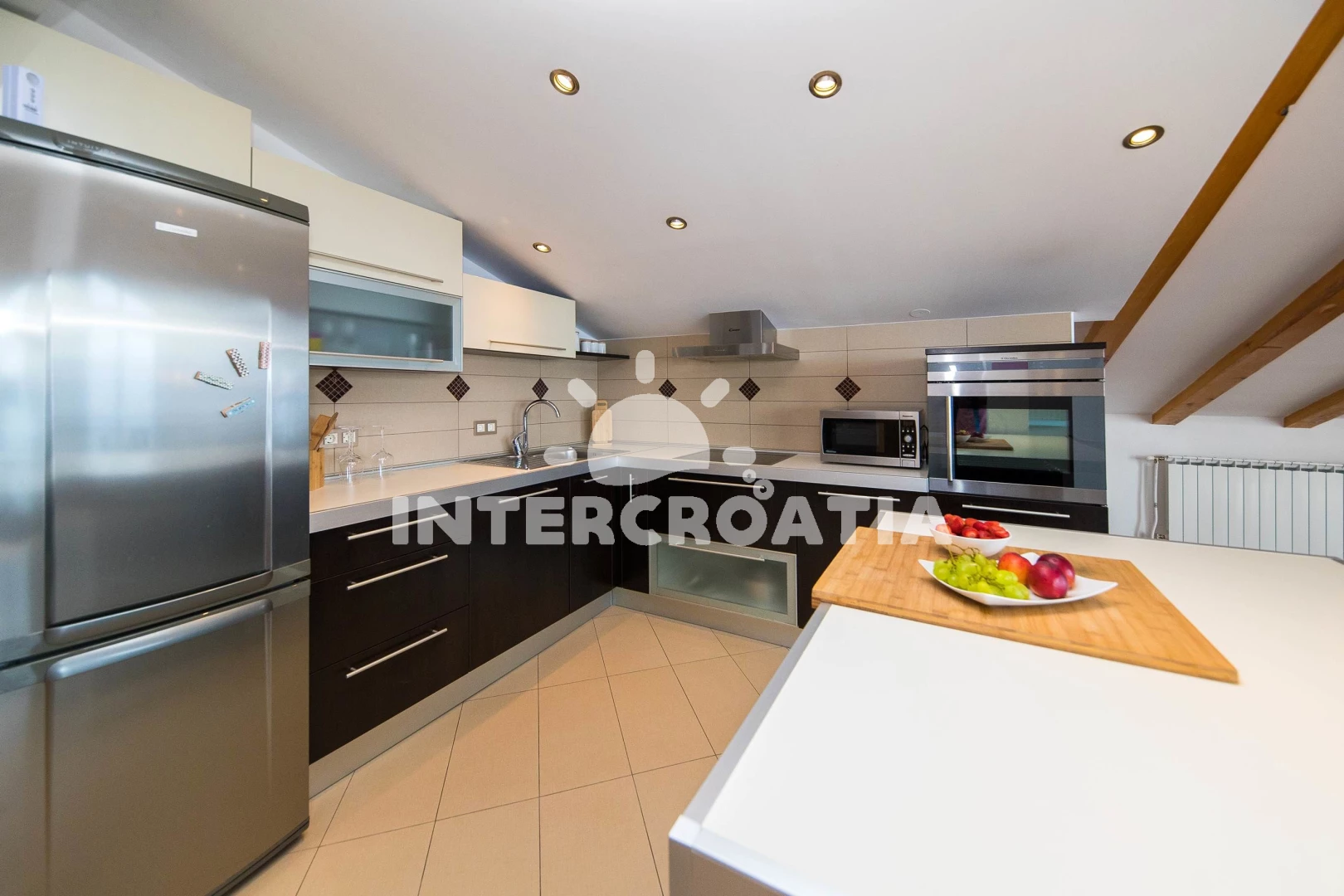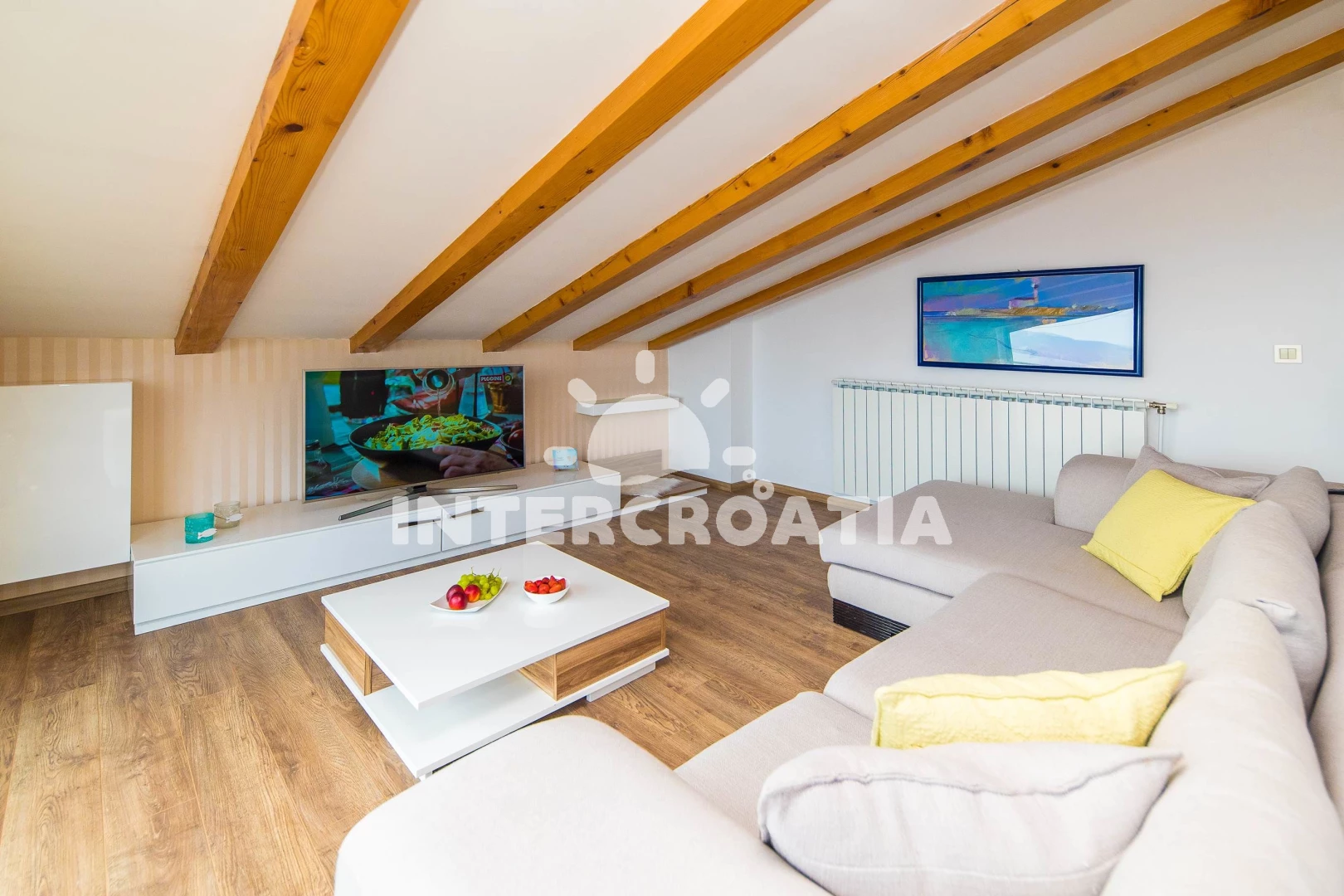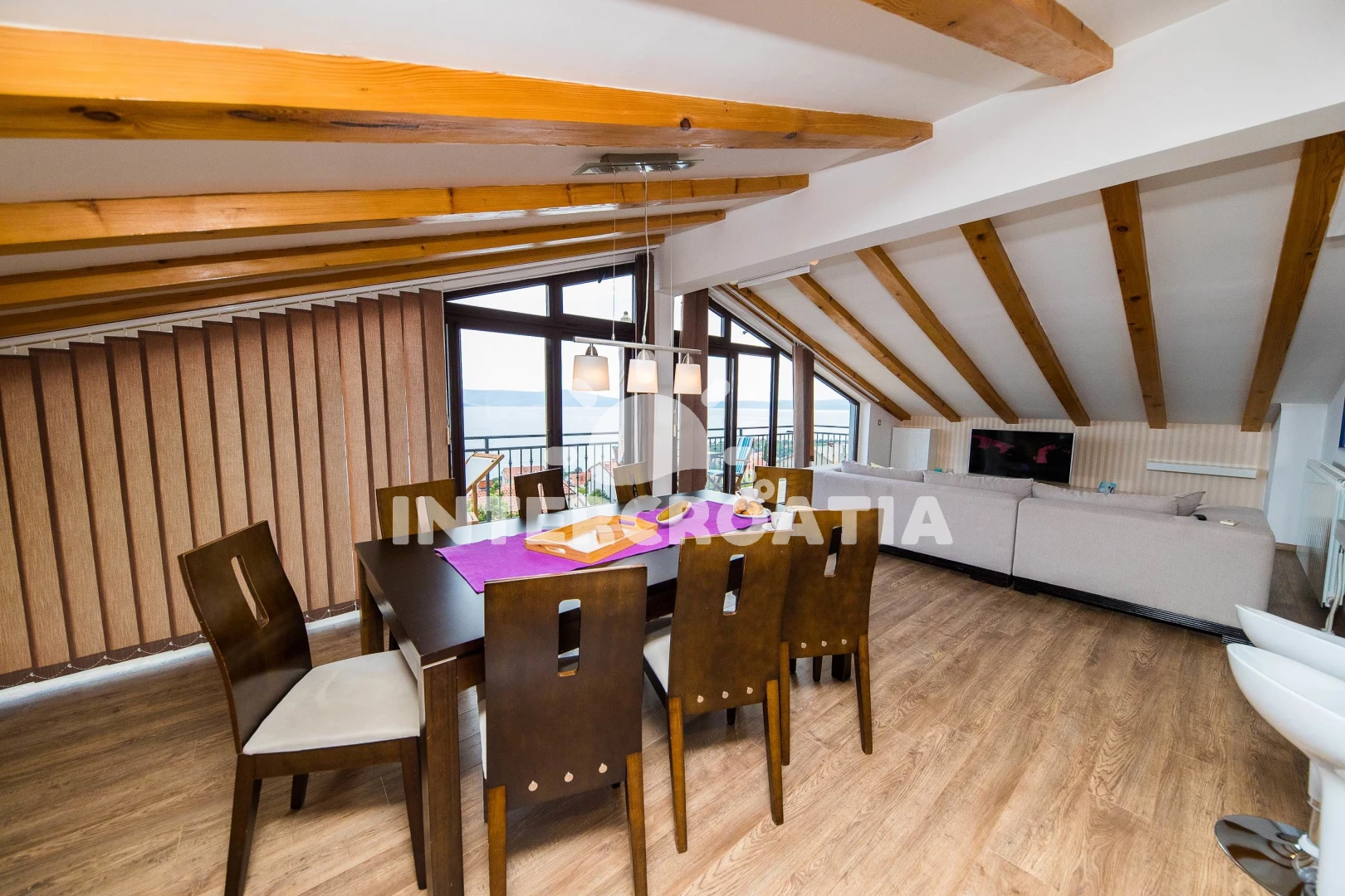 Apartmán (120 m2) s balkonem, a výhledem na moře. Nachází se v podkroví objektu. Apartmán má 2 ložnice a je vhodný pro až 4 osoby. Kuchyňská linka je vybavena varnou deskou, troubou, toustovačem,…