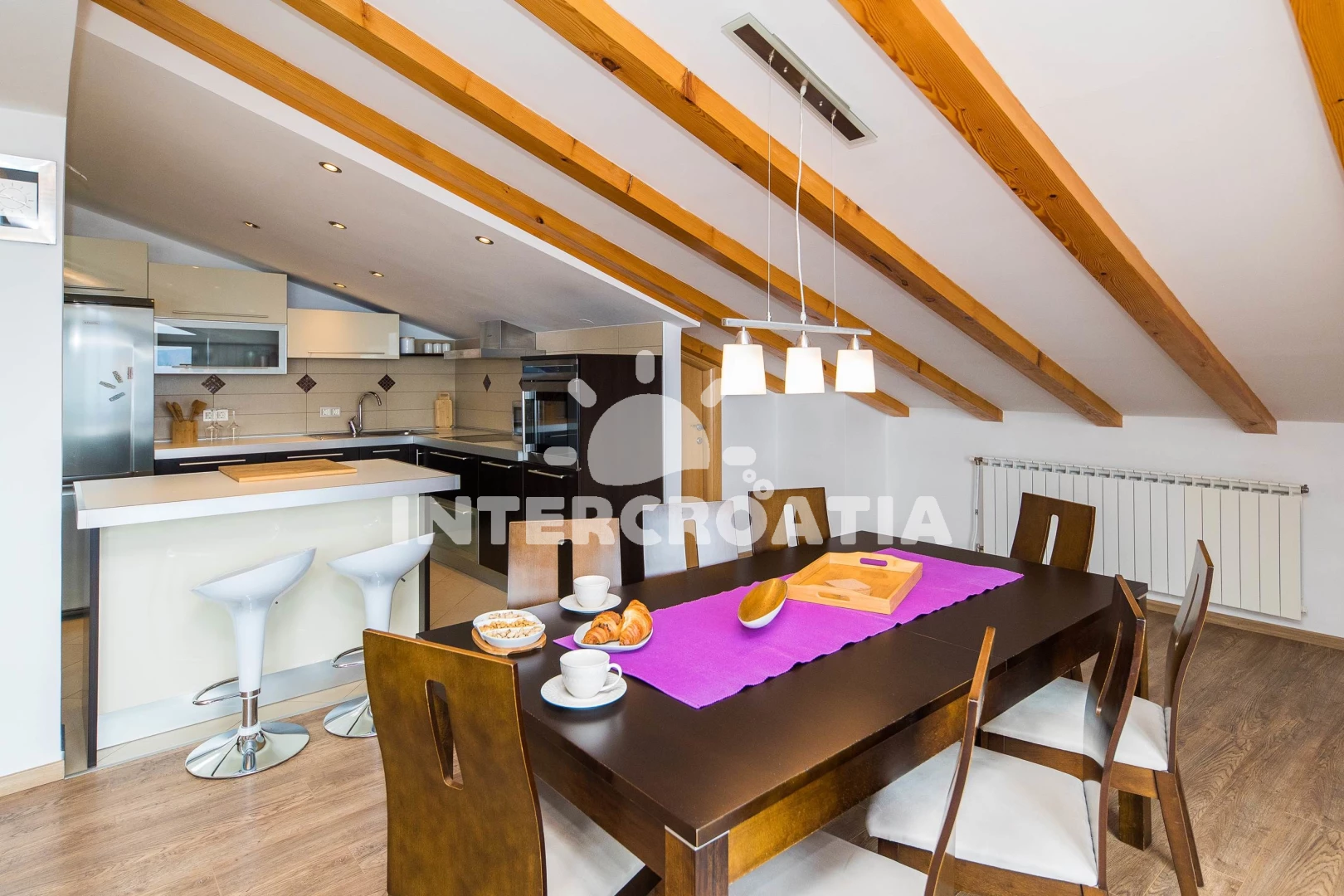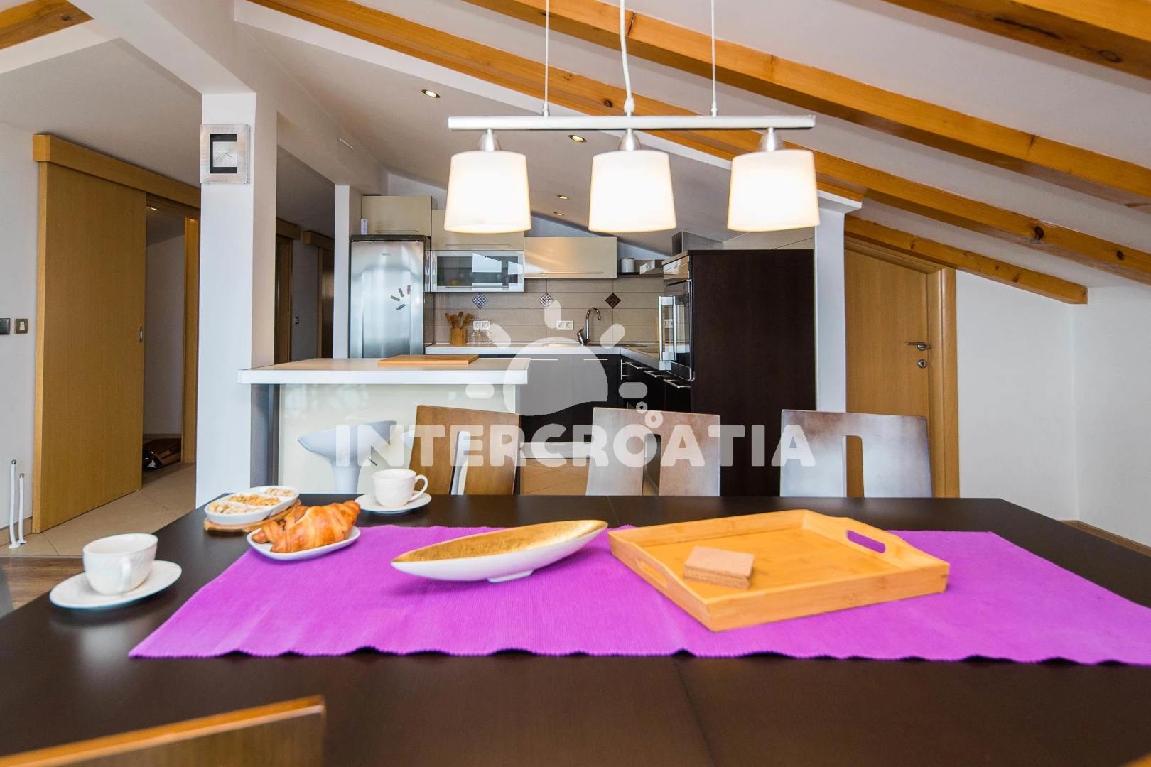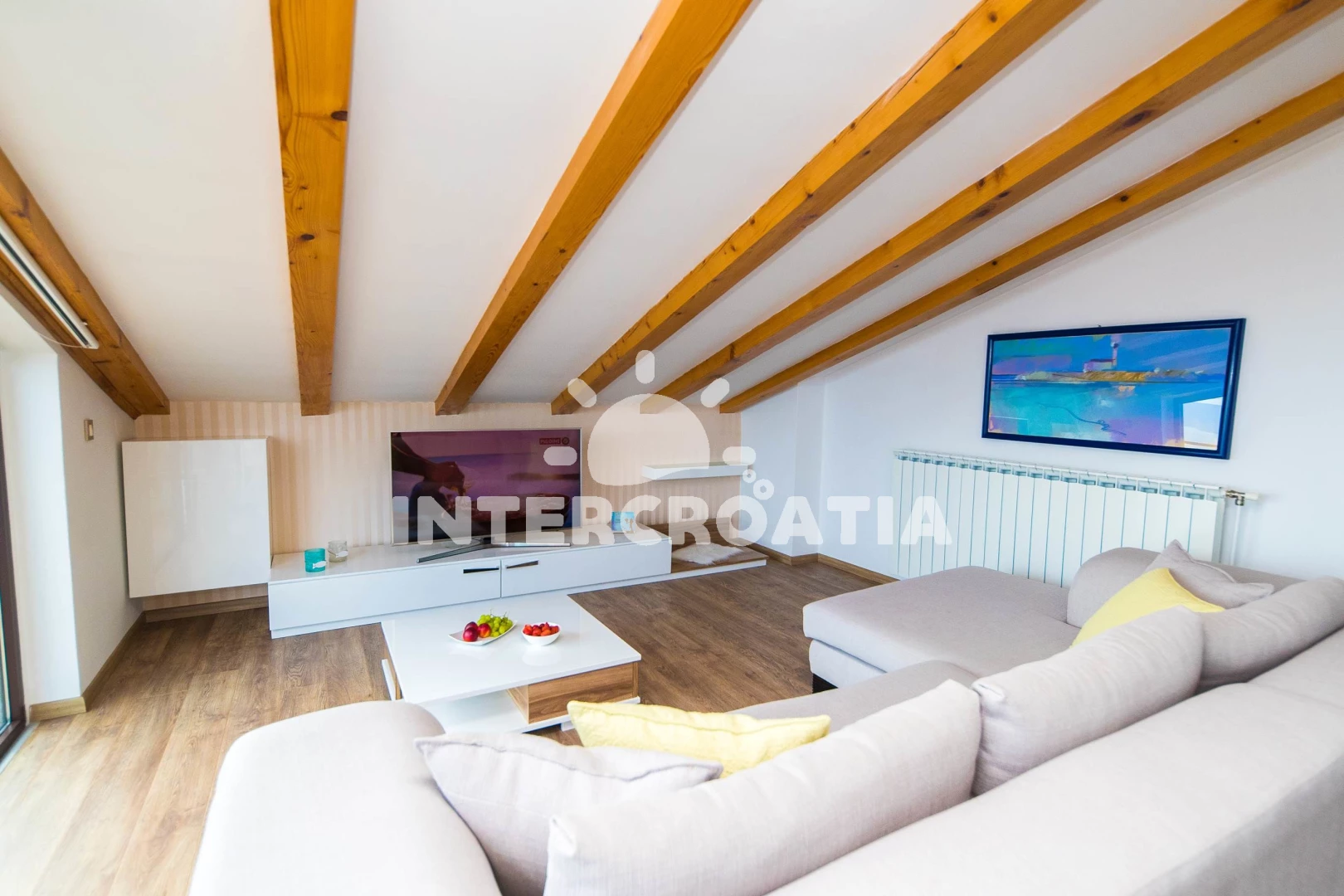 Apartmán (120 m2) s balkonem, a výhledem na moře. Nachází se v podkroví objektu. Apartmán má 2 ložnice a je vhodný pro až 4 osoby. Kuchyňská linka je vybavena varnou deskou, troubou, toustovačem,…
