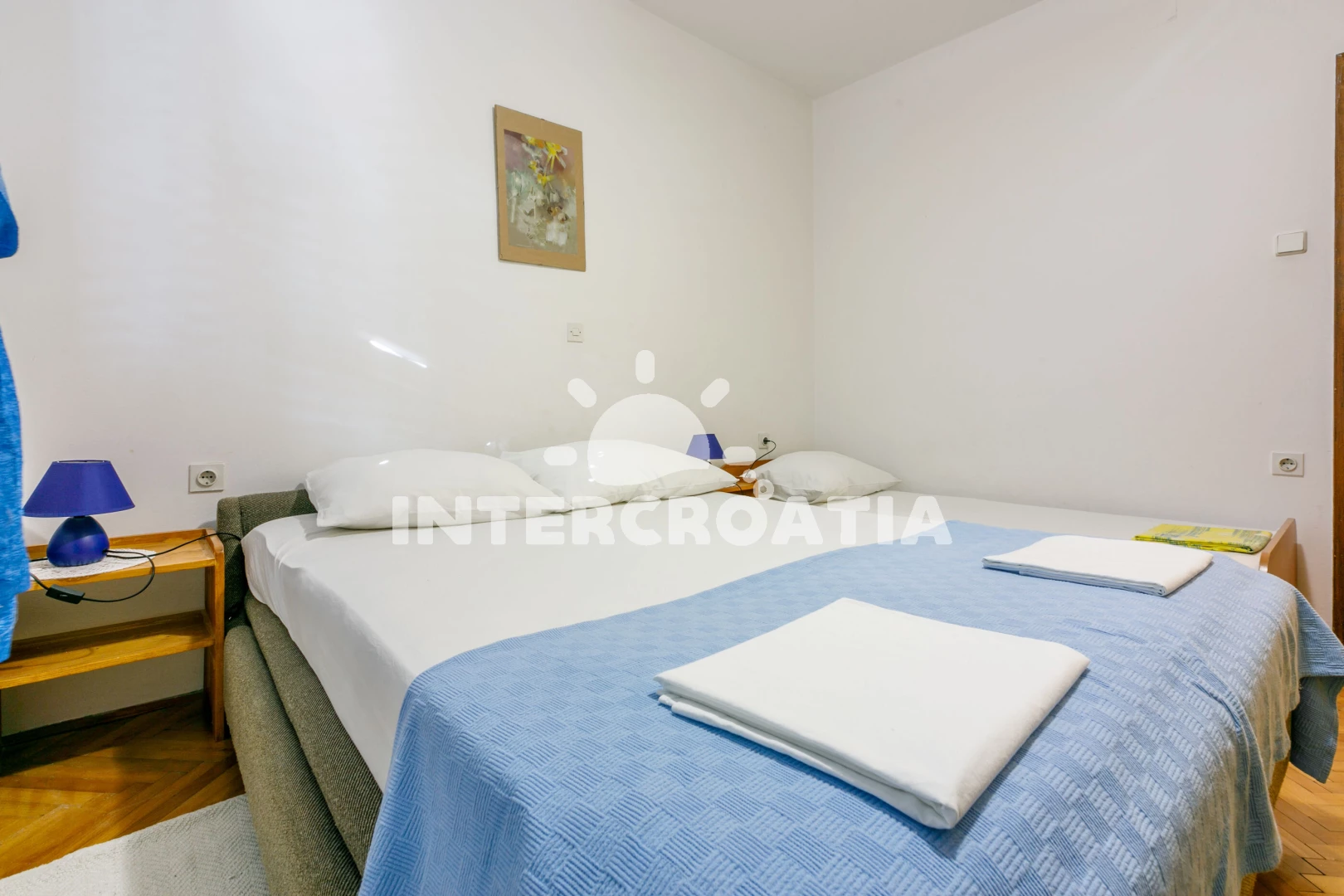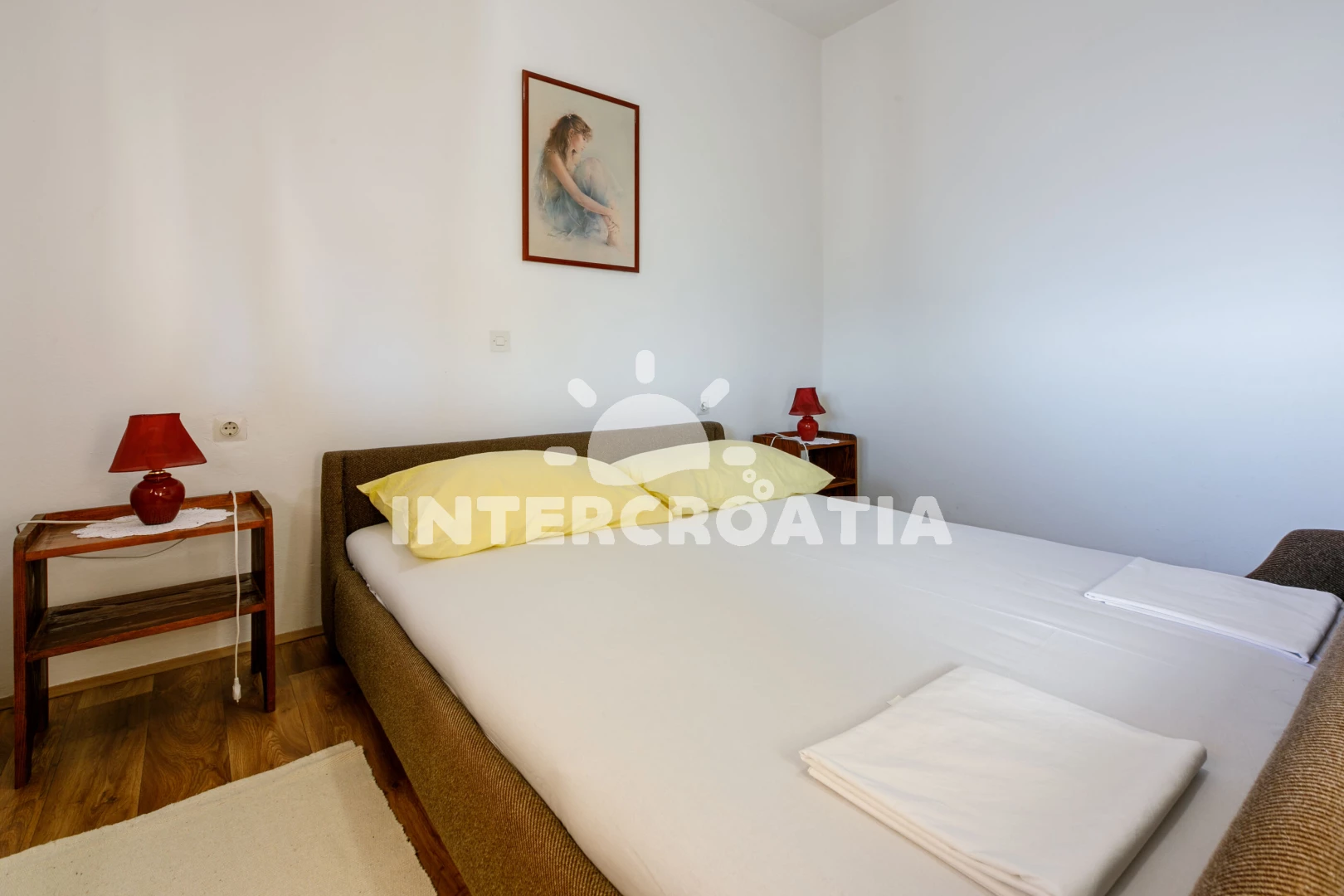 Apartmán se nachází 300 m od moře a pláže. Pláž je skalnatá, oblázková, větší kamení a betonové desky. U objektu je k dispozici společná zahrada s posezením a grilem. Parkování je před domem.