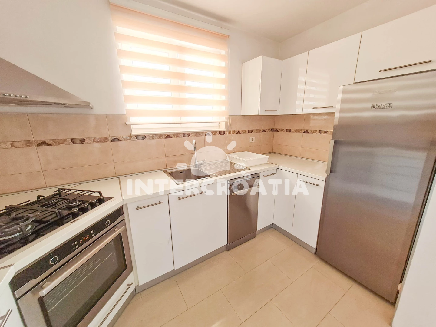 Vzdálenosti: Moře 500 m, pláž 500 m (betonové desky), supermarket 300 m, restaurace 300 m, bar 300 m, lékárna 300 m, směnárna 300 m, banka 400 m, veřejná doprava 400 m, pošta 450 m, čerpací stanice 450 m, ambulance 450 m, centrum 500 m, marina 500 m, půjčovna motorových člunů 500 m, letiště (Rijeka) 45 km,