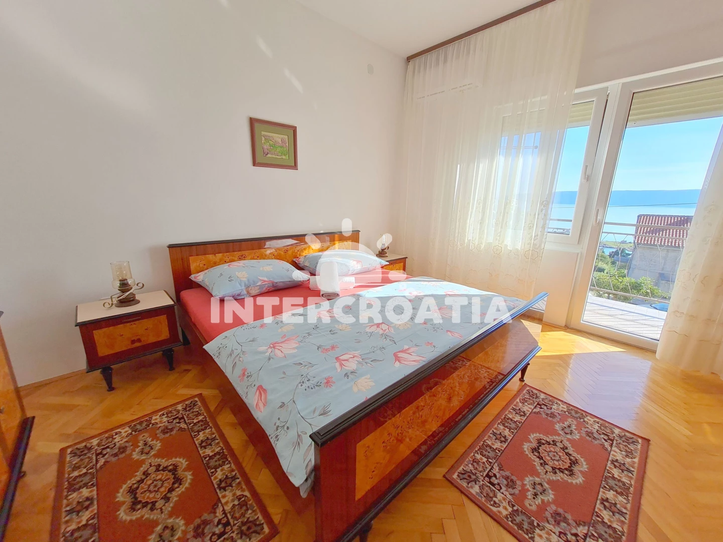 Apartmán (100 m2) s balkonem, a výhledem na moře. Nachází se ve 2. patře objektu. Apartmán má 3 ložnice a je vhodný pro až 6 osob. Kuchyňská linka je vybavena varnou deskou, troubou, kávovarem, myčkou na nádobí, mikrovlnnou troubou, rychlovarnou konvicí, nádobím, lednicí, mrazákem. K dispozici televize, žehlička. První ložnice s dvoulůžkem. Druhá ložnice s dvoulůžkem. Třetí ložnice s dvoulůžkem. Koupelna s vanou, umyvadlem, WC. Dále samostatné WC.