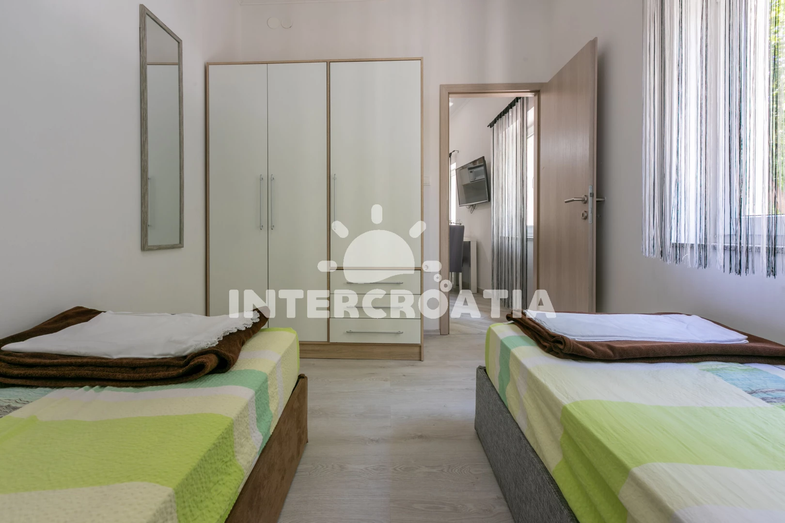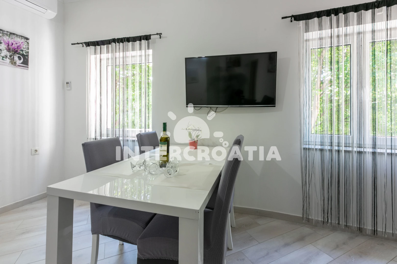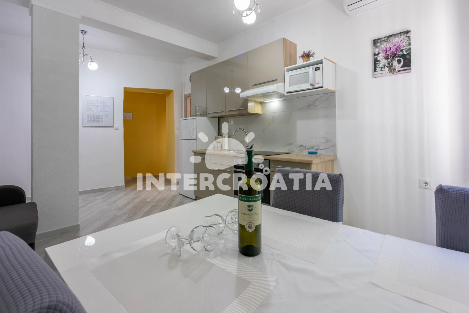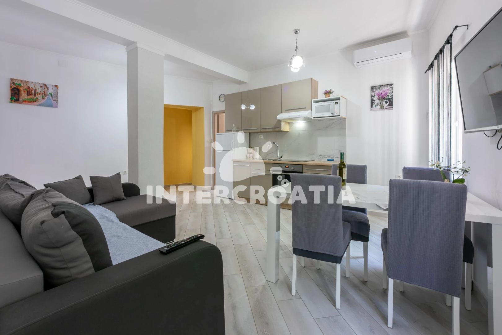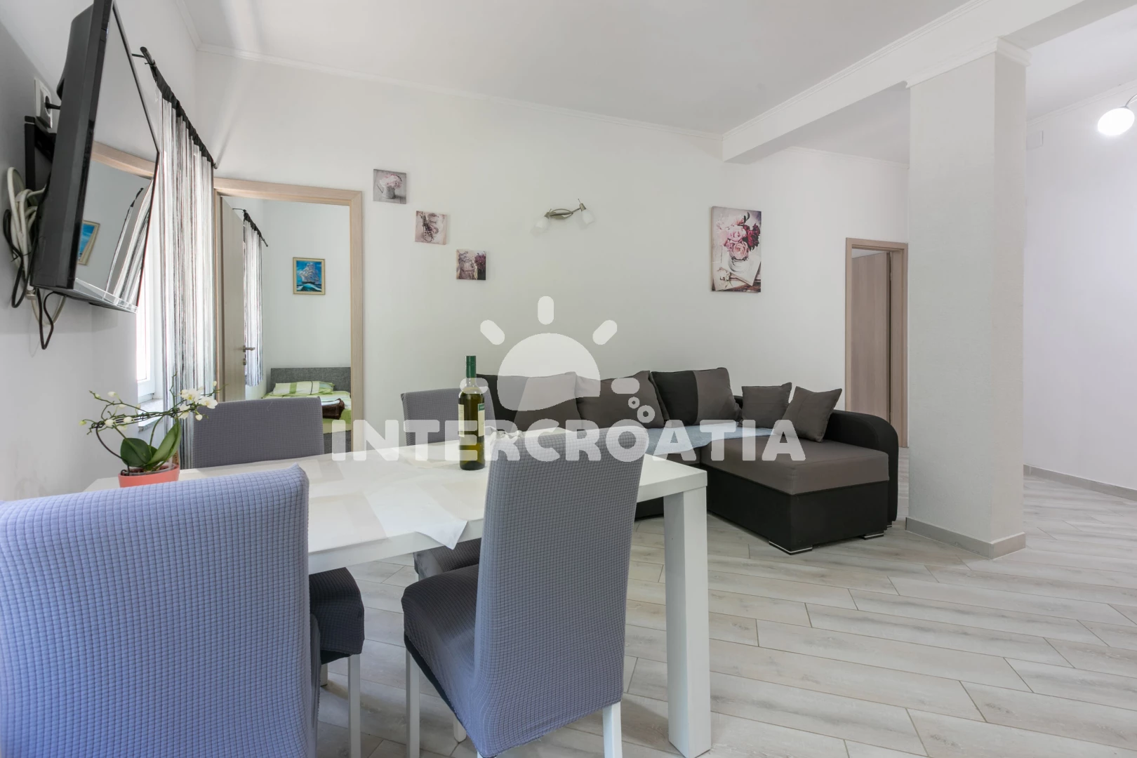 Apartmán se nachází 200 m od moře a pláže. Pláž je skalnatá, oblázková, větší kamení a betonové desky. Parkování je 150m - 300 m od domu.