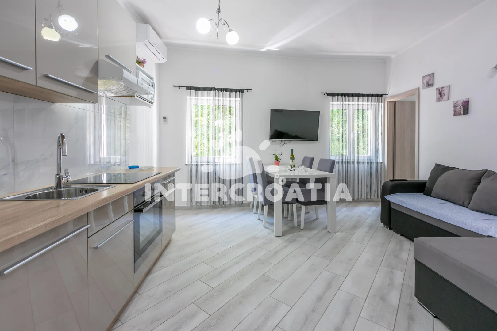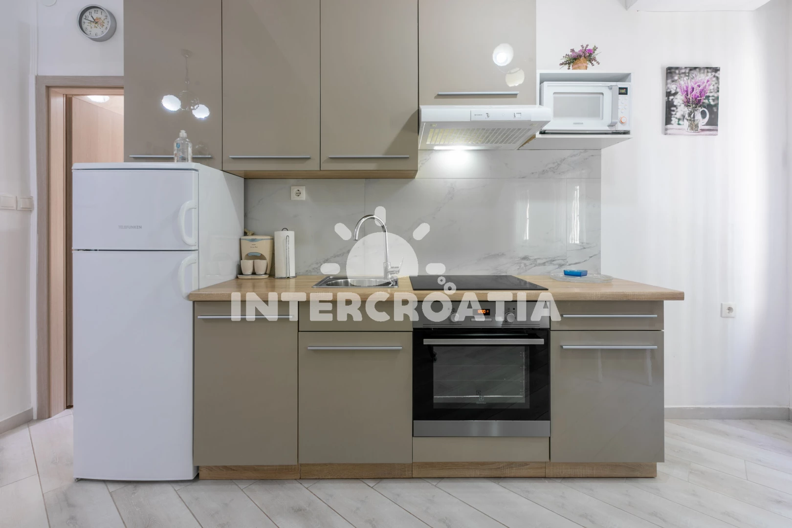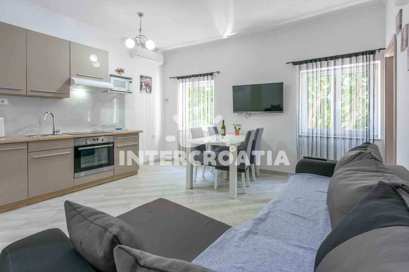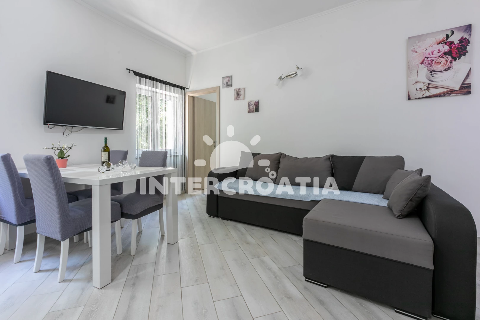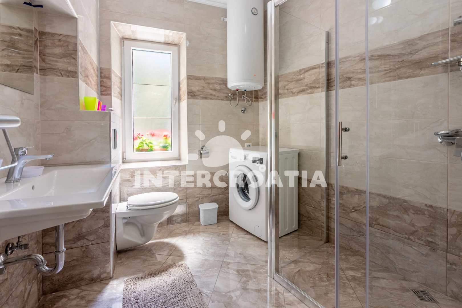 Apartmán se nachází 200 m od moře a pláže. Pláž je skalnatá, oblázková, větší kamení a betonové desky. Parkování je 150m - 300 m od domu.