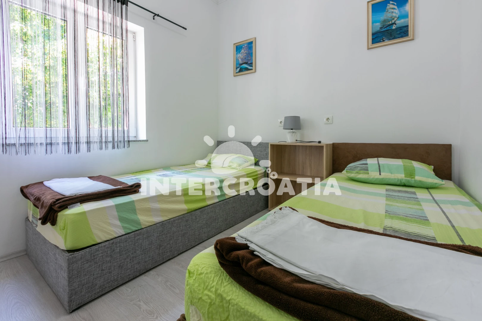 Vzdálenosti: Moře 150 m, pláž 200 m (skalnatá, oblázková, větší kamení a betonové desky), směnárna 100 m, centrum 100 m, restaurace 100 m, banka 100 m, muzeum 100 m, lékárna 150 m, supermarket 150 m, pošta 200 m, marina 200 m, kotviště pro čluny 200 m, půjčovna motorových člunů 200 m, čerpací stanice 200 m, ambulance 300 m, potápění 300 m, bar 300 m, veřejná doprava 300 m, letiště (Rijeka) 30 km, trajekt (Rijeka) 30 km,