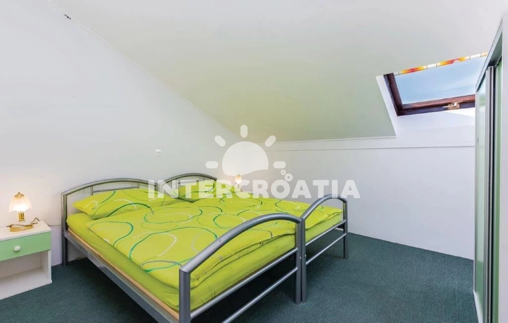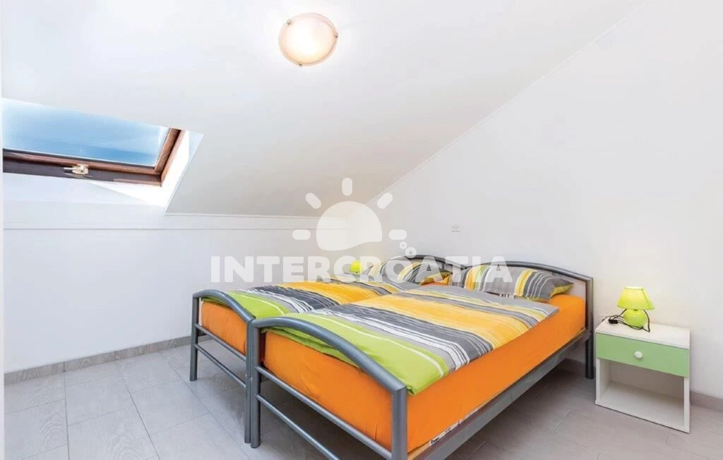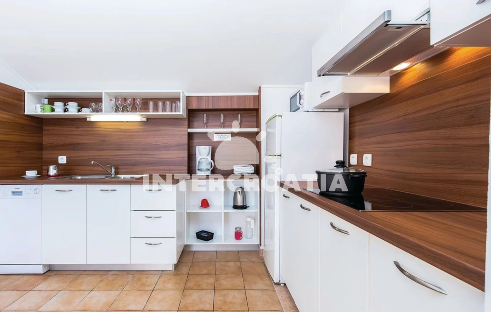 Apartmán (78 m2) s terasou, a výhledem na moře. Nachází se v podkroví objektu. Apartmán má 1 ložnici a je vhodný pro až 6 osob. Kuchyňská linka je vybavena varnou deskou, toustovačem, kávovarem,…