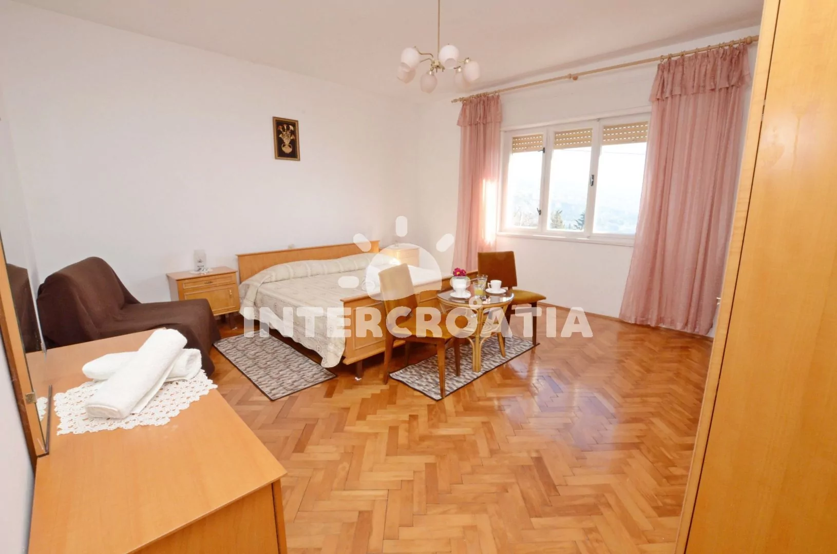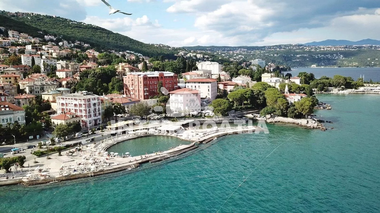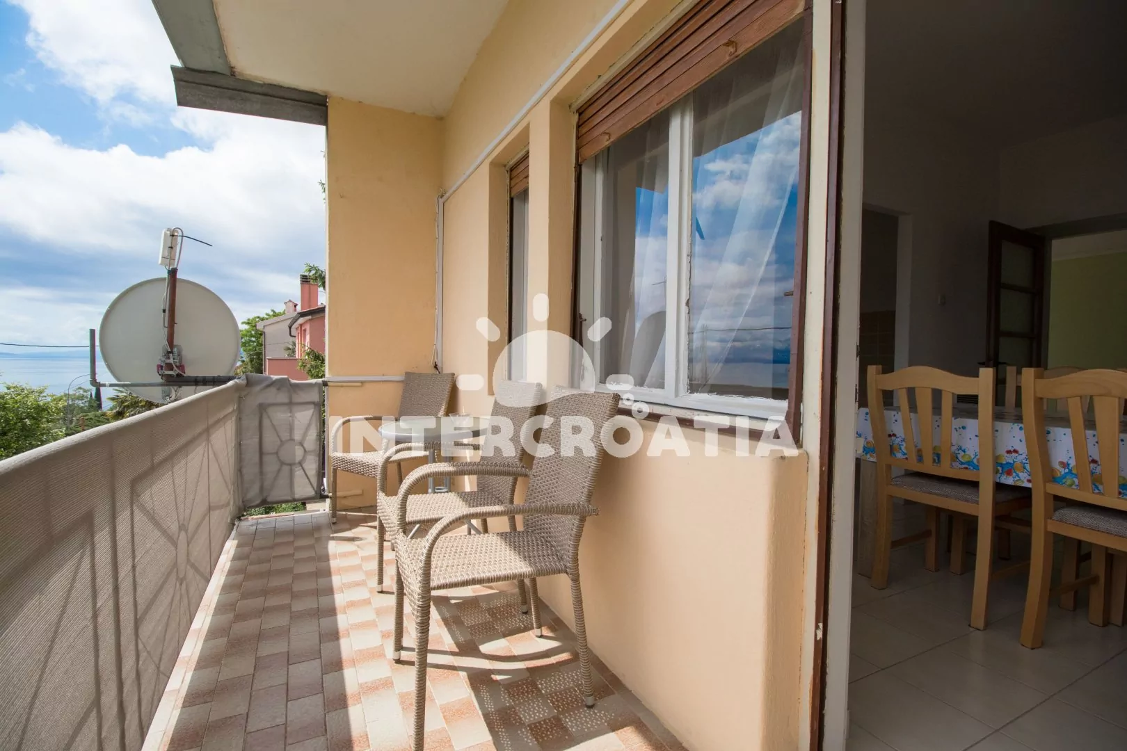 V Kvarnerské zátoce, 12 km severozápadně od přístavního města Rijeka. Apartmán se nachází 350 m pěší chůzí od moře.