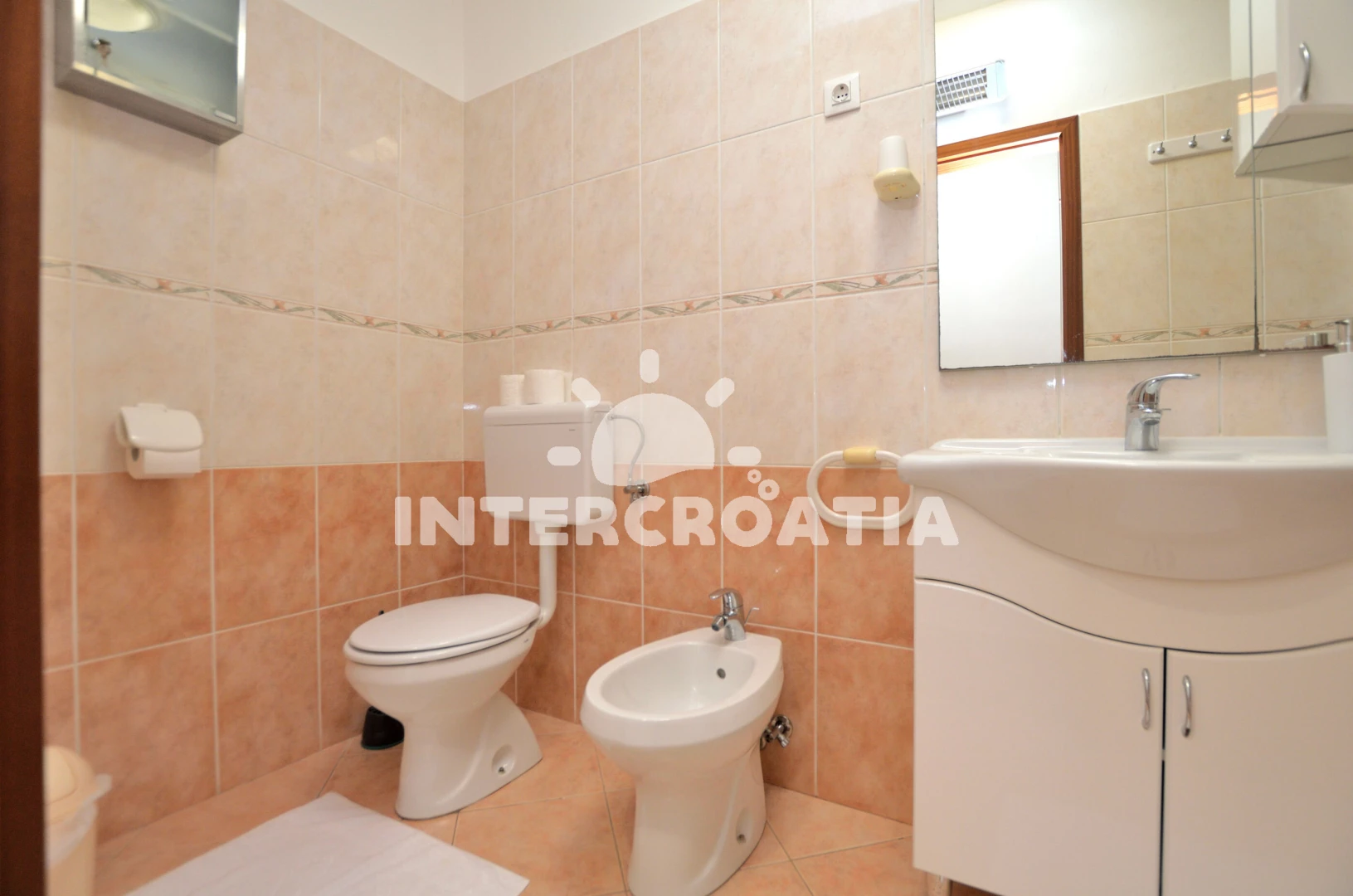 Vzdálenosti: Moře 500 m, pláž 400 m (písčitá a betonové desky), tenisové kurty 200 m, bar 250 m, ambulance 300 m, diskotéka 300 m, veřejná doprava 300 m, pošta 350 m, restaurace 350 m, supermarket 350 m, lékárna 350 m, směnárna 350 m, čerpací stanice 350 m, půjčovna kol 400 m, muzeum 400 m, centrum 400 m, banka 400 m, půjčovna motorových člunů 400 m, potápění 2 km, marina 2,5 km, kotviště pro čluny 2,5 km, trajekt (Rijeka) 13 km, letiště 20,0 km,
