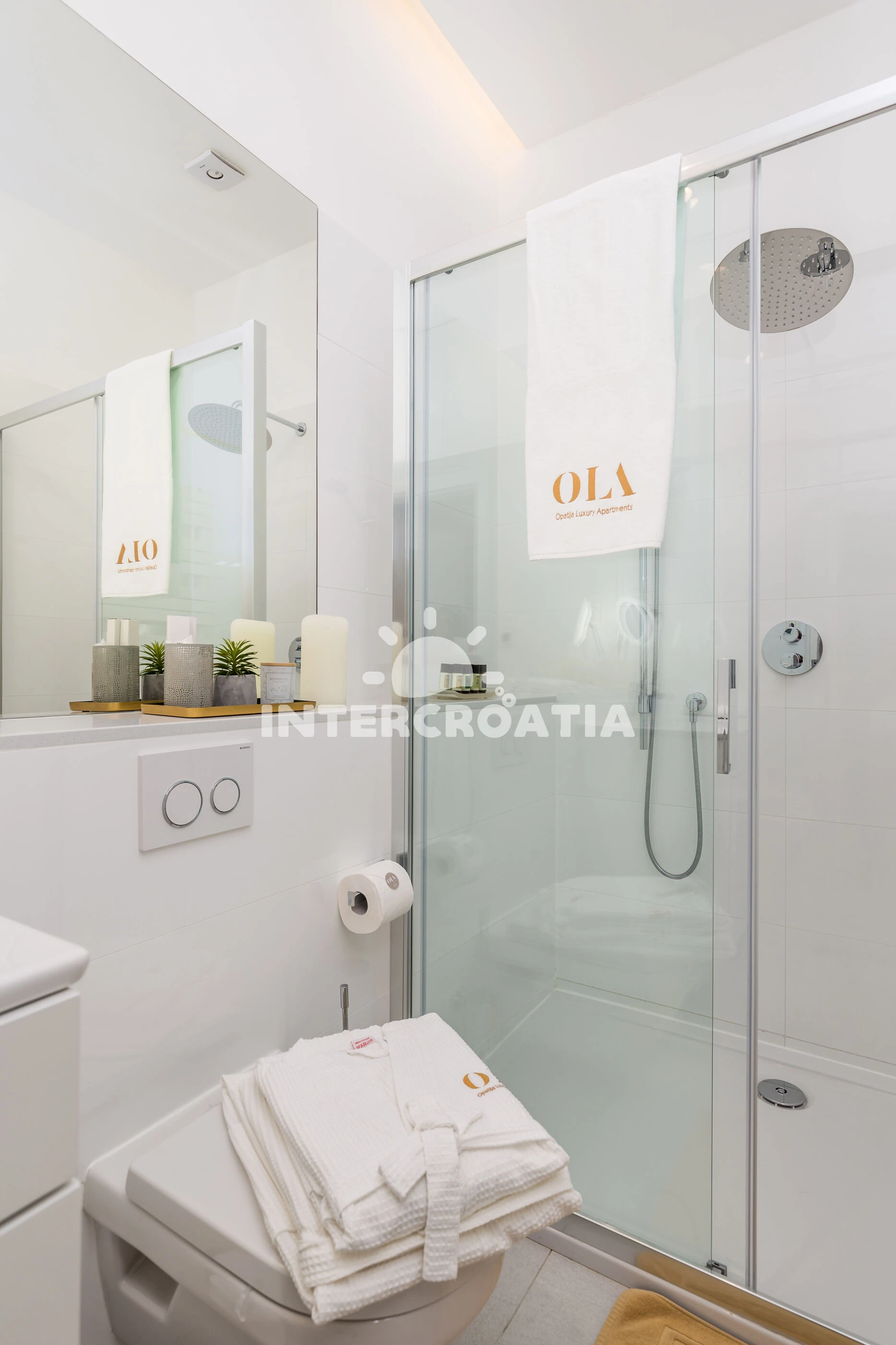 Vzdálenosti: Moře 90 m, pláž 100 m (betonové desky), bar 100 m, supermarket 200 m, restaurace 300 m, veřejná doprava 400 m, lékárna 400 m, směnárna 400 m, čerpací stanice 400 m, centrum 500 m, banka 500 m, ambulance 1 km, pošta 1,5 km, trajekt (Brestova) 30 km, letiště (Rijeka) 41 km, park Plitvice 58 km,