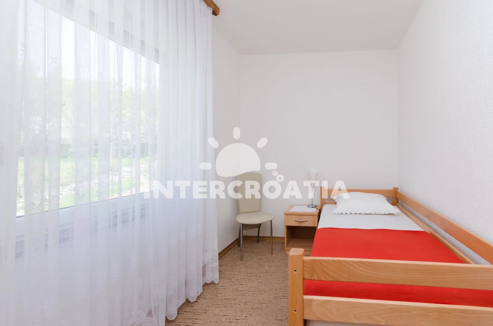 Vzdálenosti: kotviště pro čluny 0 m, Moře 500 m, pláž 500 m (betonové desky), bar 300 m, veřejná doprava 400 m, supermarket 500 m, lékárna 2 km, půjčovna kol 2 km, pošta 2 km, banka 2 km, potápění 2 km, mini golf 2 km, tenisové kurty 2 km, diskotéka 2 km, centrum 2 km, směnárna 2 km, čerpací stanice 2 km, ambulance 2 km, půjčovna motorových člunů 2 km, muzeum 2 km, marina 3 km, restaurace 3 km, letiště (Rijeka) 30 km, trajekt (Valbiska (Krk)) 40 km,