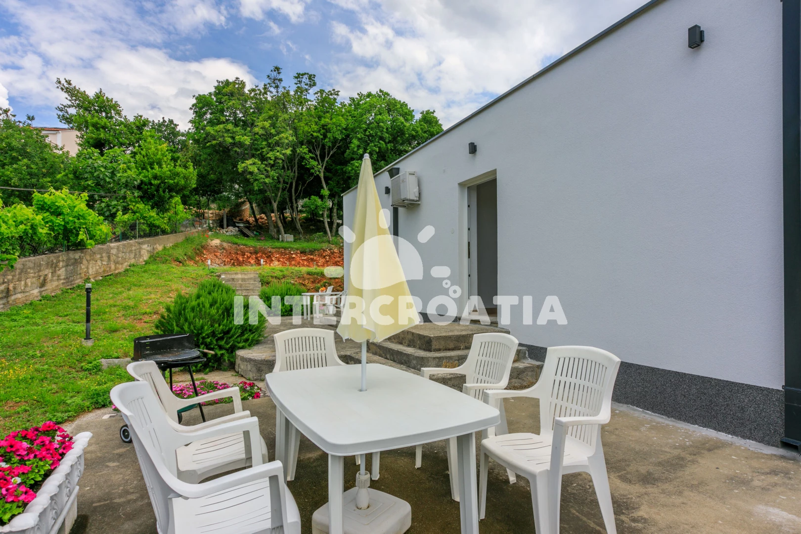 Apartmán se nachází 20 m od moře a pláže. Pláž je oblázková. U objektu je k dispozici společná zahrada s posezením a grilem. Parkování je před domem.