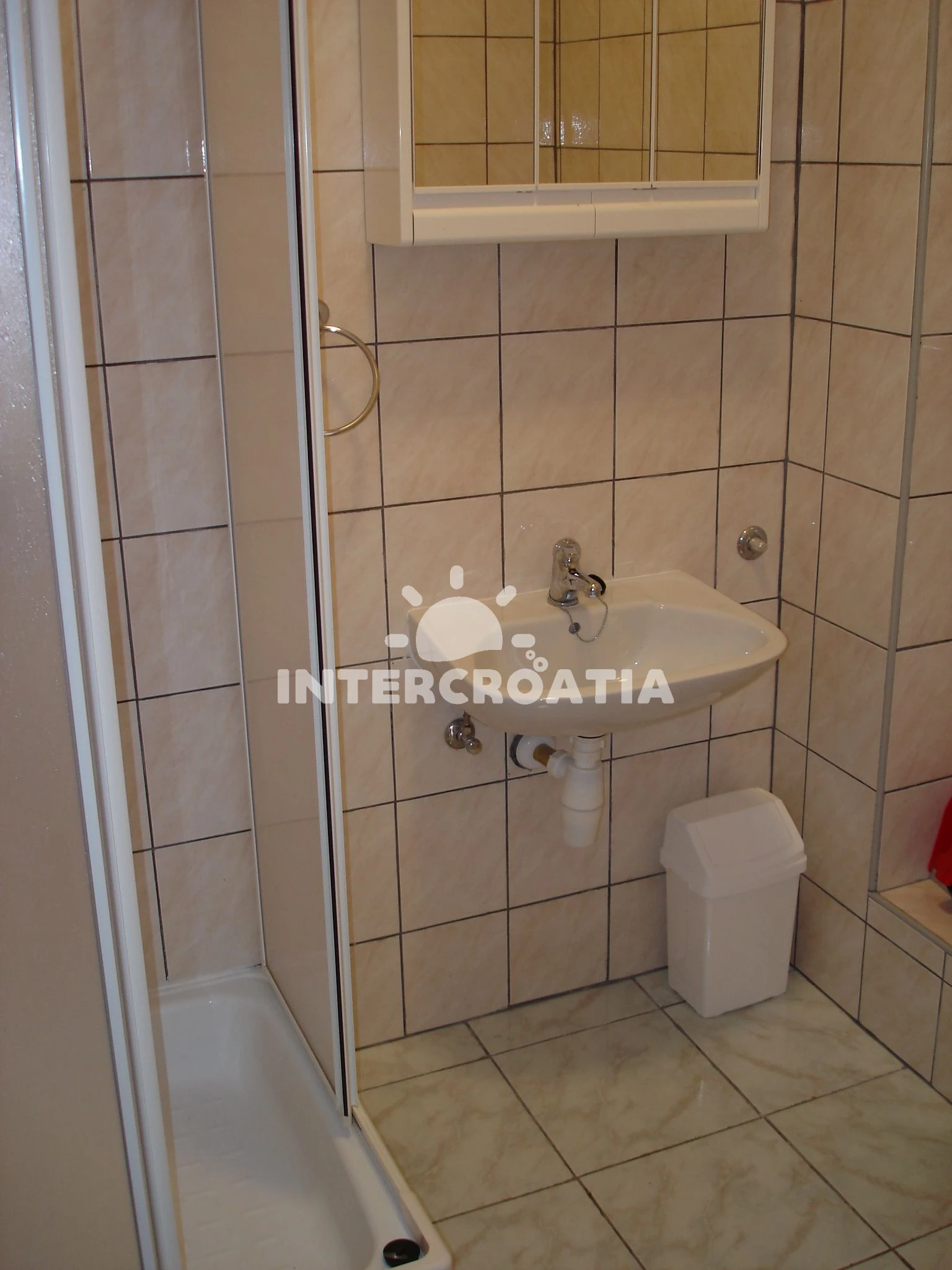 Apartmán se nachází 20 m od moře a pláže. Pláž je kamenné a betonové desky. U objektu je k dispozici společná zahrada s posezením a grilem. Parkování je před domem.