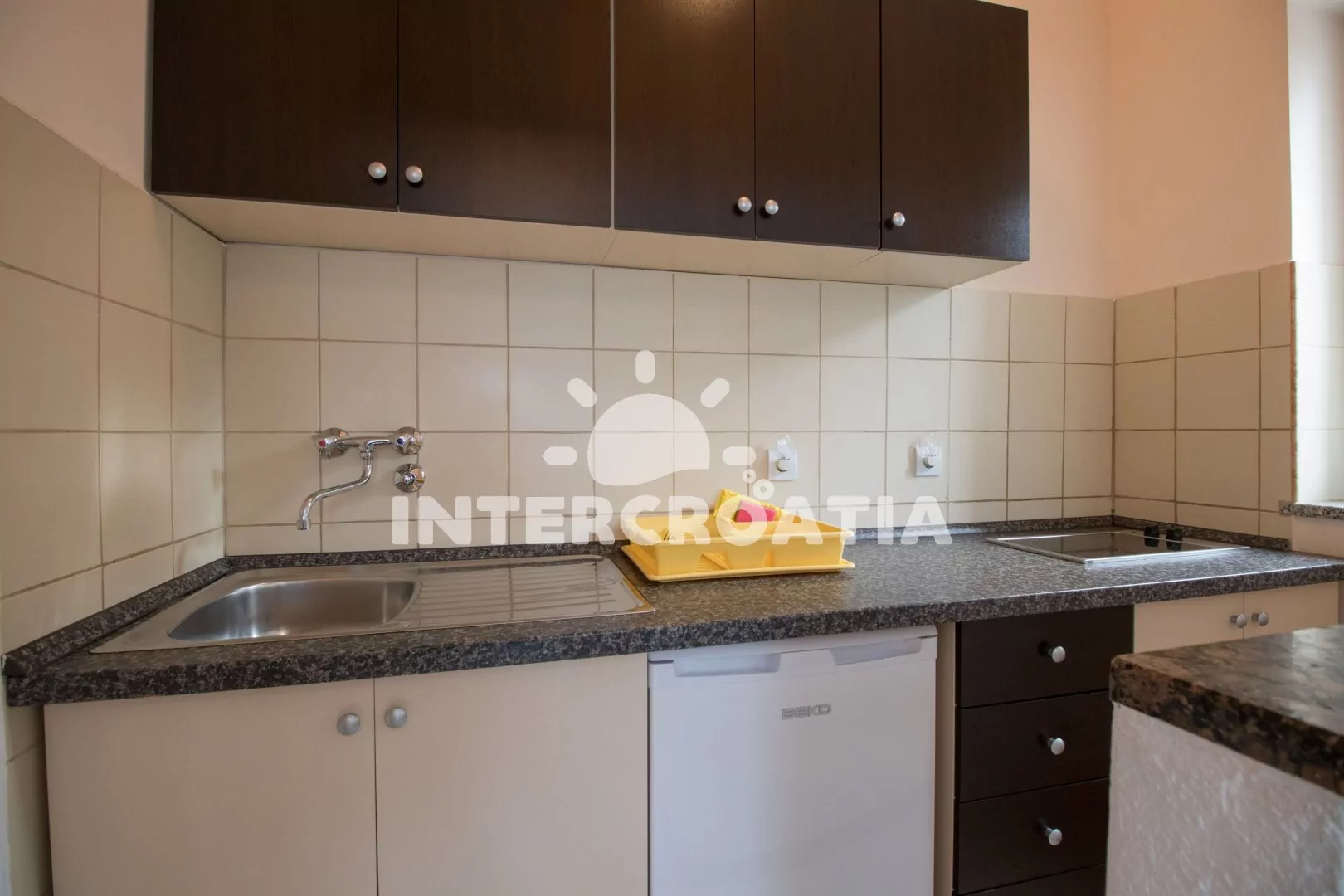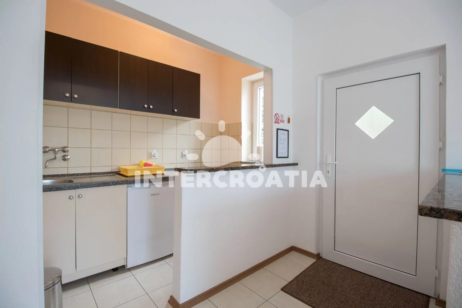 Apartmán v přízemí s venkovním posezením na terase je vhodný pro 2 až 4 osoby. Obývací pokoj je spojený s kuchyní. Kuchyňská linka je vybavena varnou deskou, nádobím a lednicí s mrazákem. Obývací…
