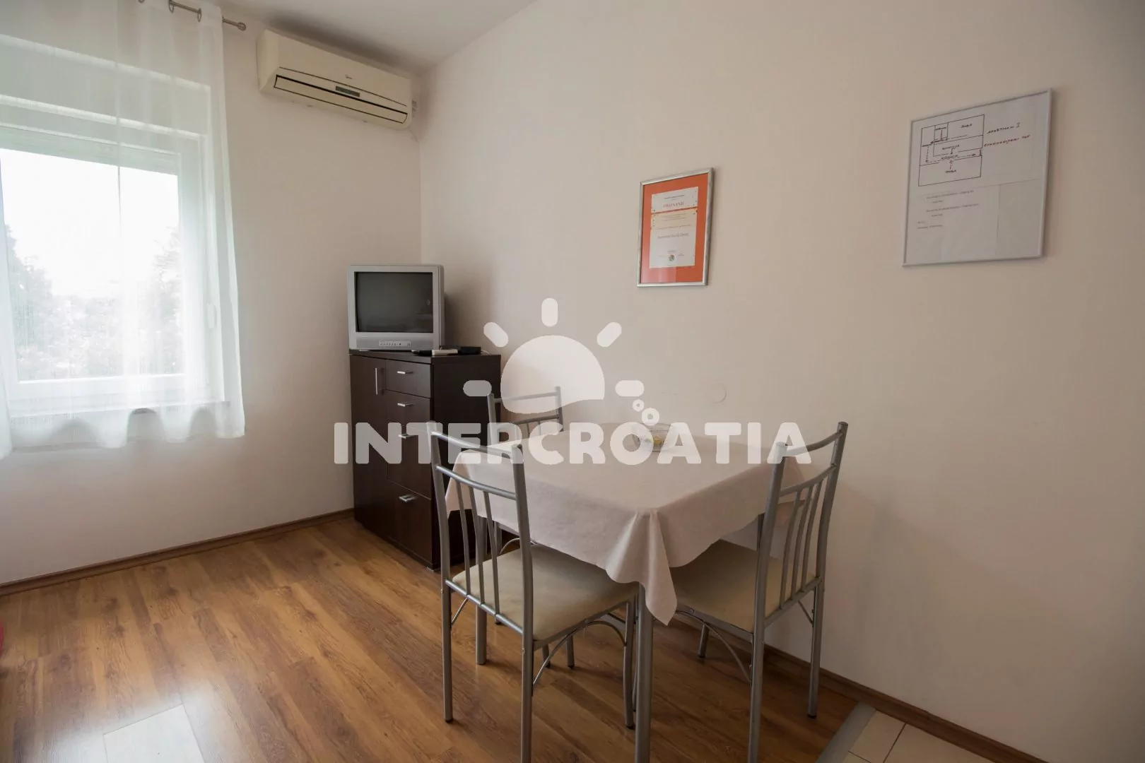 Apartmán v přízemí s venkovním posezením na terase je vhodný pro 2 až 4 osoby. Obývací pokoj je spojený s kuchyní. Kuchyňská linka je vybavena varnou deskou, nádobím a lednicí s mrazákem. Obývací pokoj s jídelním stolem pro 4 osoby, pohovkou (rozložitelná na extra lůžko pro 2 osoby), televizí a klimatizací. Ložnice s jedním dvoulůžkem. Koupelna se sprchovým koutem, umyvadlem, pračkou a wc. Hostům je k dispozici parkování u objektu zdarma.