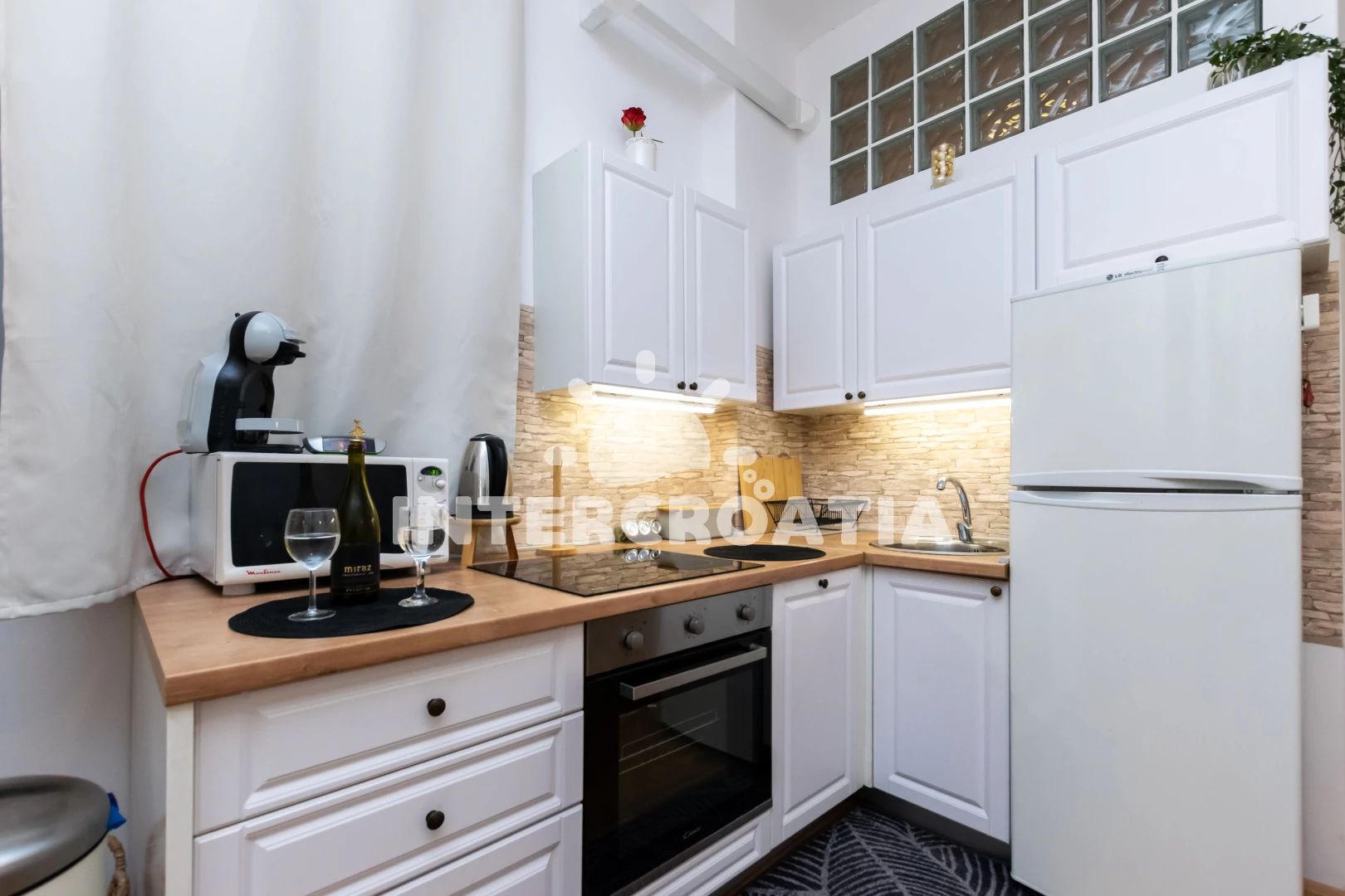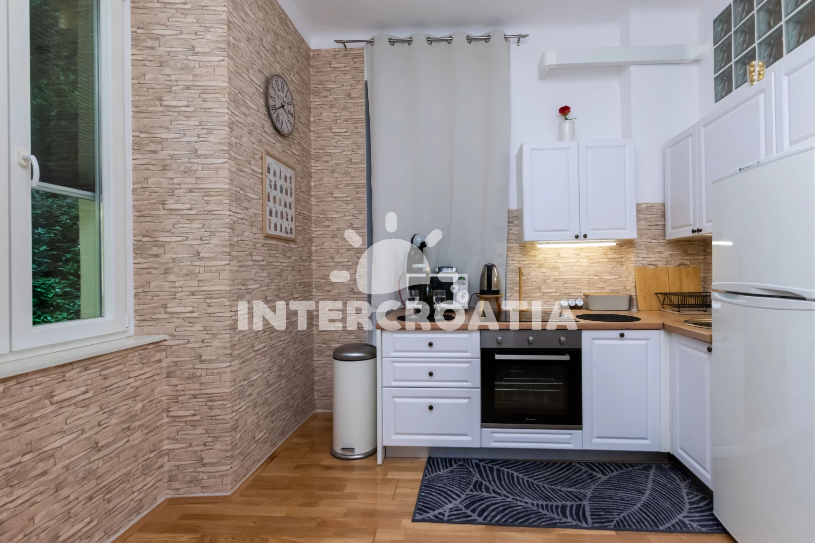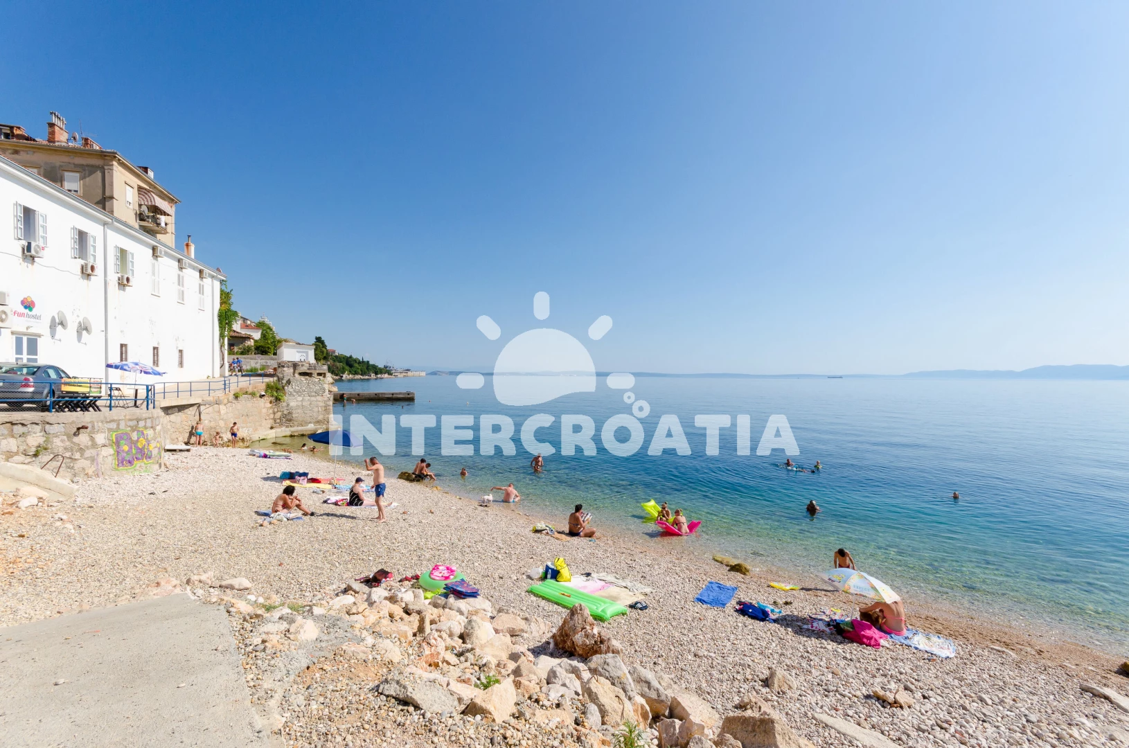 Vzdálenosti: Moře 900 m, pláž 1,2 km (oblázky), centrum 20 m, čerpací stanice 70 m, supermarket 100 m, bar 100 m, veřejná doprava 100 m, restaurace 100 m, pošta 200 m, lékárna 200 m, banka 200 m, půjčovna kol 400 m, muzeum 400 m, diskotéka 400 m, ambulance 400 m, trajekt (Rijeka) 2 km, půjčovna motorových člunů 2 km, marina 2 km, potápění 3 km, tenisové kurty 3 km, letiště (Rijeka) 25 km,