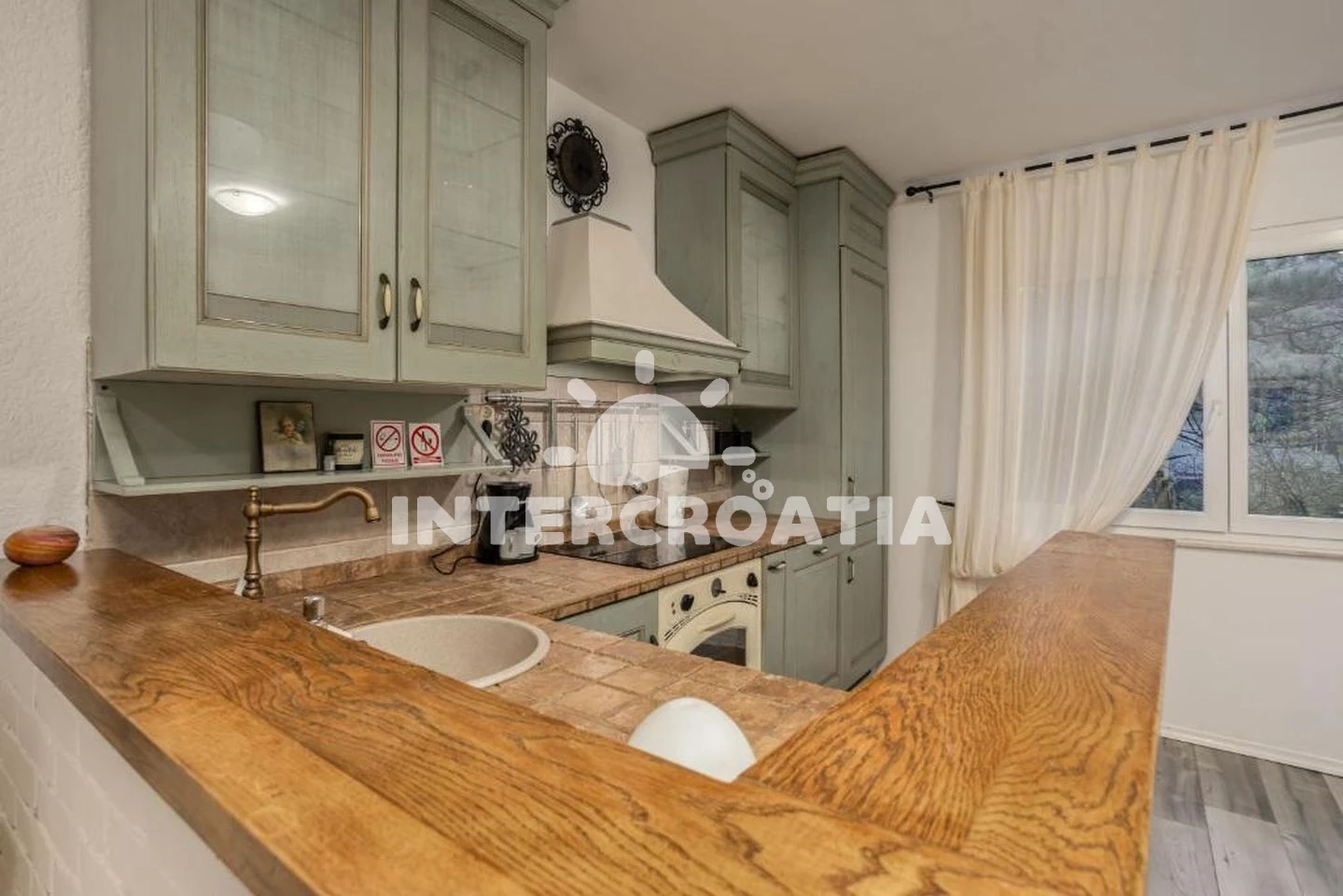 Vzdálenosti: Moře 970 m, pláž 5,7 km (oblázky), bar 300 m, lékárna 300 m, restaurace 500 m, veřejná doprava 500 m, čerpací stanice 700 m, supermarket 950 m, centrum 1,5 km, trajekt (Rijeka) 1,5 km, směnárna 1,5 km, marina 1,5 km, banka 1,5 km, pošta 1,5 km, ambulance 2,7 km, letiště (Rijeka) 30 km, park Plitvice 44,2 km,