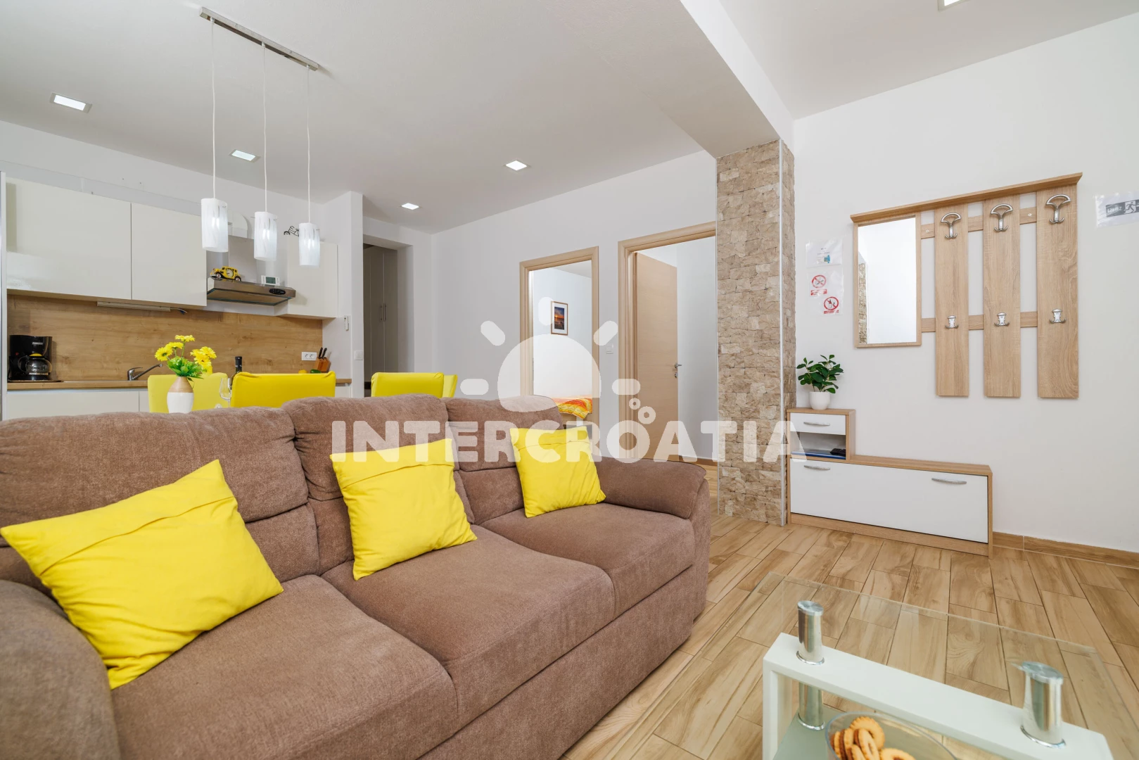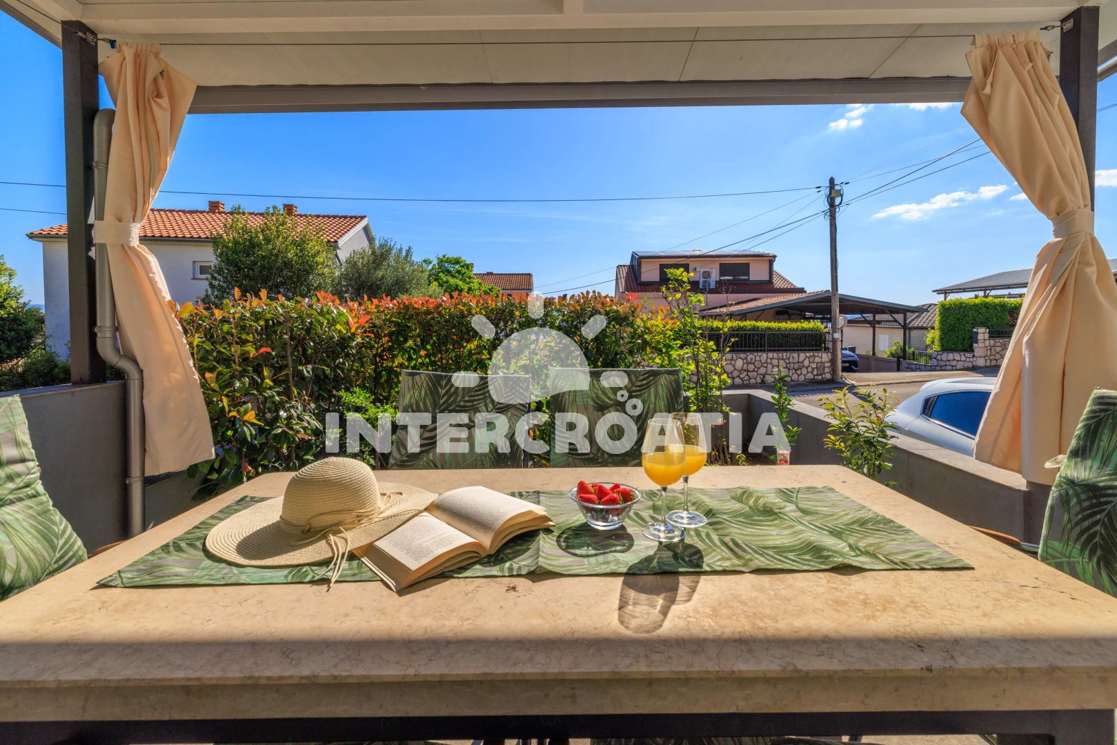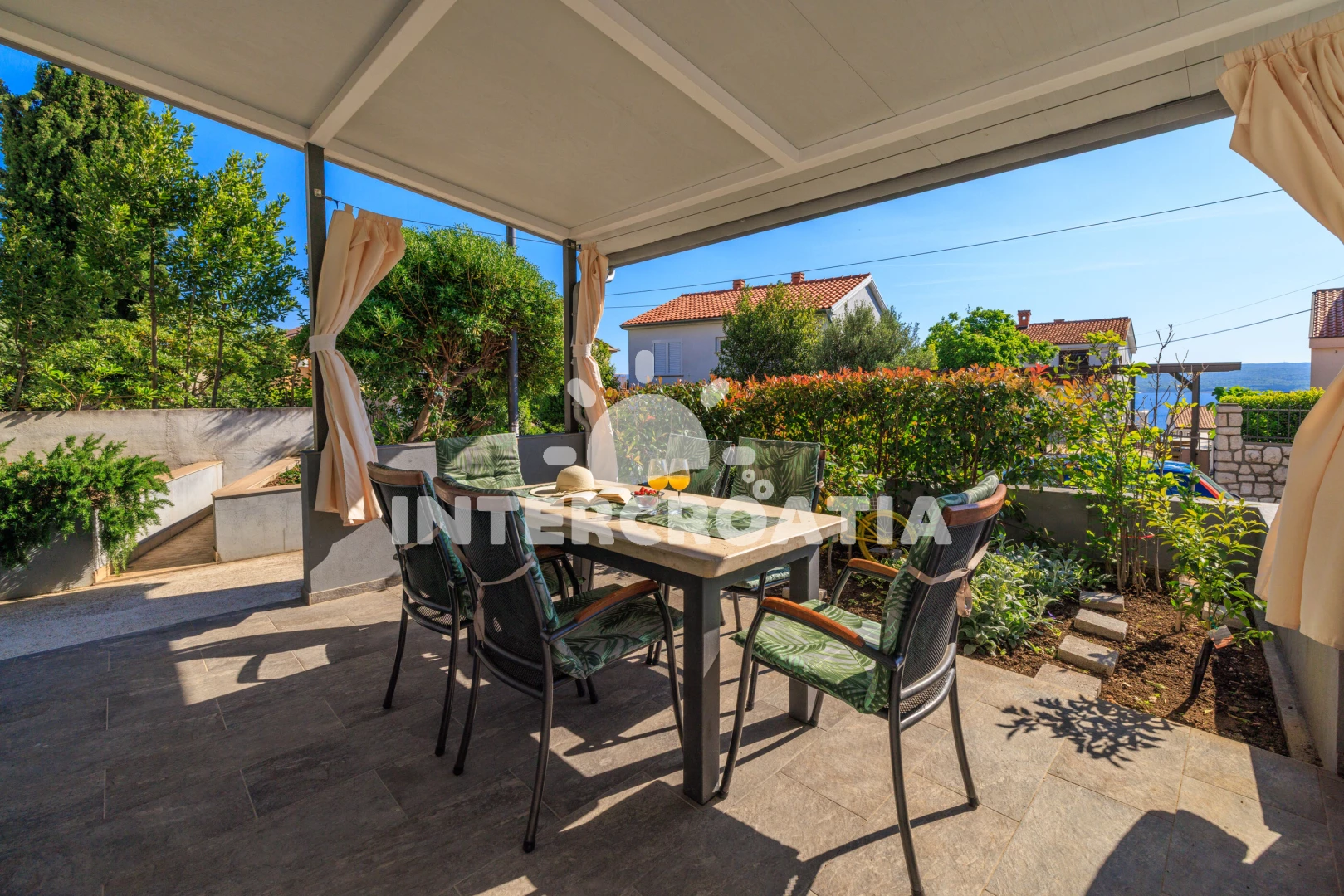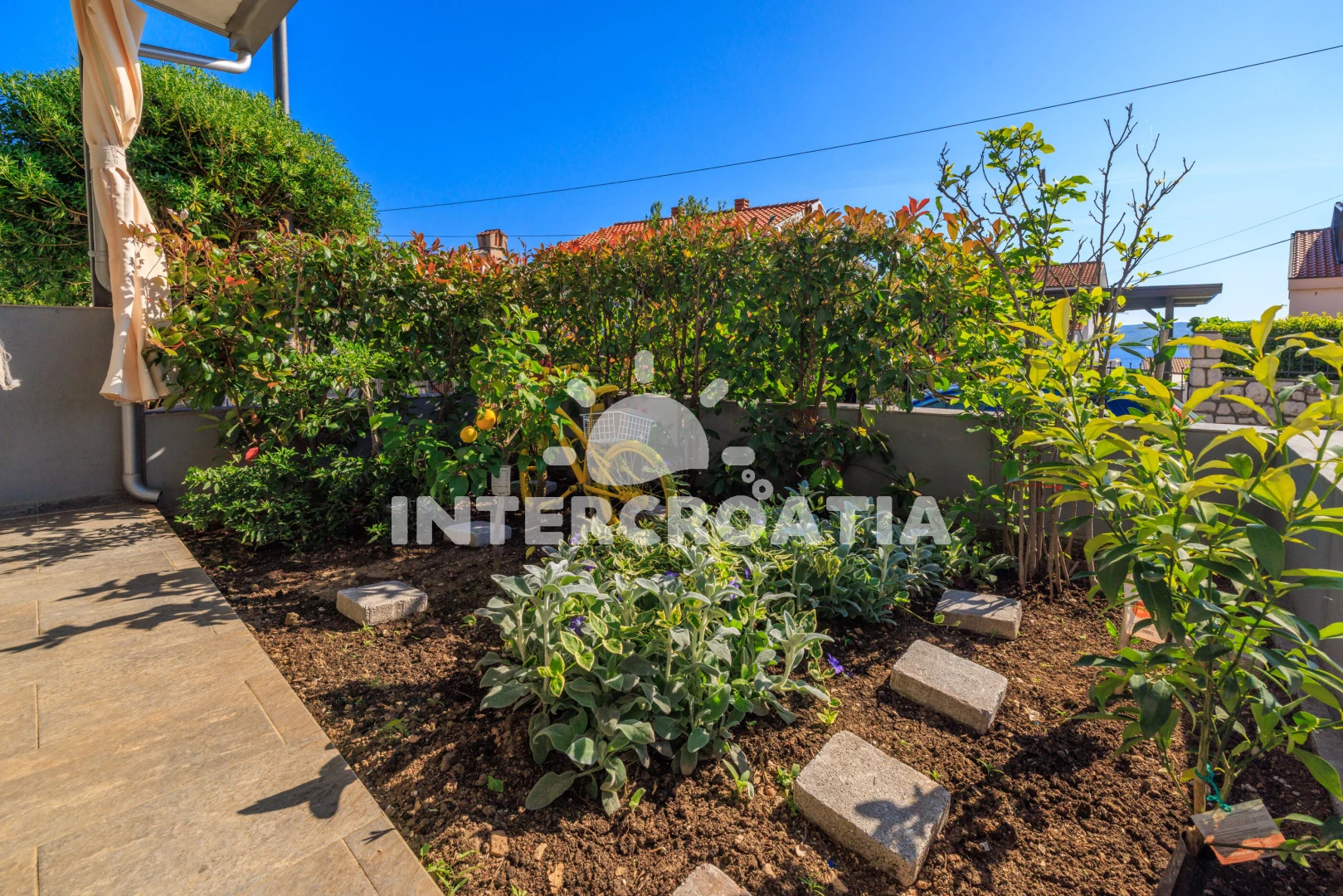 Vzdálenosti: Moře 310 m, pláž 350 m (betonové desky, skalnatá a větší kamení), supermarket 250 m, restaurace 300 m, směnárna 350 m, bar 350 m, centrum 350 m, lékárna 400 m, pošta 400 m, veřejná doprava 450 m, ambulance 500 m, půjčovna motorových člunů 500 m, potápění 700 m, čerpací stanice 2 km, tenisové kurty 2 km, marina 2 km, banka 2 km, muzeum 2 km, diskotéka 2 km, půjčovna kol 2 km, letiště (Rijeka) 25 km, trajekt (Valbiska (Krk)) 48 km, park Plitvice 60 km,