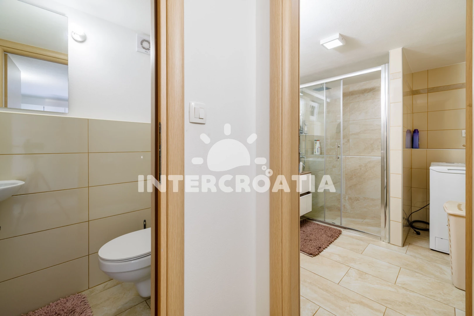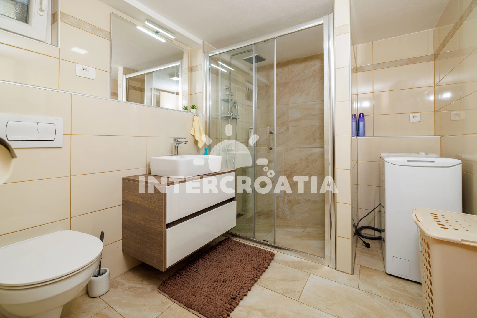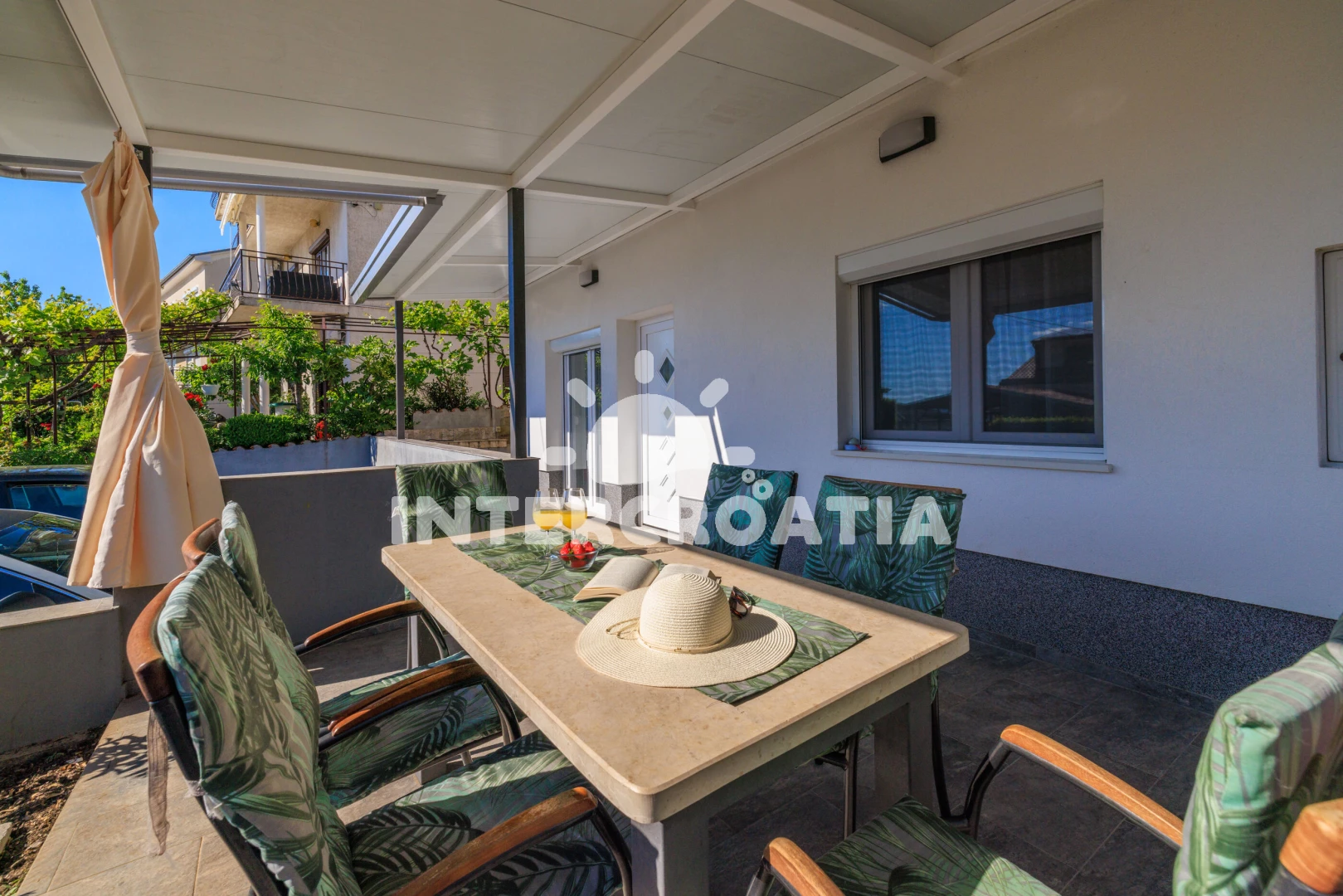 Apartmán se nachází 350 m od moře a pláže. Pláž je betonové desky, skalnatá a větší kamení. U objektu je k dispozici společná zahrada s posezením a grilem. Parkování je před domem.