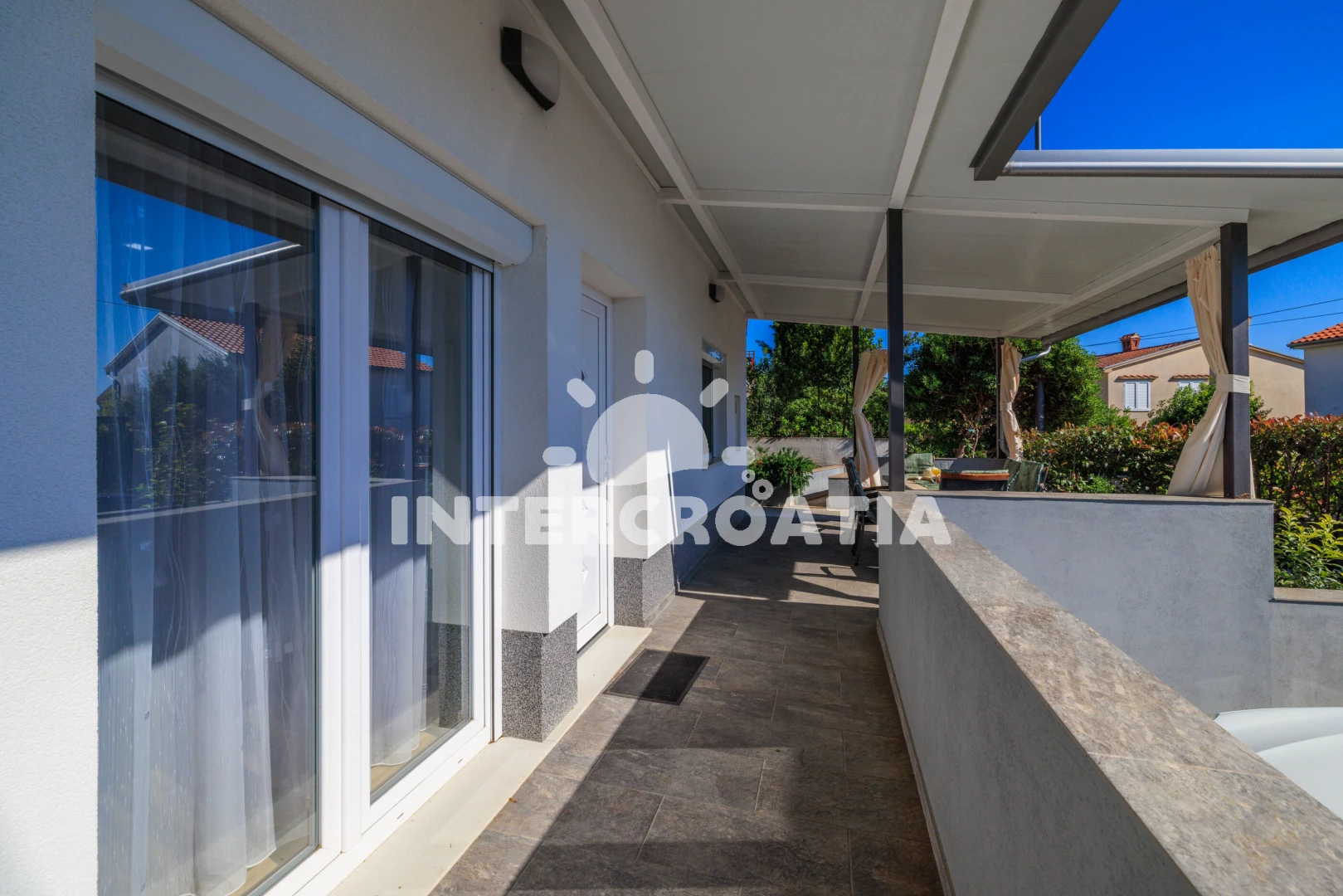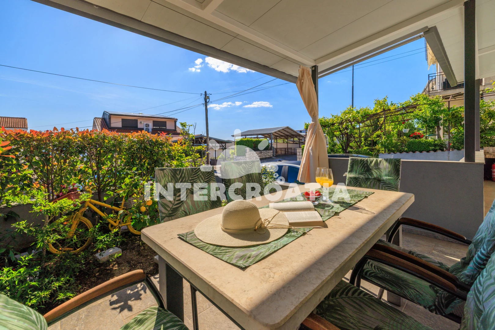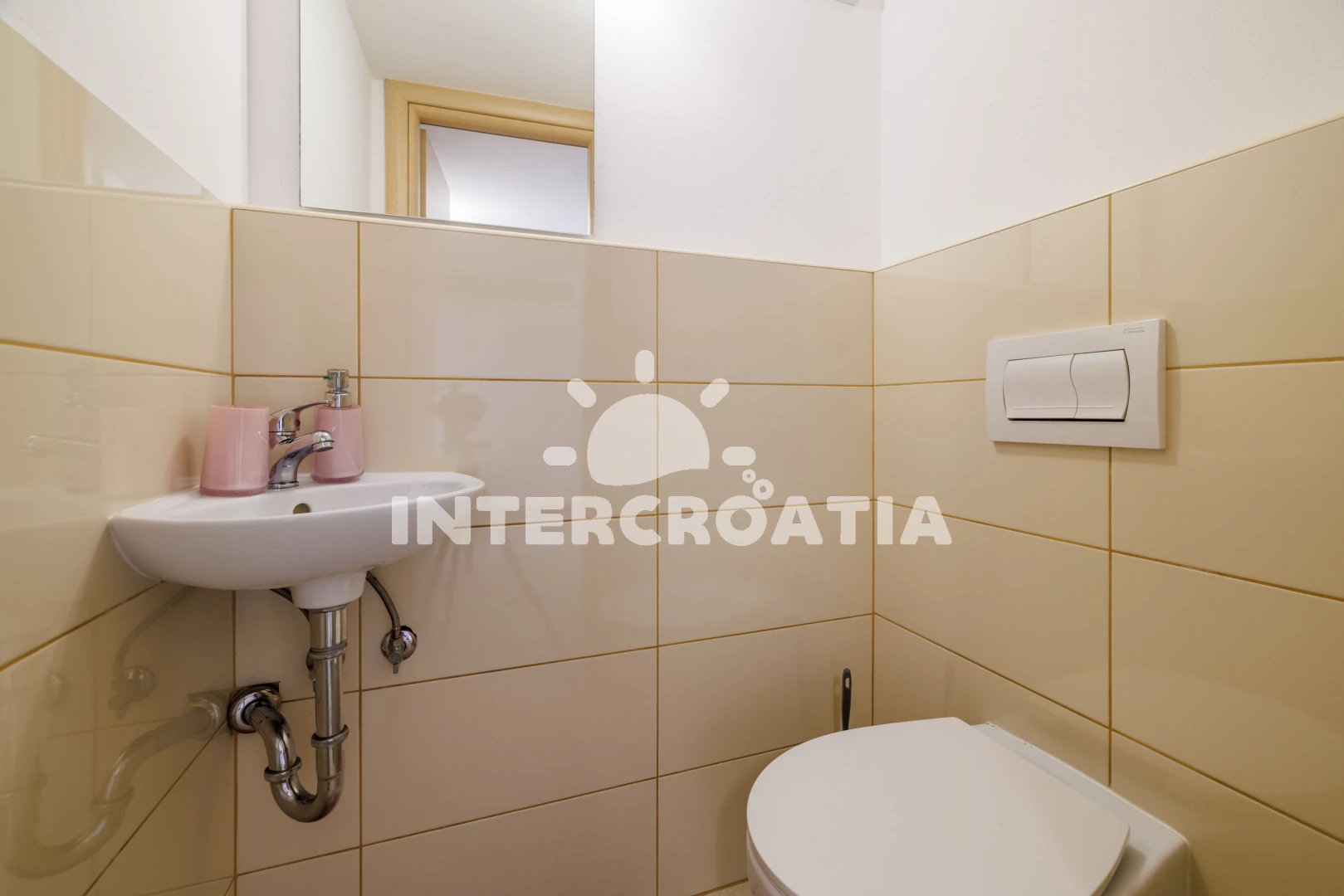 Apartmán se nachází 350 m od moře a pláže. Pláž je betonové desky, skalnatá a větší kamení. U objektu je k dispozici společná zahrada s posezením a grilem. Parkování je před domem.