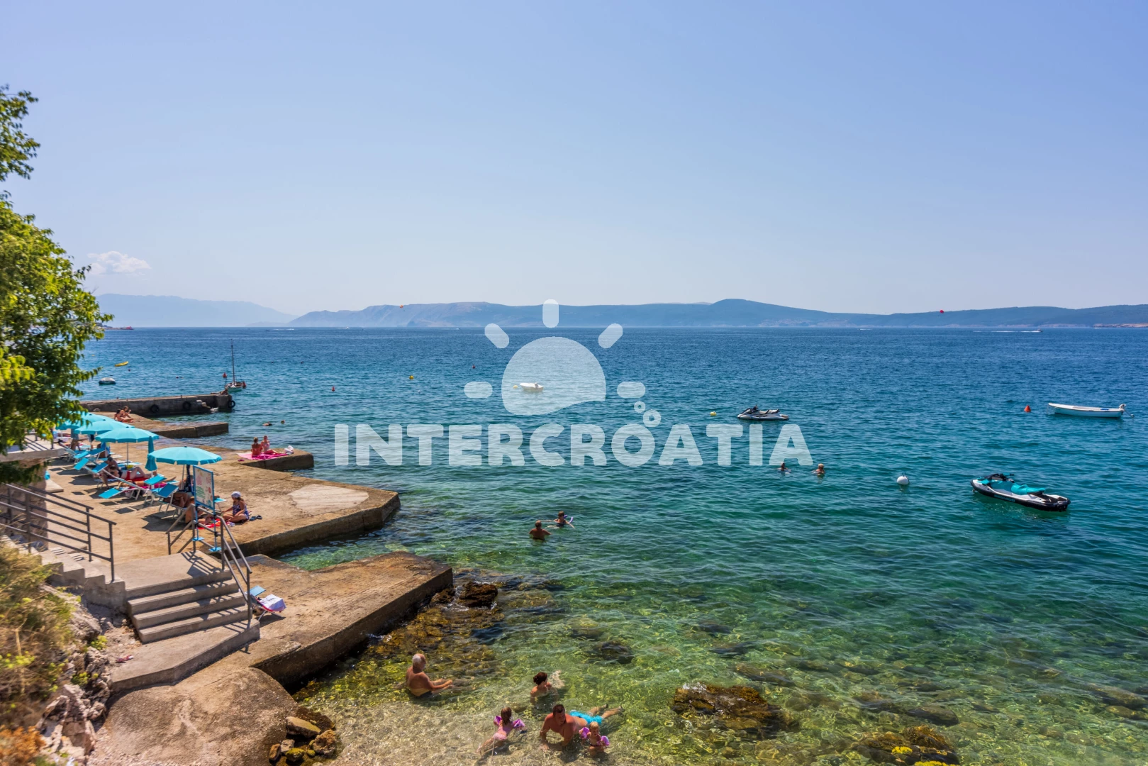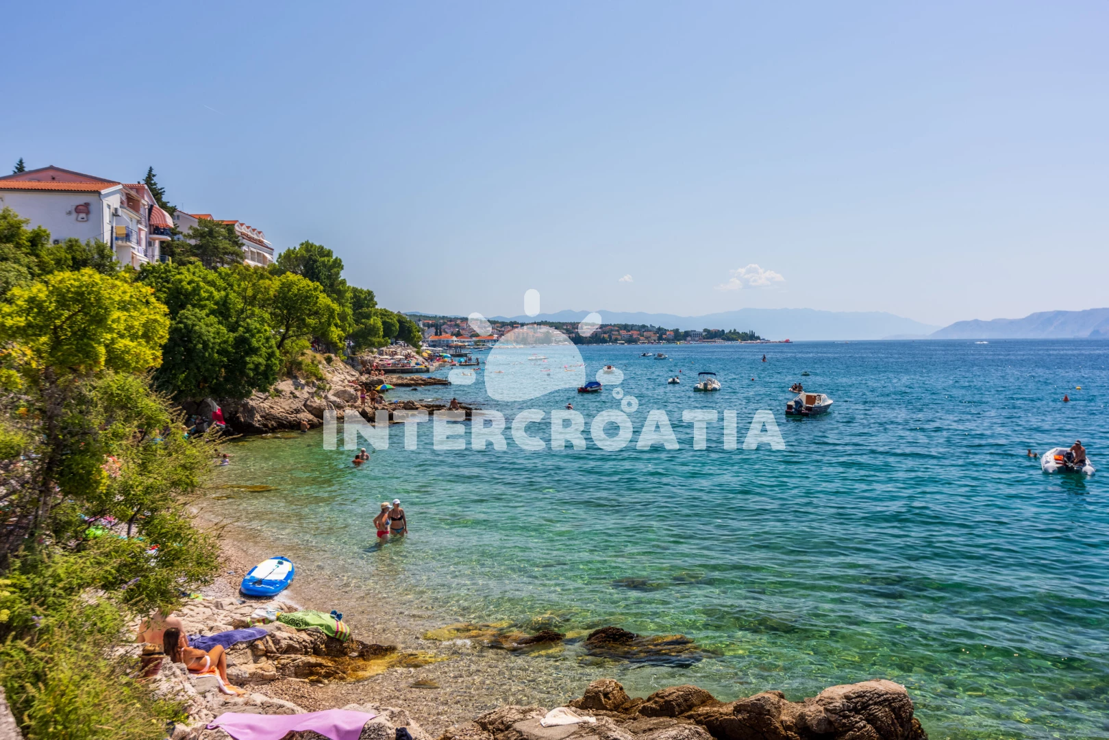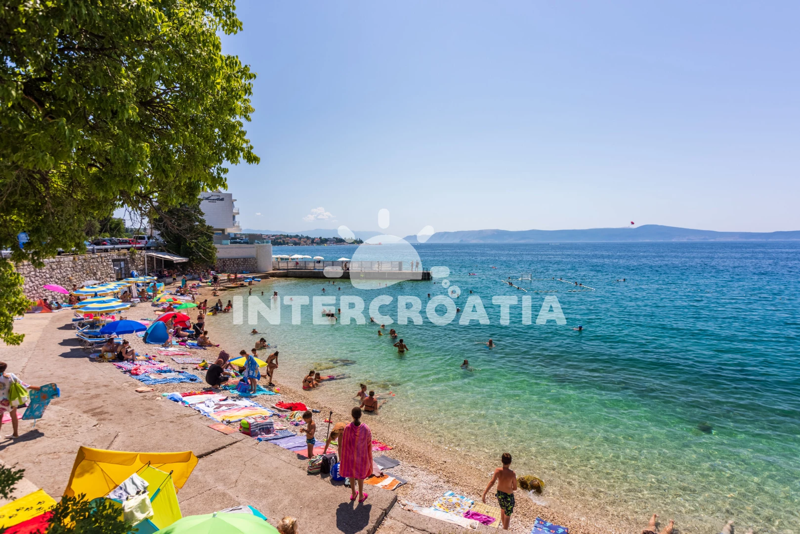 Vzdálenosti: Moře 130 m, pláž 170 m (oblázková a betonové desky), supermarket 500 m, bar 650 m, restaurace 650 m, centrum 1,2 km, marina 1,2 km, lékárna 1,2 km, banka 1,2 km, pošta 1,2 km, mini golf 1,5 km, letiště (Rijeka) 24 km,