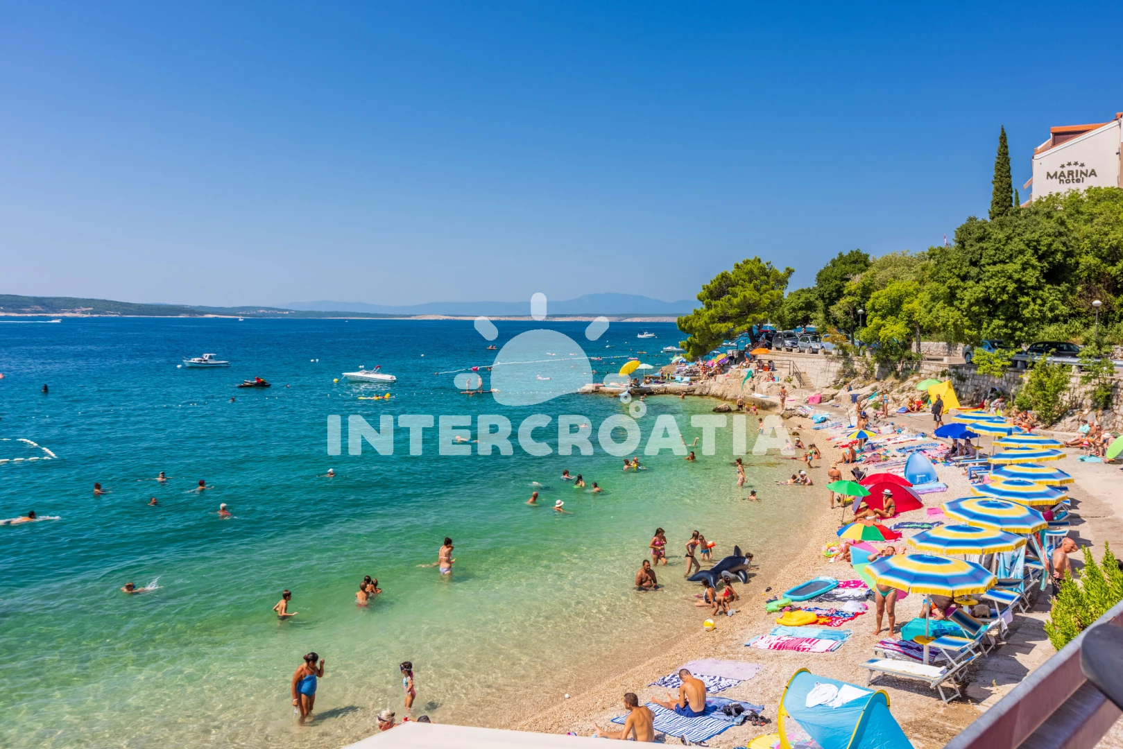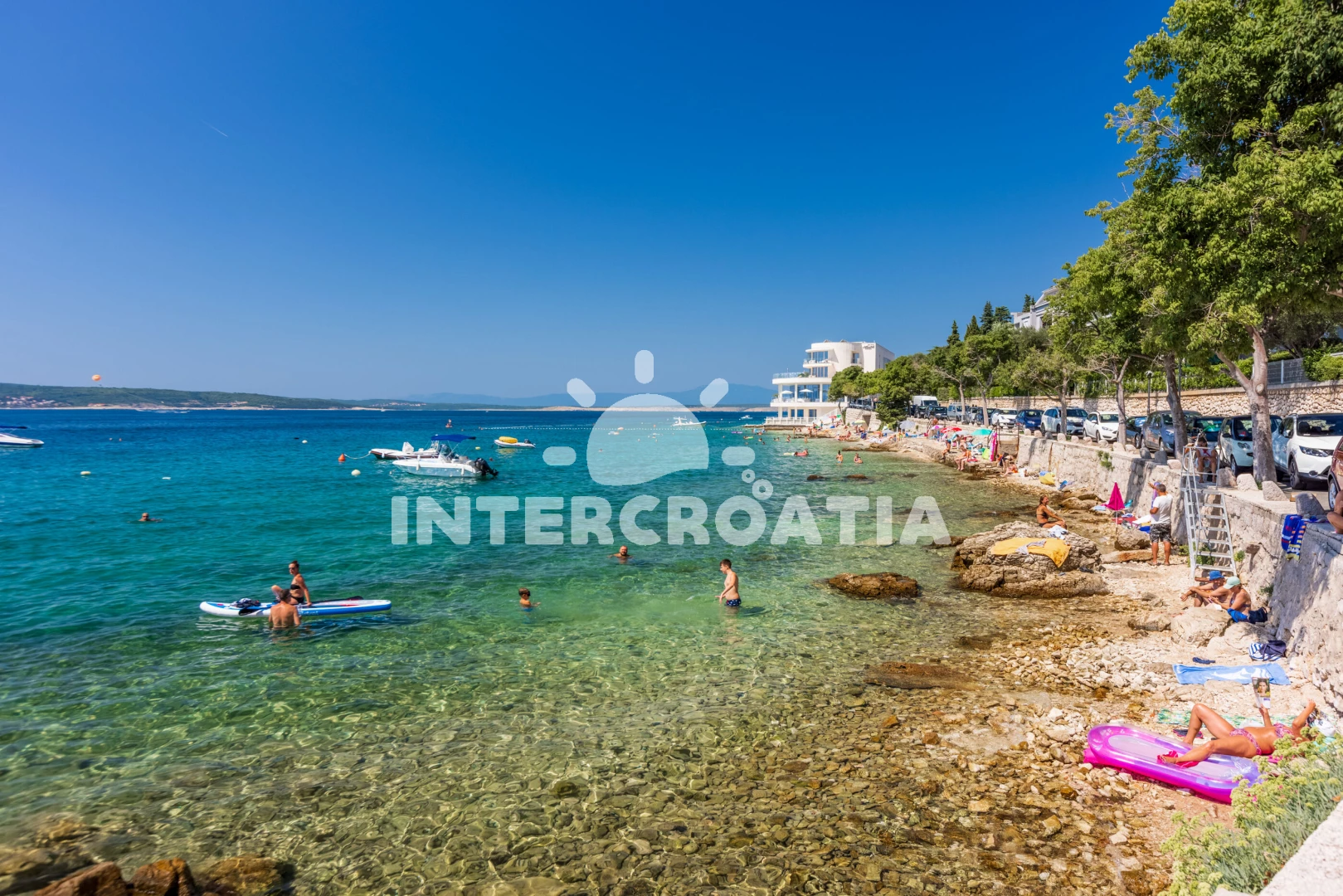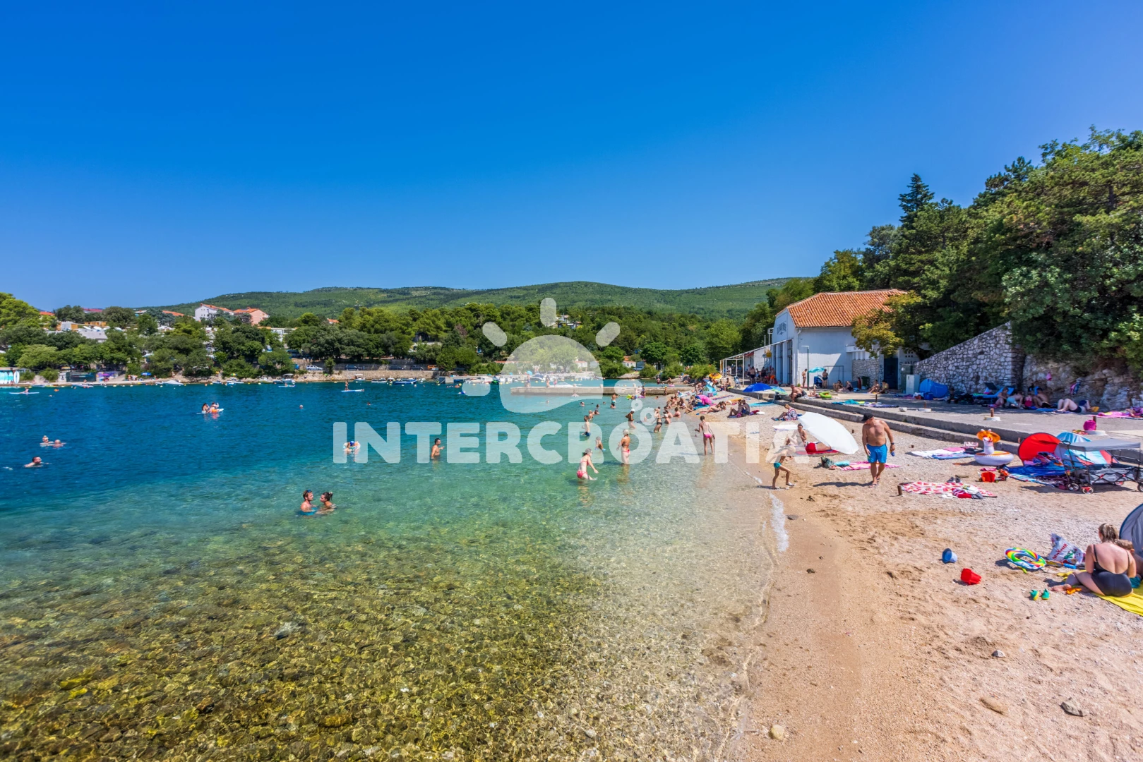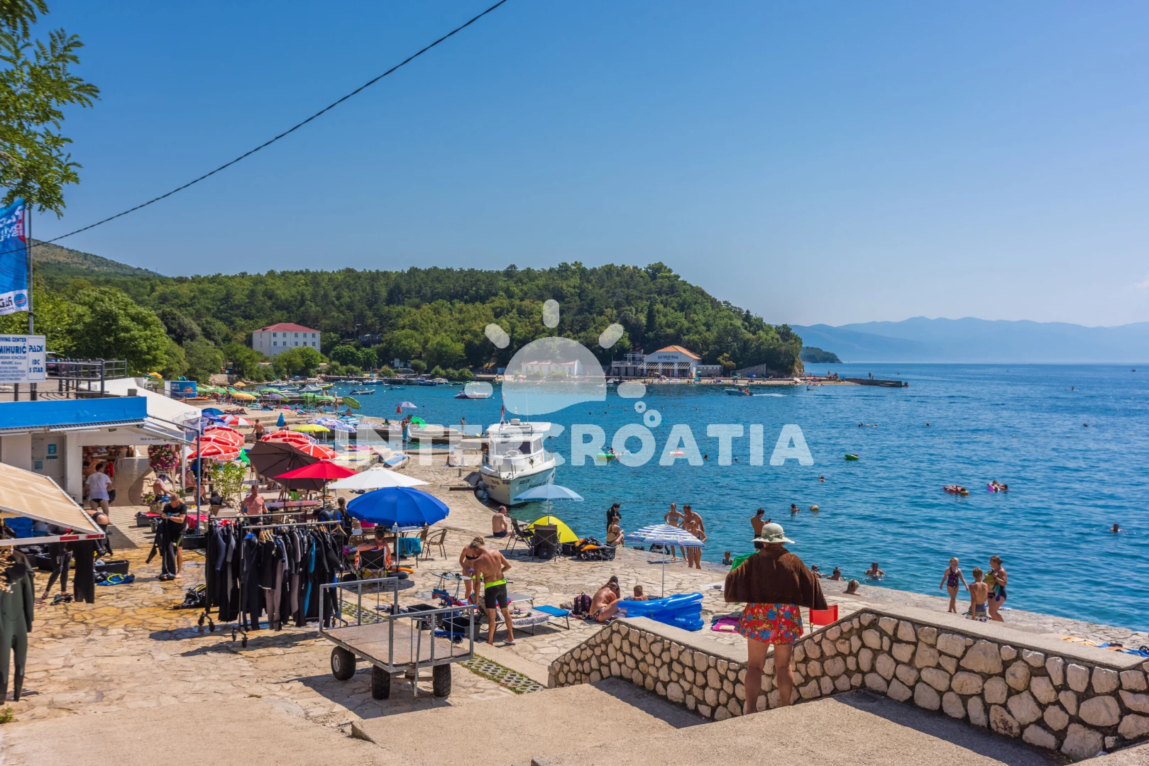 Vzdálenosti: Moře 130 m, pláž 170 m (oblázková a betonové desky), supermarket 500 m, bar 650 m, restaurace 650 m, centrum 1,2 km, marina 1,2 km, lékárna 1,2 km, banka 1,2 km, pošta 1,2 km, mini golf 1,5 km, letiště (Rijeka) 24 km,