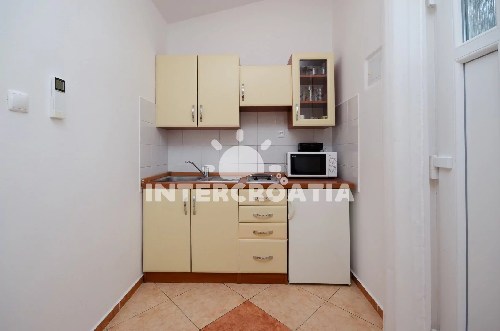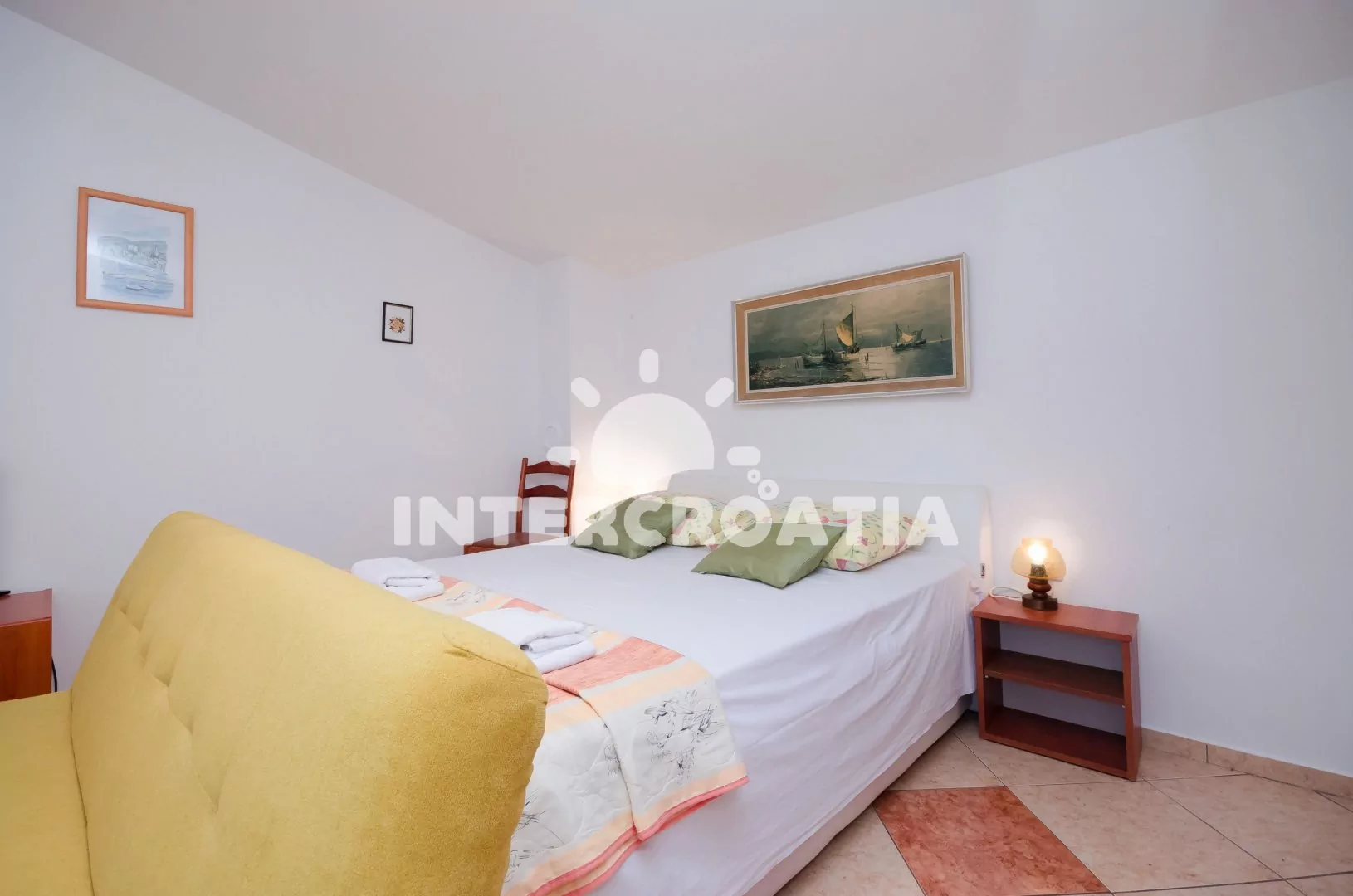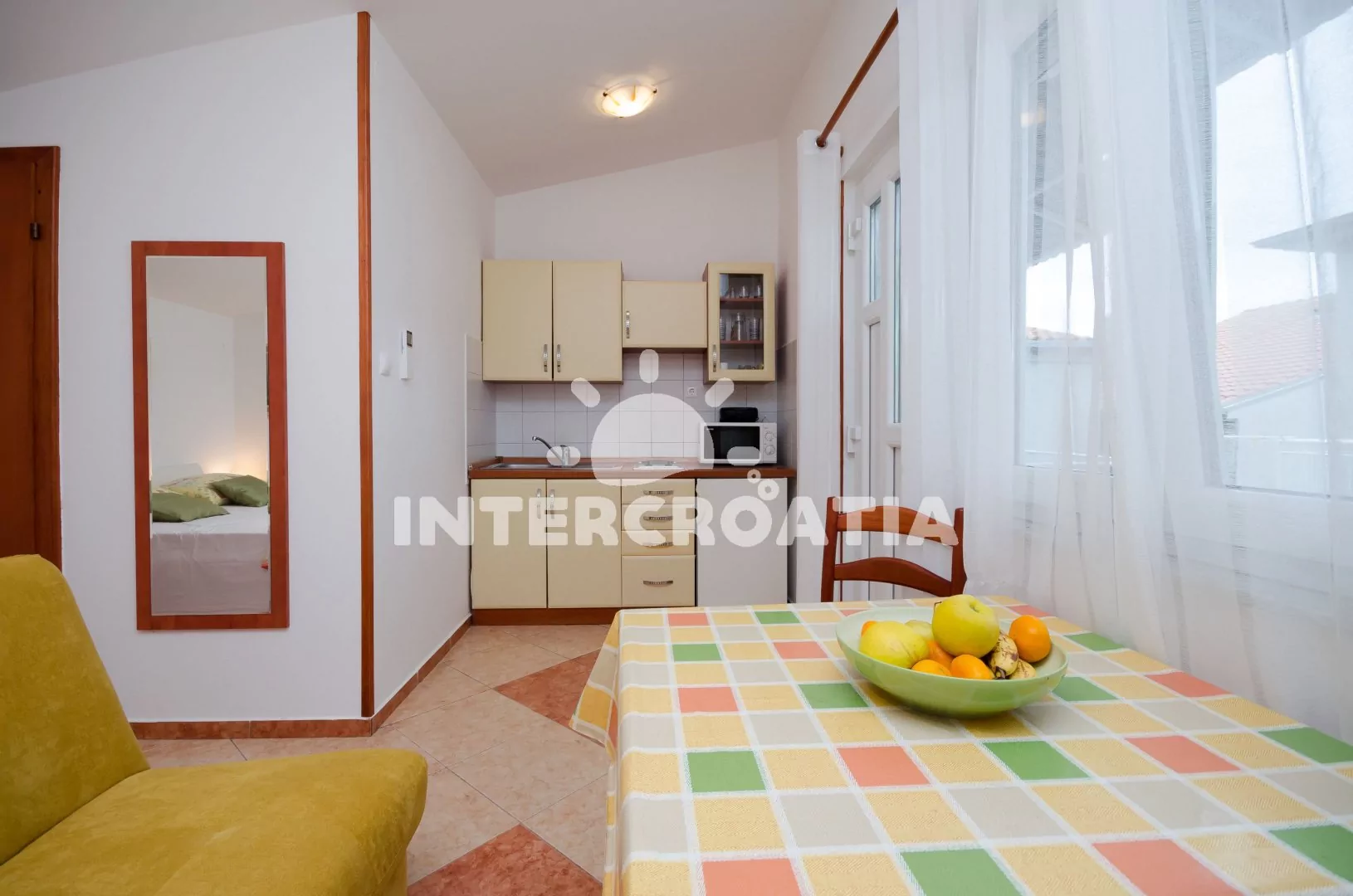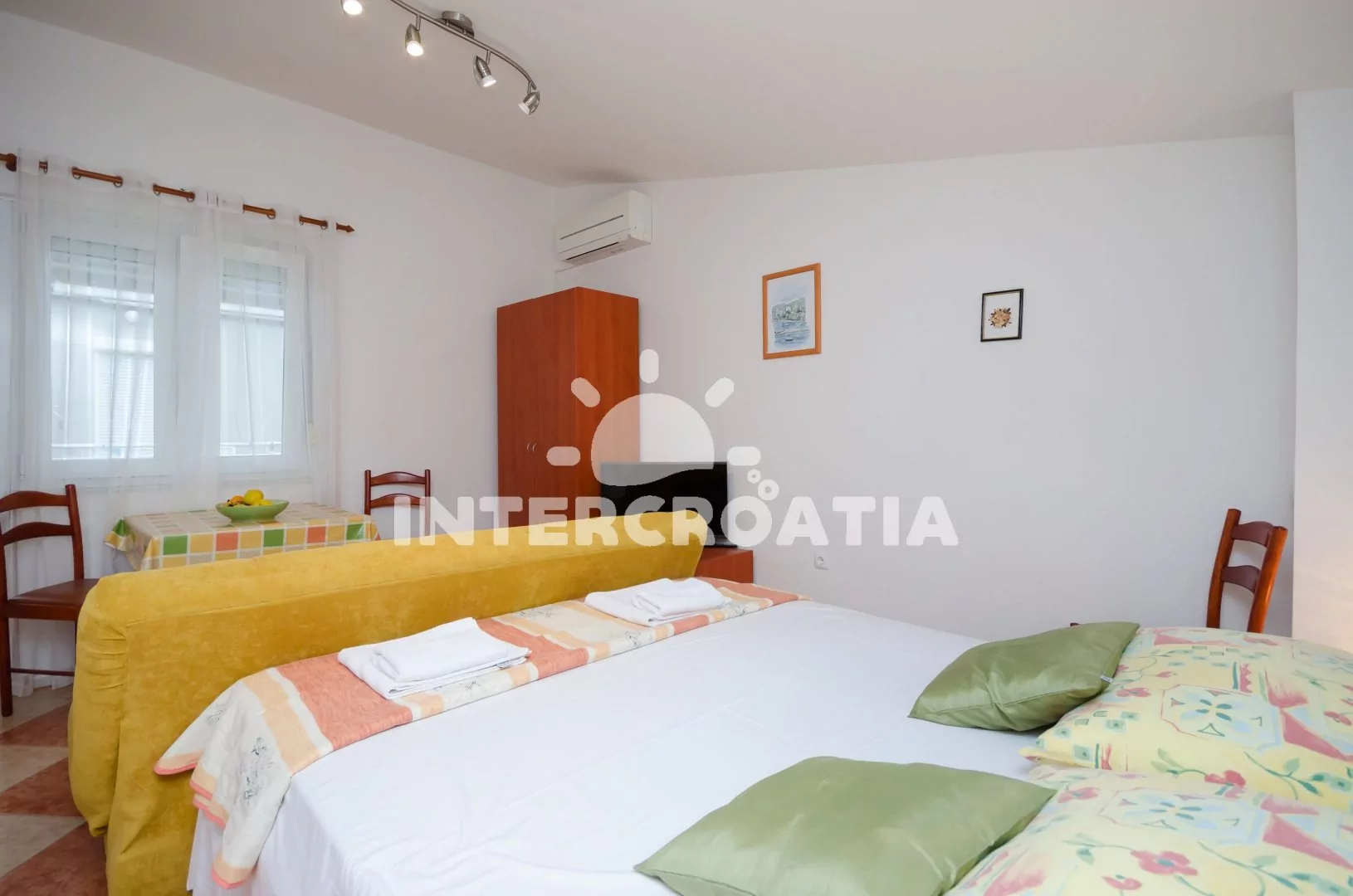 Apartmán typu studio se nachází v prvním patře domu a je vhodný pro 2 až 3 osoby. Obývací pokoj je spojený s kuchyní. Kuchyňská linka s elektrickým dvouplotýnkovým sporákem, mikrovlnnou troubou, rychlovarnou konvicí, kávovarem, nádobím a lednicí s mrazákem. Obývací pokoj s jídelním stolem pro 3 osoby, televizí se satelitním programem, klimatizací, jedním dvoulůžkem a rozkládací pohovkou (extra lůžko pro 1 osobu). Koupelna se sprchovým koutem, umyvadlem a wc. Hostům je k dispozici balkon s posezením a parkování u objektu zdarma.