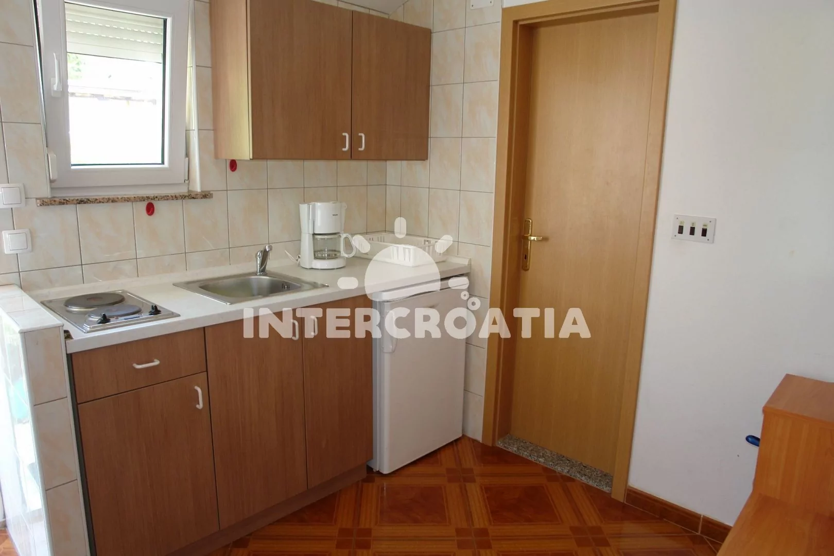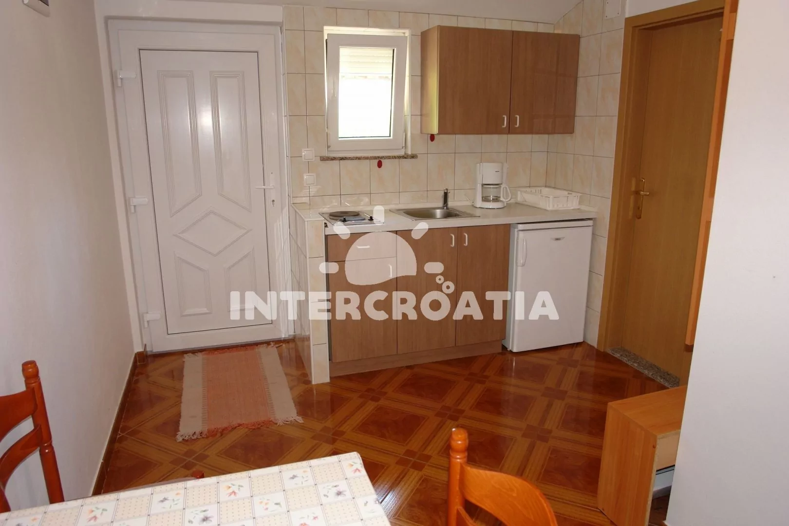 Apartmán s lodžií a výhledem na moře se nachází v druhém patře domu. Vstup: kuchyň s jídelním stolem pro 4 osoby, televizí se satelitním programem, kuchyňskou linkou s dvouplotýnkovým sporákem,…
