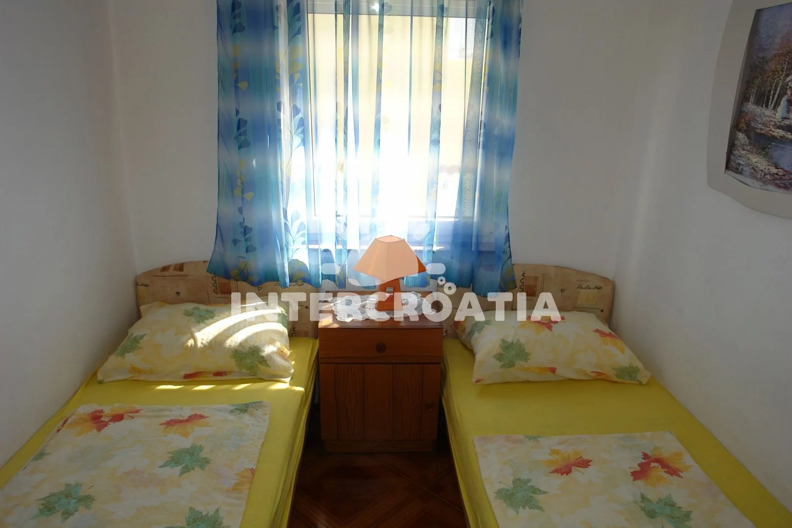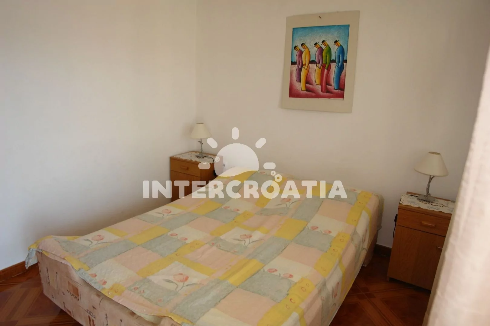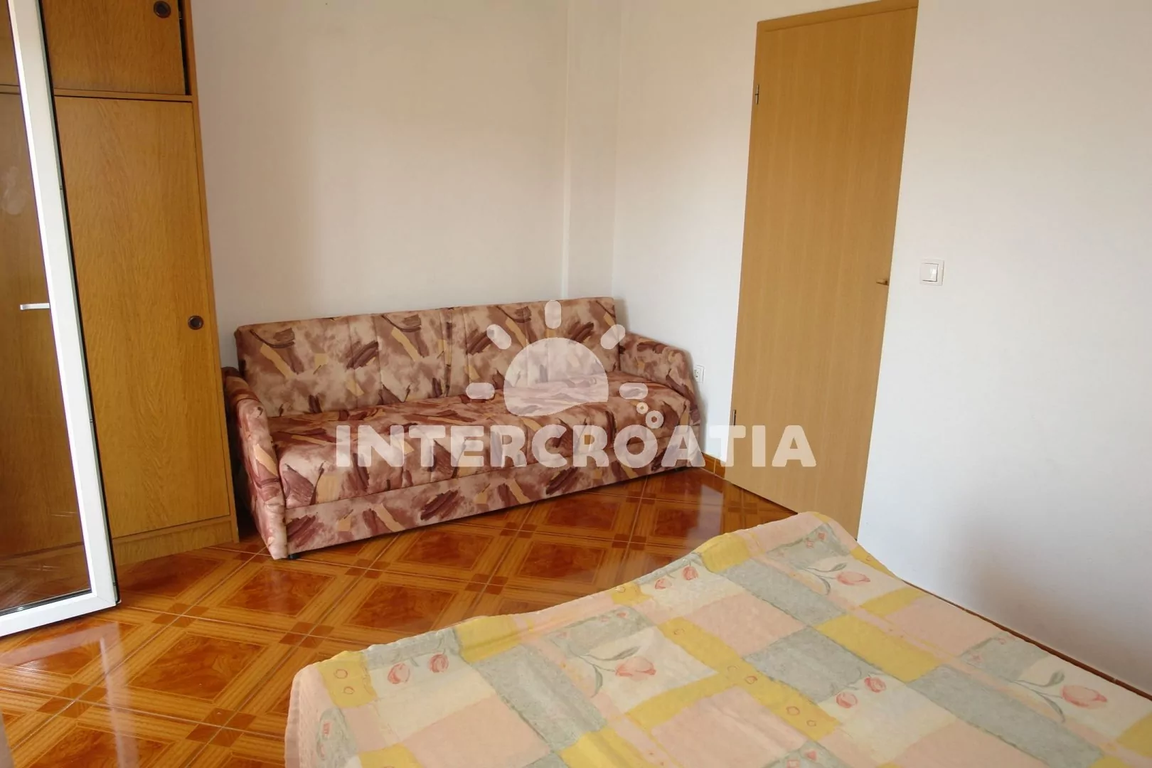 Apartmán s lodžií a výhledem na moře se nachází v druhém patře domu. Vstup: kuchyň s jídelním stolem pro 4 osoby, televizí se satelitním programem, kuchyňskou linkou s dvouplotýnkovým sporákem, kávovarem, nádobím a lednicí. První ložnice s dvoulůžkem, pohovkou (rozložitelná na extra lůžko pro 1 osobu), klimatizací a vstupem na balkon. Druhá ložnice s dvěma jednolůžky. Koupelna se sprchovým koutem, umyvadlem a wc. Hostům je k dispozici parkování u objektu zdarma.