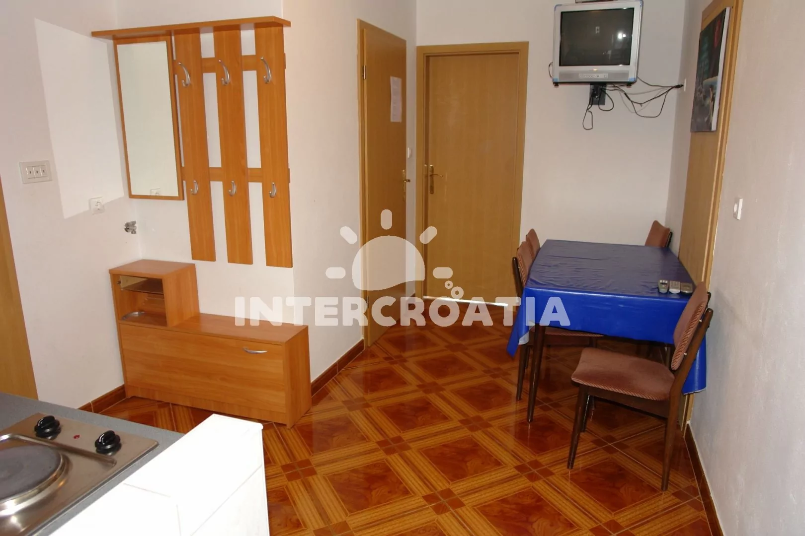 Apartmán (48 m2) s terasou a posezením se nachází v přízemí domu. Vstup: kuchyň s jídelním stolem pro 4 osoby, televizí se satelitním programem, kuchyňskou linkou s dvouplotýnkovým sporákem,…