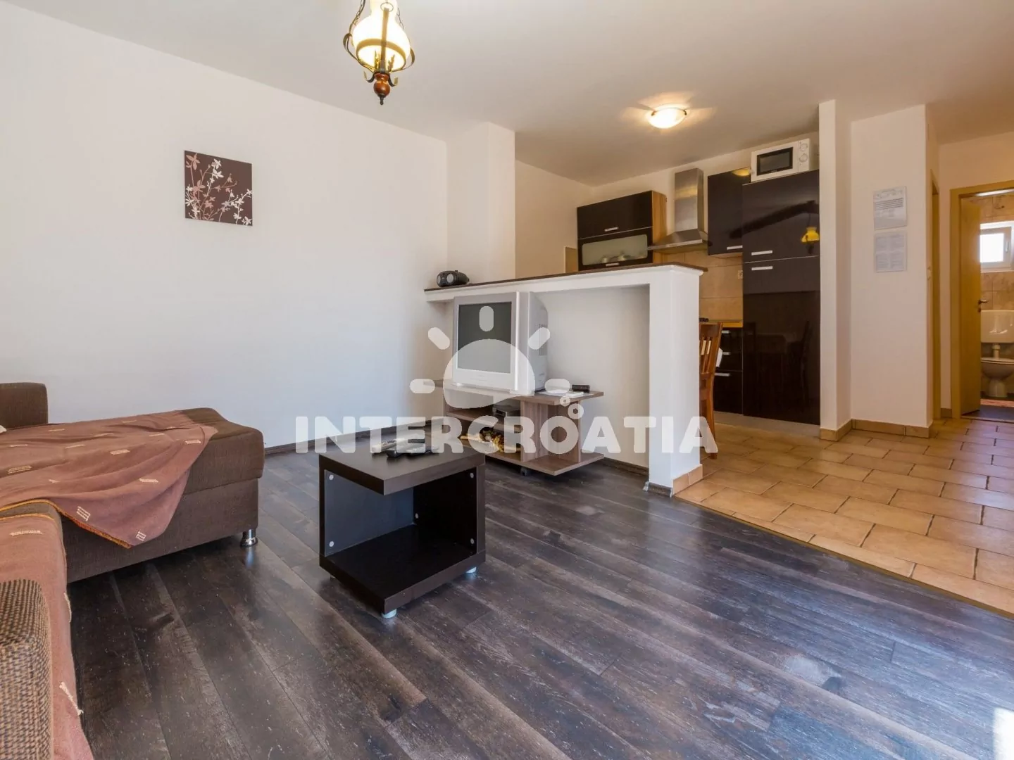 Apartmán s balkonem se nachází v prvním patře a je vhodný pro 2 - 4 osoby. Obývací pokoj je spojený s kuchyní. Kuchyňská linka je vybavena sporákem, digestoří, troubou, mikrovlnnou troubou,…