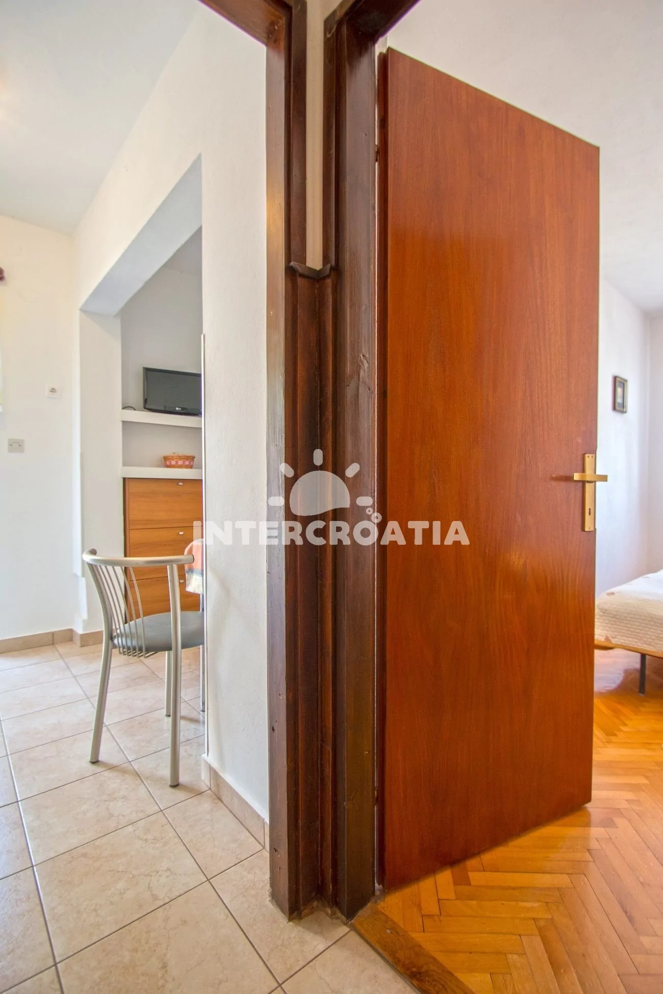 Skvěle umístěný apartmánový dům v klidné ulici s terasou, venkovním posezením a grilem. Dům se nachází pouze 50 m od moře a betonové pláže. Oblázková pláž 170 m a písečná pláž 700 m od domu. Parkovací místa pro automobily u objektu.