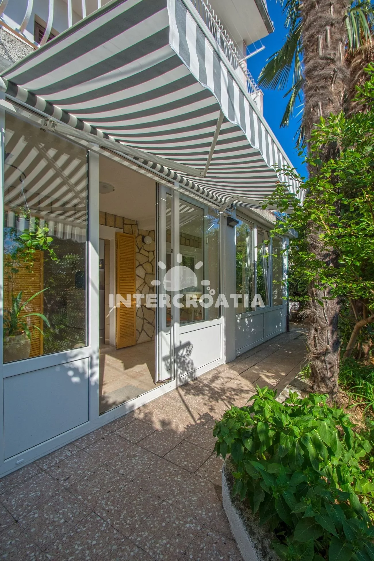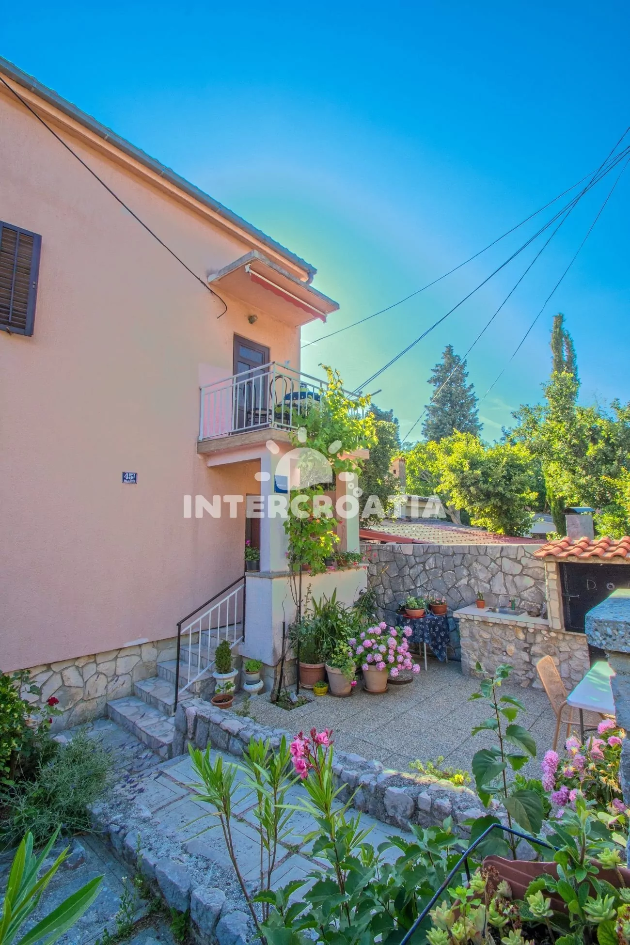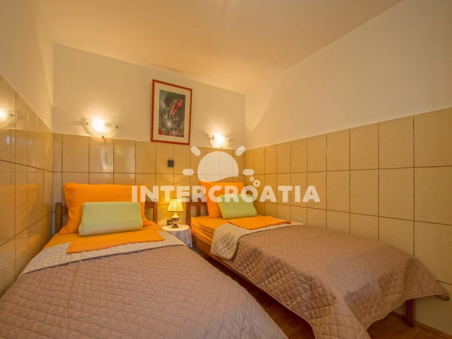 Apartmánový dům v klidné ulici se společnou terasou, venkovním posezením a grilem. Dům se nachází pouze 50 m od moře a betonové pláže. Oblázková pláž 170 m a písečná pláž 700 m od domu. Parkovací místa pro automobily u objektu.