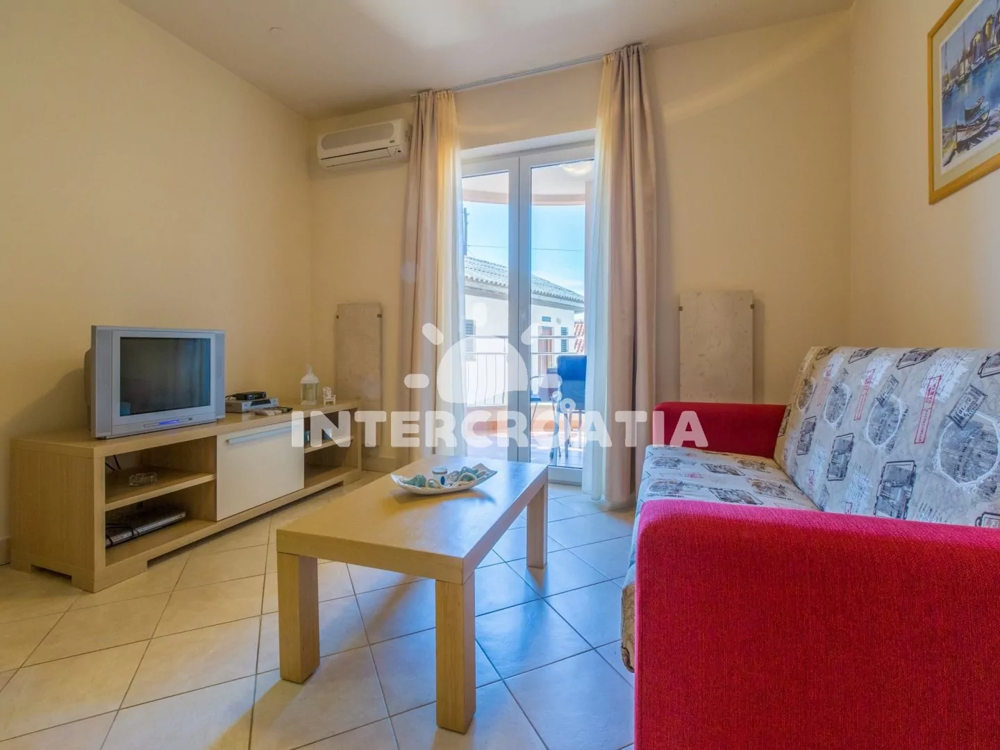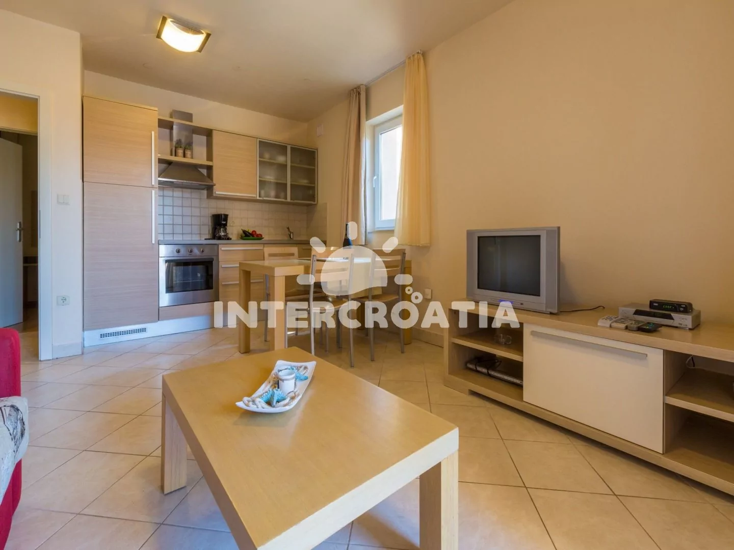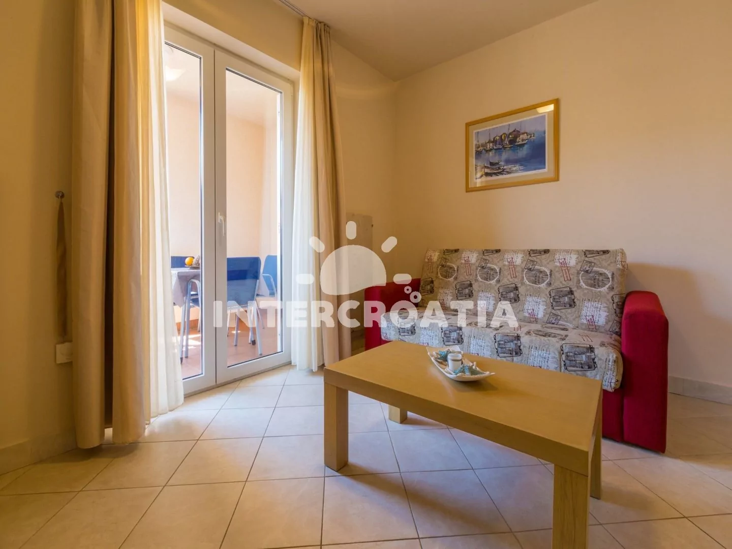 Apartmán (40 m2) s terasou, se nachází v přízemí domu a je vhodný pro 2 až 4 osoby. Obývací pokoj je spojený s kuchyní. Kuchyňská linka je vybavena sklokeramickou varnou deskou, digestoří, vestavěnou troubou, rychlovarnou konvicí, kávovarem, toustovačem, nádobím a lednicí s mrazákem. Obývací pokoj s jídelním stolem pro 4 osoby, pohovkou (rozložitelná na extra lůžko pro 2 osoby), televizí se satelitním programem, klimatizací a vstupem na terasu. Ložnice s dvoulůžkem a klimatizací. Koupelna se sprchovým koutem, umyvadlem, fénem a wc. Hostům je k dispozici parkování u objektu zdarma.