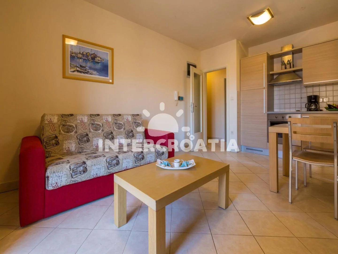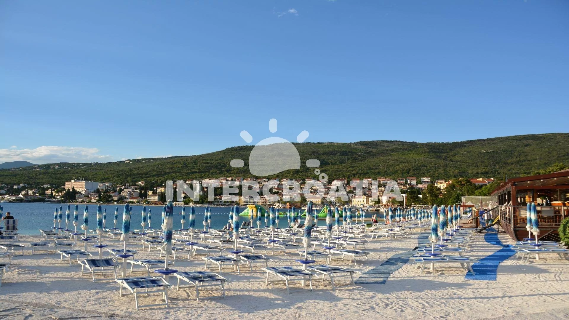 Vzdálenosti: Moře a pláž 30 m, centrum 350 m, restaurace 20 m, supermarket 200 m, lékárna 300, banka, pošta 350 m, minigolf 100 m, letiště 30 km.