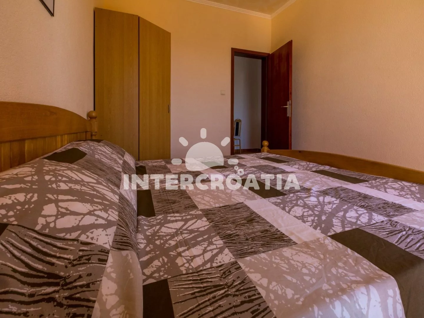 Apartmán s terasou, výhledem na moře se nachází v 1. patře domu a je vhodný pro 2 až 4 osoby. Obývací pokoj je spojený s kuchyní. Kuchyňská linka s dvouplotýnkovým vařičem, rychlovarnou konvicí, kávovarem, toustovačem, nádobím a lednicí s mrazákem. Obývací pokoj s pohovkami (rozložitelná na extra lůžko pro 2 osoby), televizí se satelitním programem a vstupem na balkon. Dále chodba s jídelním stolem pro 4 osoby. Ložnice s jedním dvoulůžkem, klimatizací a vstupem na balkon. Koupelna se sprchovým koutem, umyvadlem a wc. Hostům je k dispozici parkování u objektu zdarma.