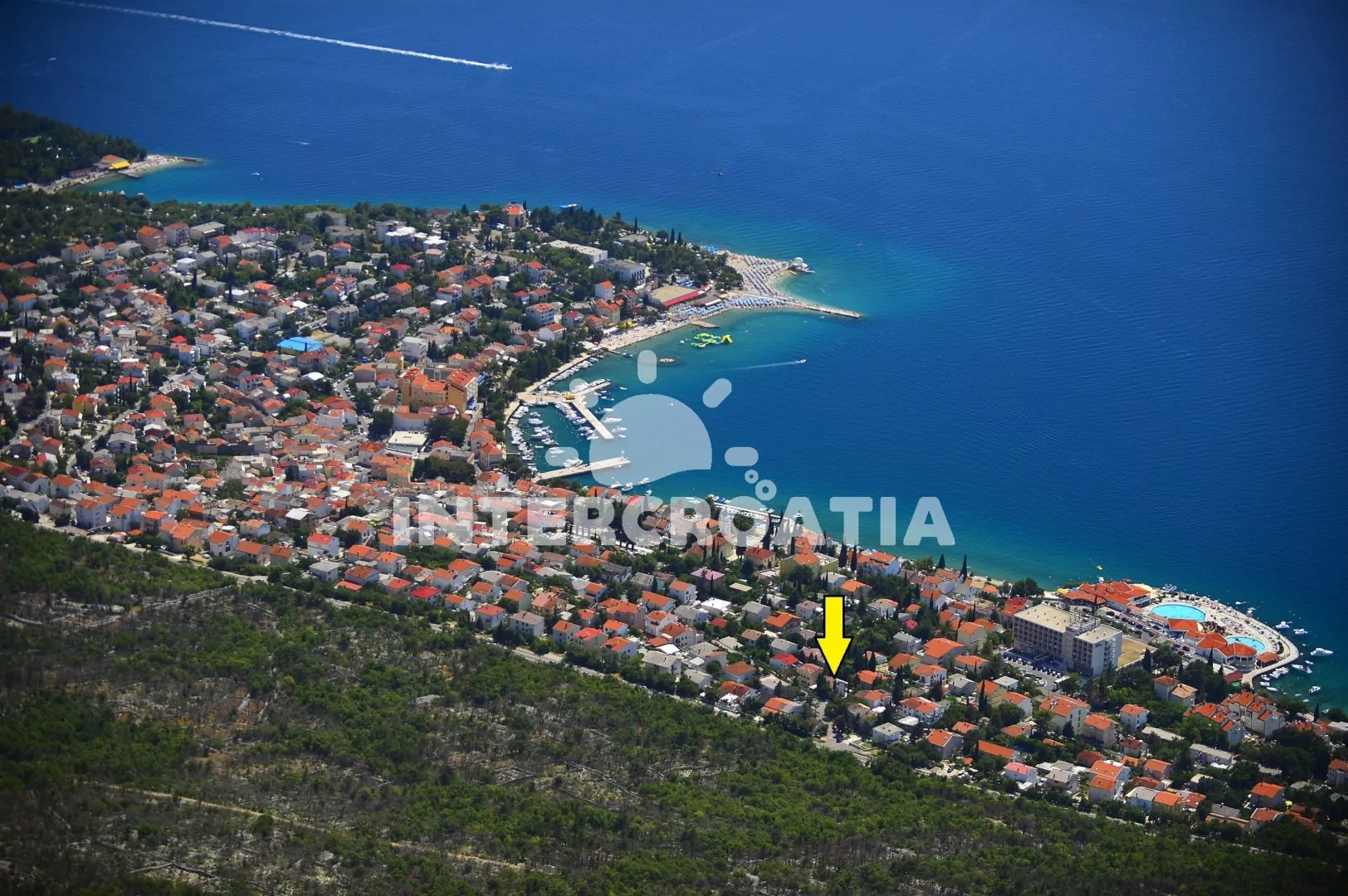 Vzdálenosti: Moře a betonová pláž 300 m, oblázková pláž 350 m, centrum 500 m, restaurace 40 m, supermarket, lékárna, ambulance, banka, pošta 250 m, letiště 35 km.