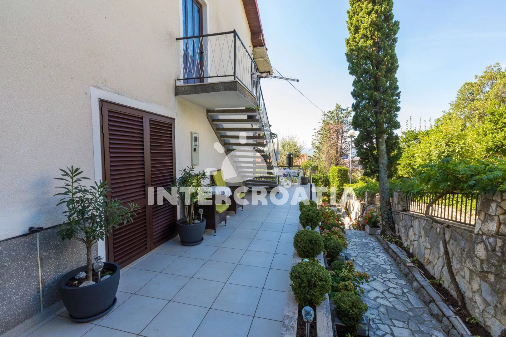 Vilka s dvěma apartmány a výhledem na moře. Velmi hezká zahrada se zelení, terasou s venkovním posezením a zděným grilem. Parkovací místa u objektu.