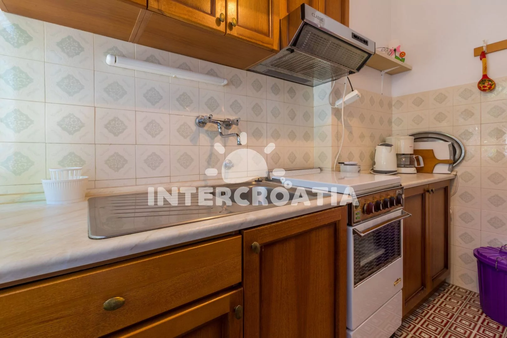 Apartmán (64 m2) s terasou a výhledem na moře se nachází v 1. patře. Apartmán je vhodný pro 4 až 6 osob. Kuchyňská linka je vybavena sporákem, digestoří, troubou, rychlovarnou konvicí, kávovarem,…