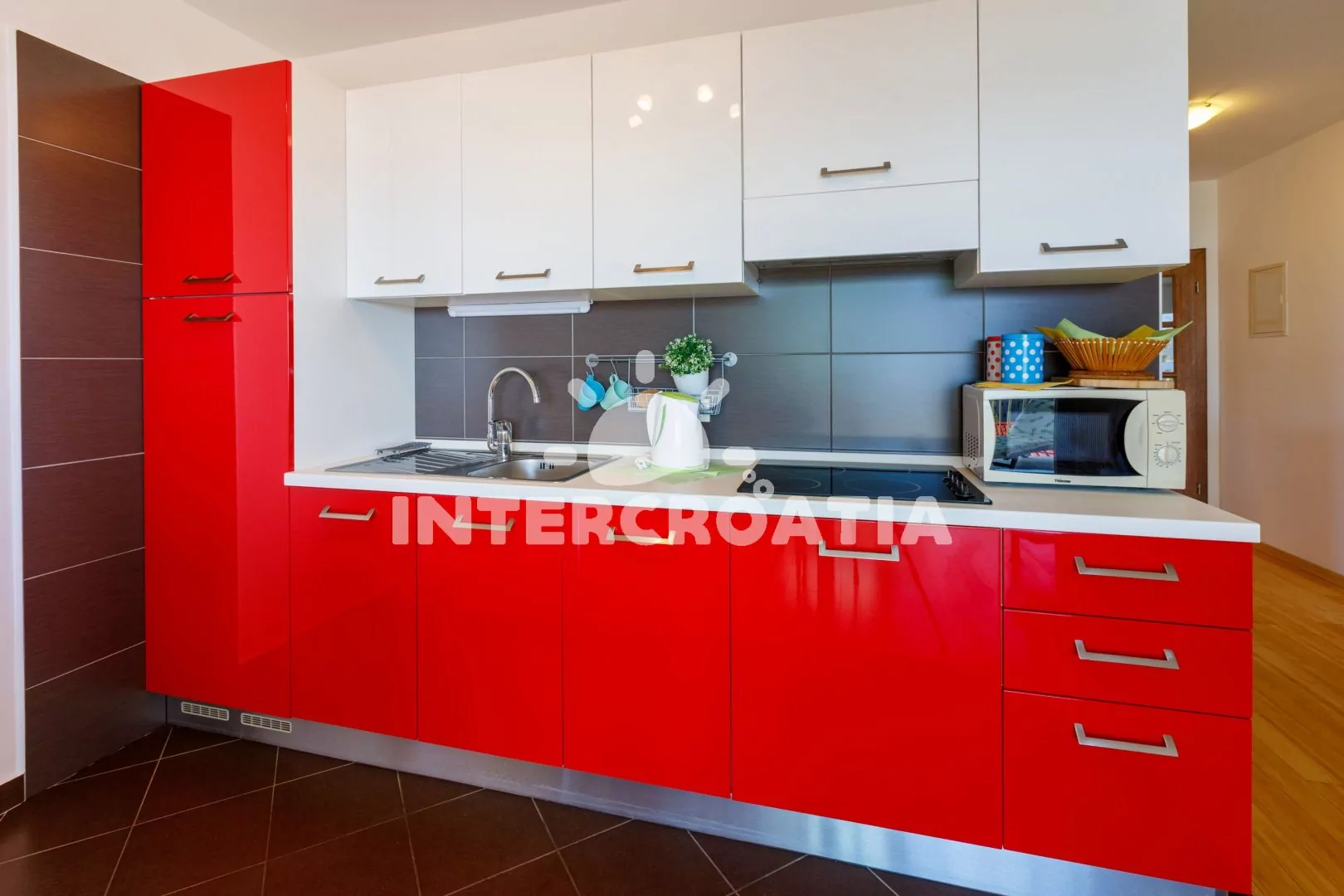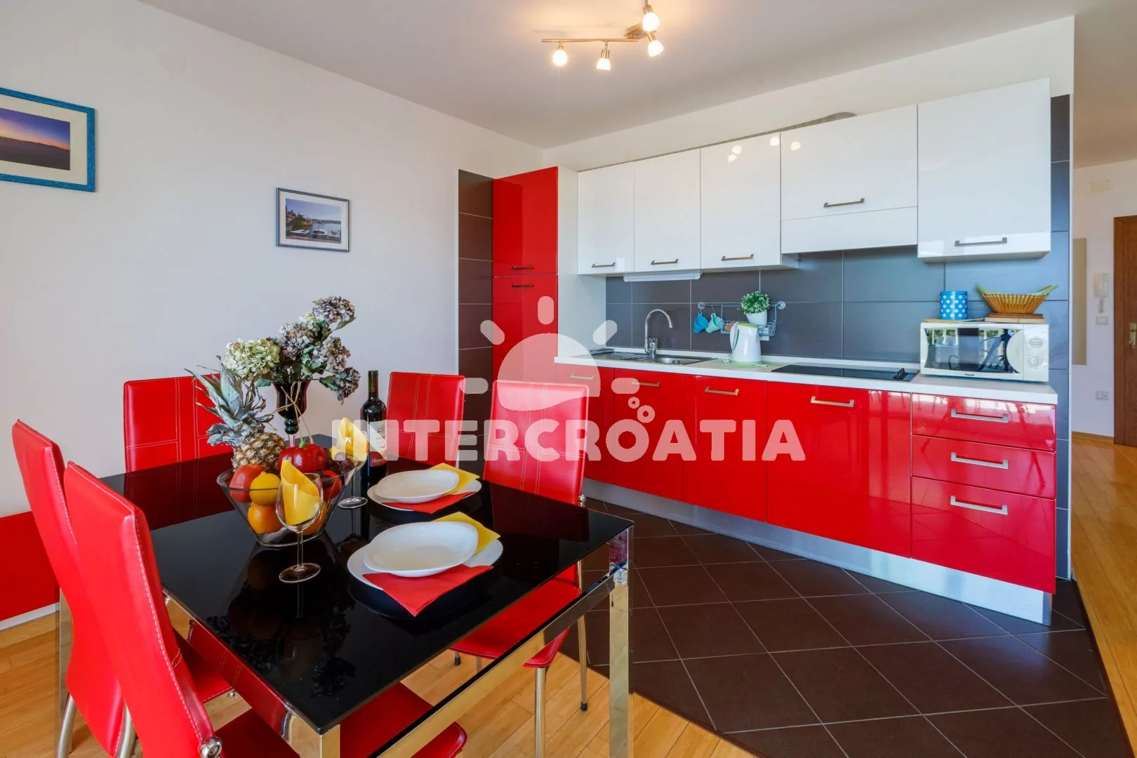 Apartmán (55 m2) s vlastní terasou a výhledem na moře se nachází v 2. patře domu a je vhodný pro 4 až 5 osob. Obývací pokoj je spojený s kuchyní. Kuchyňská linka je vybavena sklokeramickou varnou…