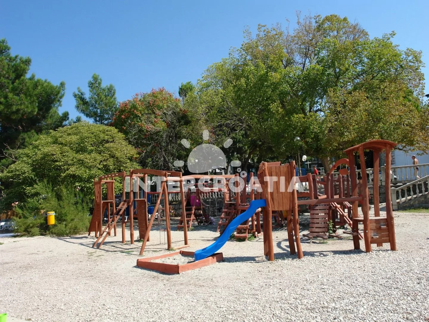 Vzdálenosti: Moře a pláž 350 m, centrum 300 m, restaurace, směnárna 100, bar 200 m, supermarket 200 m, lékárna, banka, pošta 300 m, ambulance 550 m, čerpací stanice 1,2 km, diskotéka 3 km, letiště 25, trajekt 40 km.