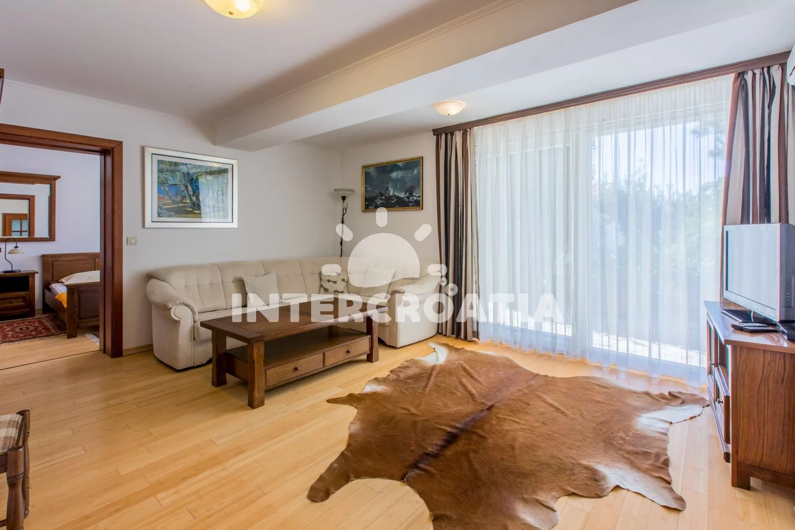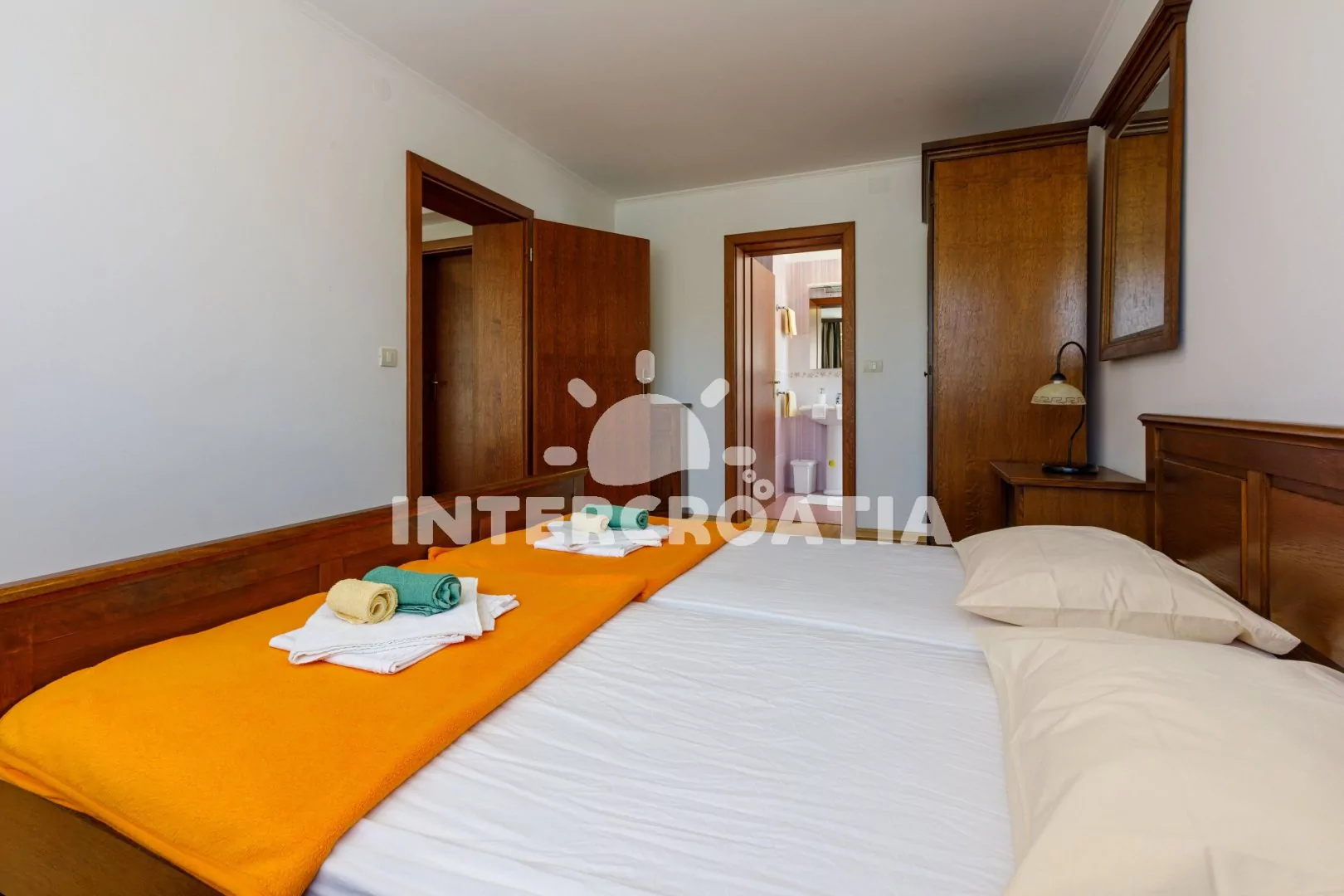 Apartmán (65 m2) s vlastní terasou a výhledem na moře se nachází v přízemí domu a je vhodný až pro 4 osoby. Obývací pokoj je spojený s kuchyní. Kuchyňská linka je vybavena sklokeramickou varnou deskou, digestoří, troubou, myčkou na nádobí, kávovarem, nádobím a lednicí s mrazákem. Obývací pokoj s jídelním stolem, rohovou pohovkou (rozložitelná na extra lůžko pro 2 osoby), televizí se satelitním programem, klimatizací a vstupem na terasu. Ložnice je vybavena jedním dvoulůžkem. Koupelna se sprchovým koutem, umyvadlem, bidetem a wc. Dále samostatné wc s umyvadlem. Hostům je k dispozici parkování u objektu zdarma.