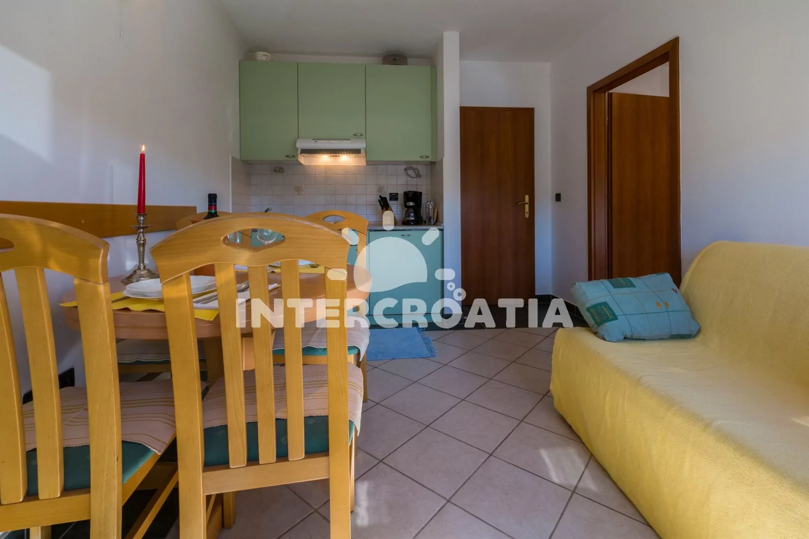 Apartmán (45 m2) s balkonem a výhledem do ulice, se nachází v 2. patře vily a je vhodný pro 4 osoby. Obývací pokoj je spojený s kuchyní. Kuchyňská linka je vybavena varnou deskou, digestoří, myčkou…