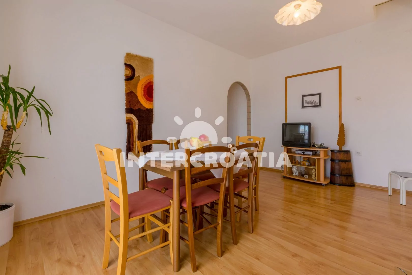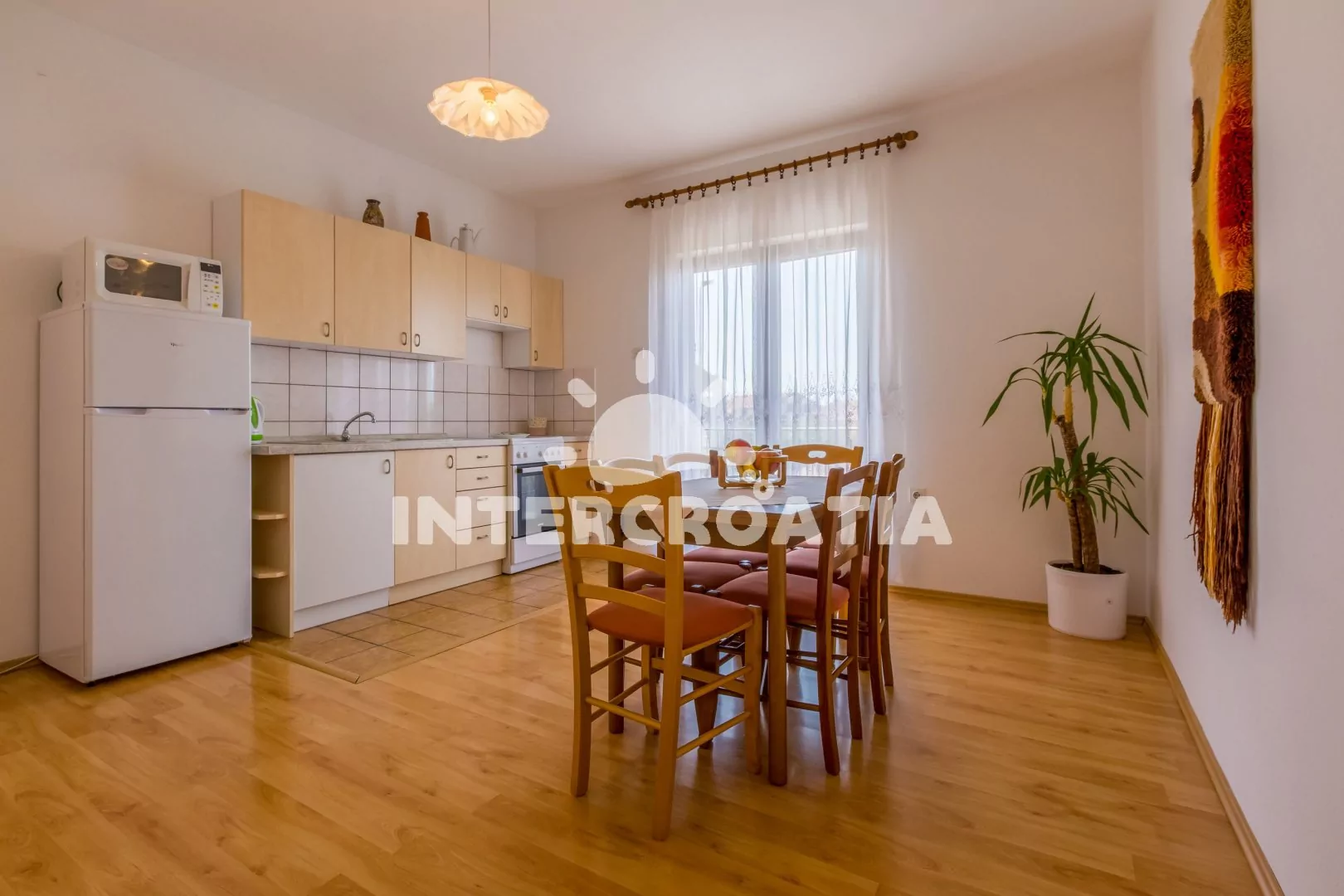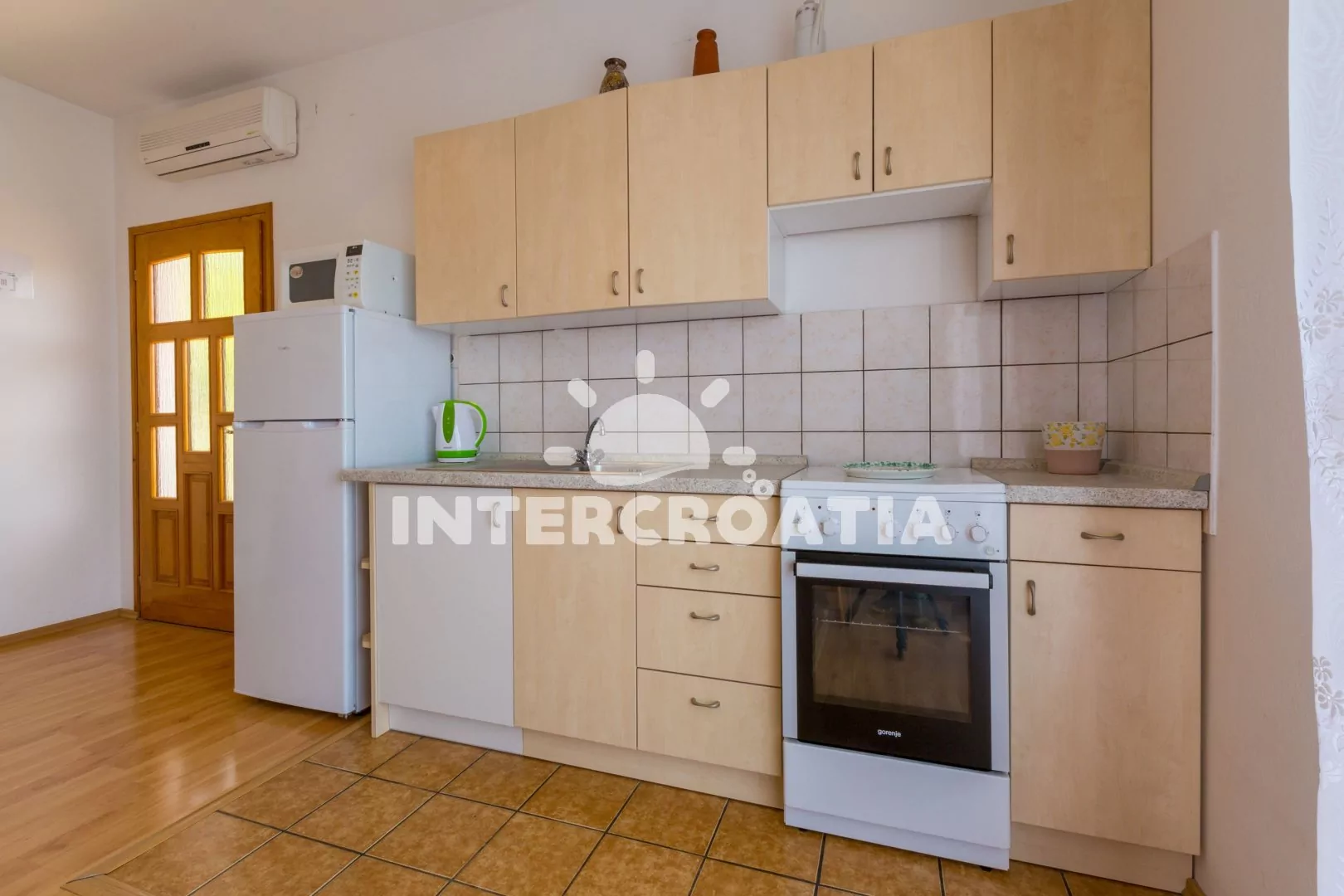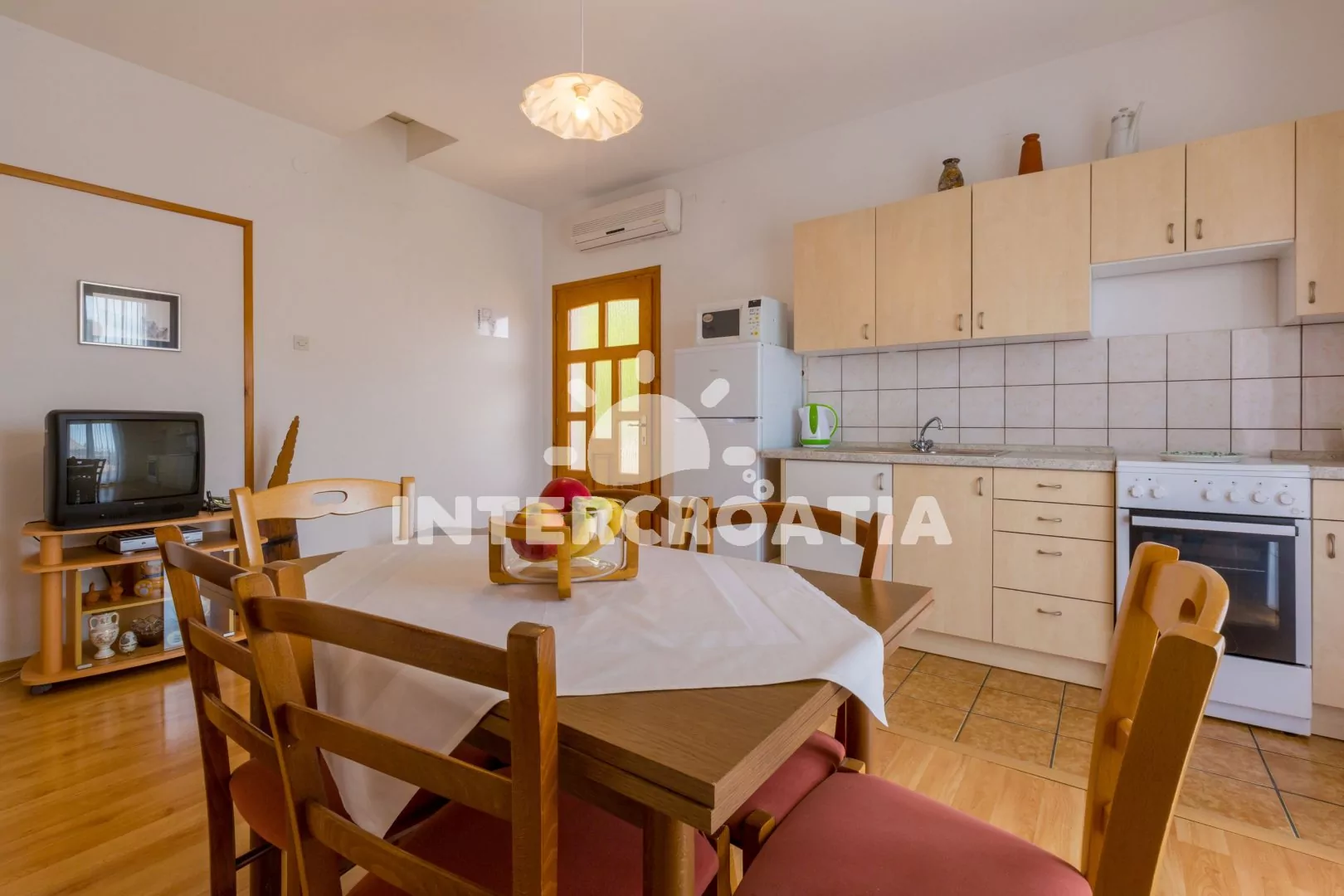 Apartmán (60 m2) s balkonem se nachází v 2. patře domu a je vhodný pro 4 až 6 osob. Obývací pokoj je spojený s kuchyní. Kuchyňská linka je vybavena varnou deskou, troubou, kávovarem, mikrovlnnou…
