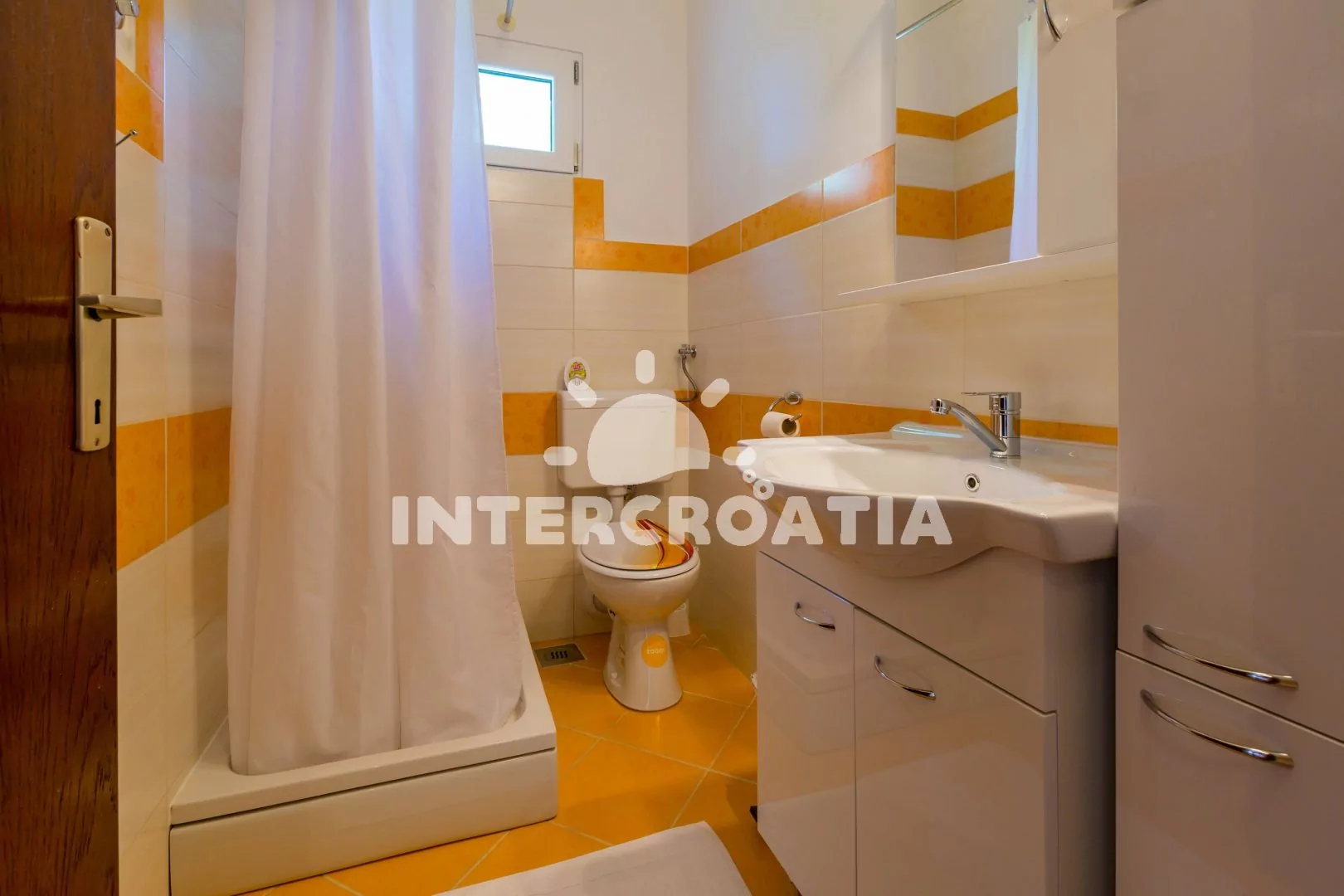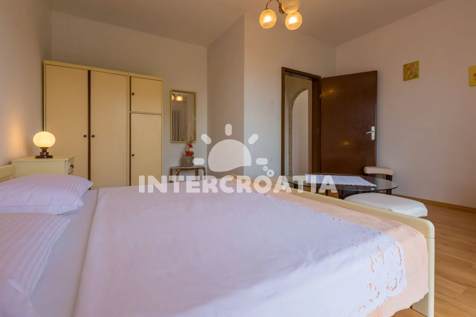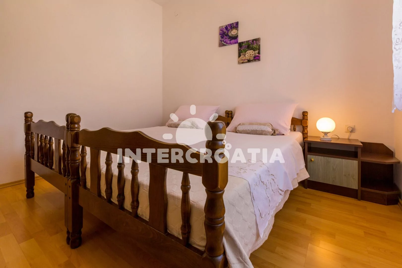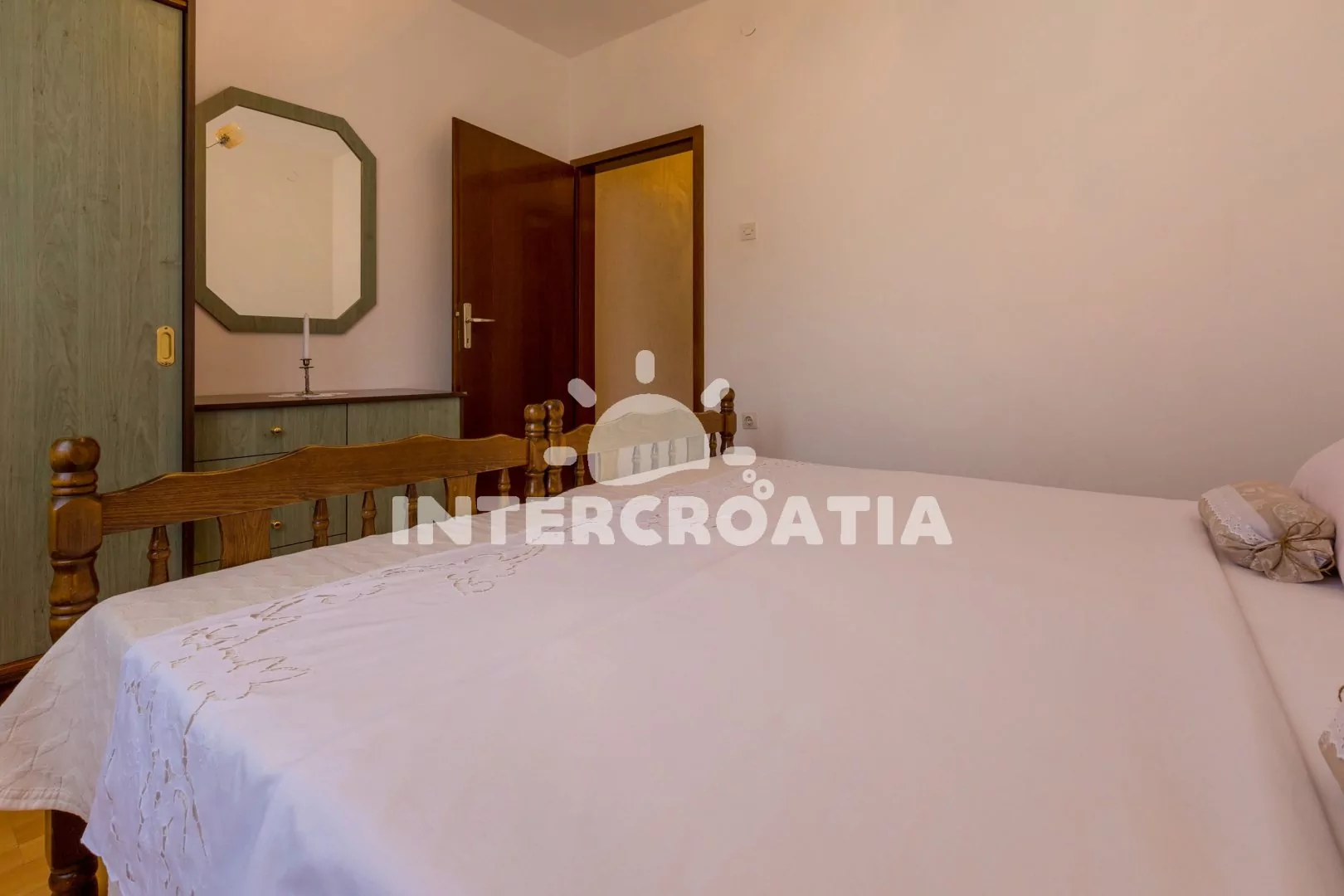 Apartmán (60 m2) s balkonem se nachází v 2. patře domu a je vhodný pro 4 až 6 osob. Obývací pokoj je spojený s kuchyní. Kuchyňská linka je vybavena varnou deskou, troubou, kávovarem, mikrovlnnou troubou, rychlovarnou konvicí, nádobím a lednicí s mrazákem. Obývací pokoj s jídelním stolem pro 6 osob, přistýlkou (rozložitelná na extra lůžko pro 1 osobu), televizí se satelitním programem a klimatizací. Ložnice s dvoulůžkem, přistýlkou (rozložitelná na extra lůžko pro 1 osobu) a vstupem na balkon. Druhá ložnice s dvěma jednolůžky. Koupelna se sprchovým koutem, umyvadlem a wc. Hostům je k dispozici parkování u objektu zdarma.