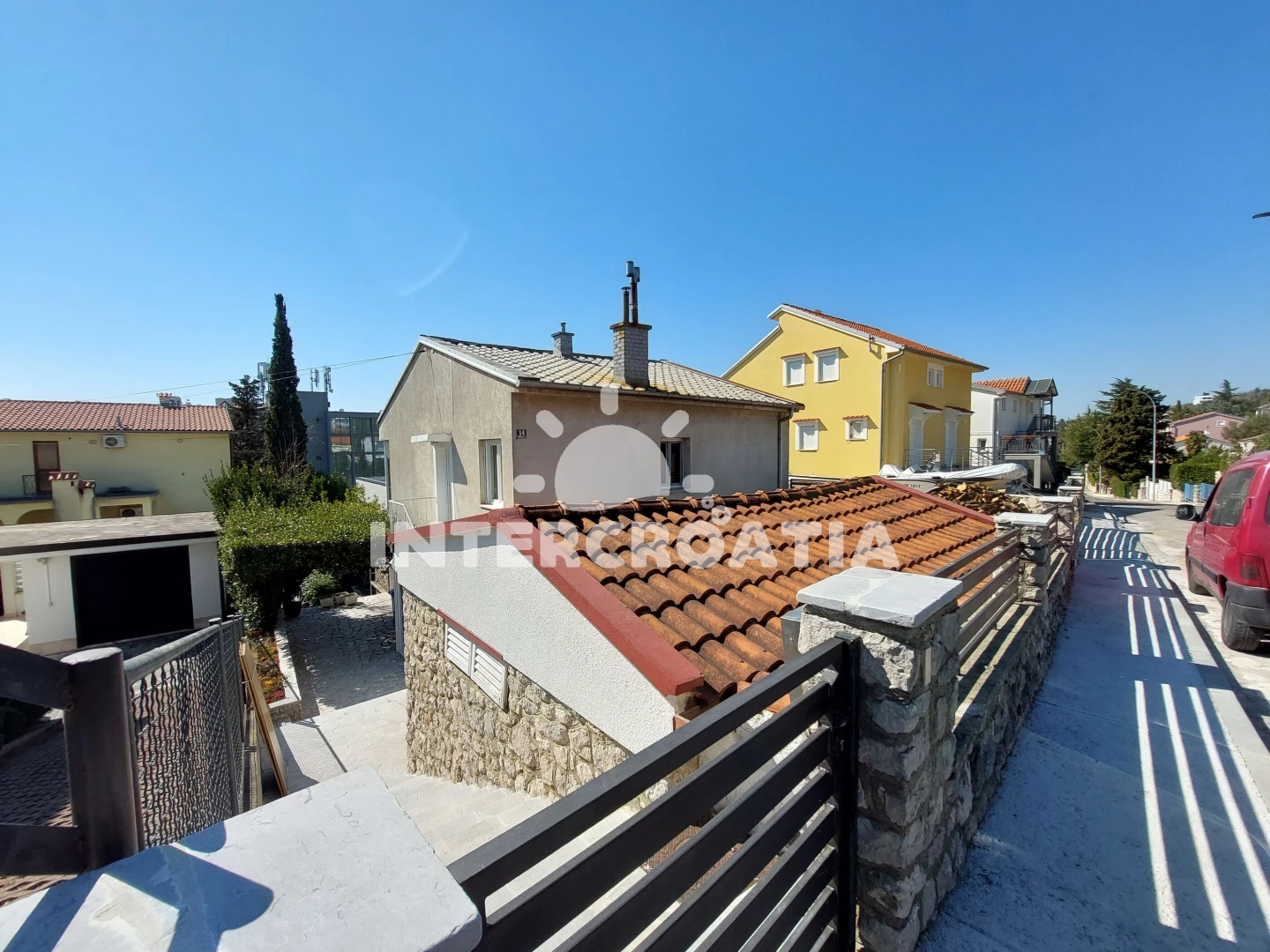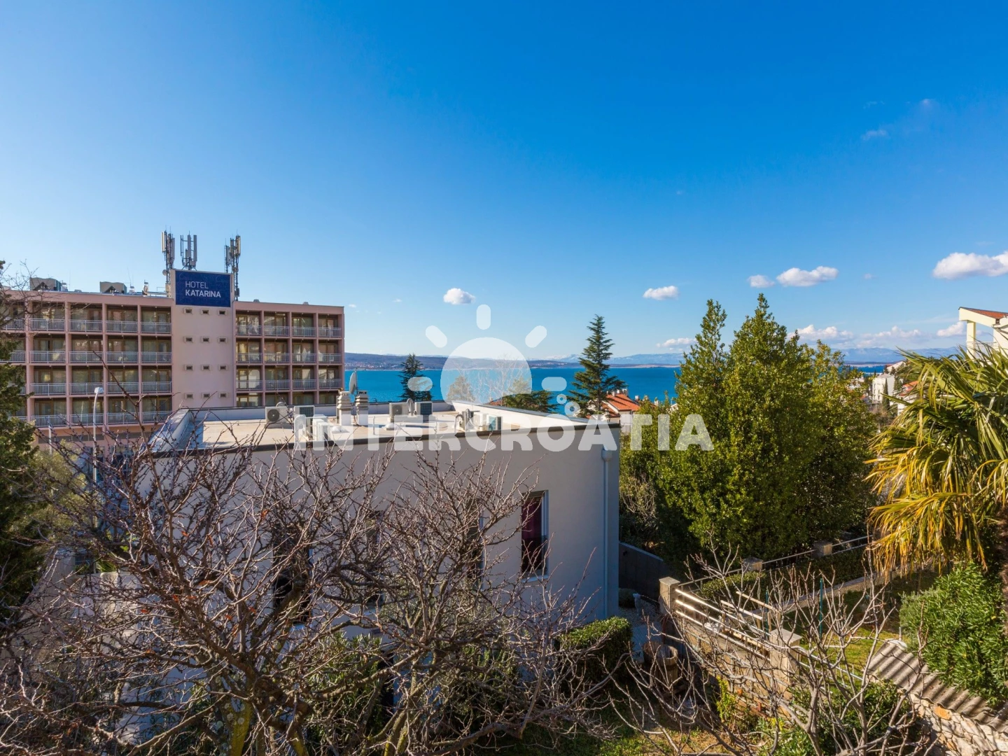 Vzdálenosti: Moře 150 m, pláž 200 m (skalnatá, oblázková, větší kamení a betonové desky), supermarket 200 m, směnárna 200 m, bar 200 m, restaurace 200 m, centrum 300 m, lékárna 350 m, banka 350 m, pošta 350 m, ambulance 700 m, potápění 900 m, čerpací stanice 2 km, muzeum 2,8 km, diskotéka 2,8 km,