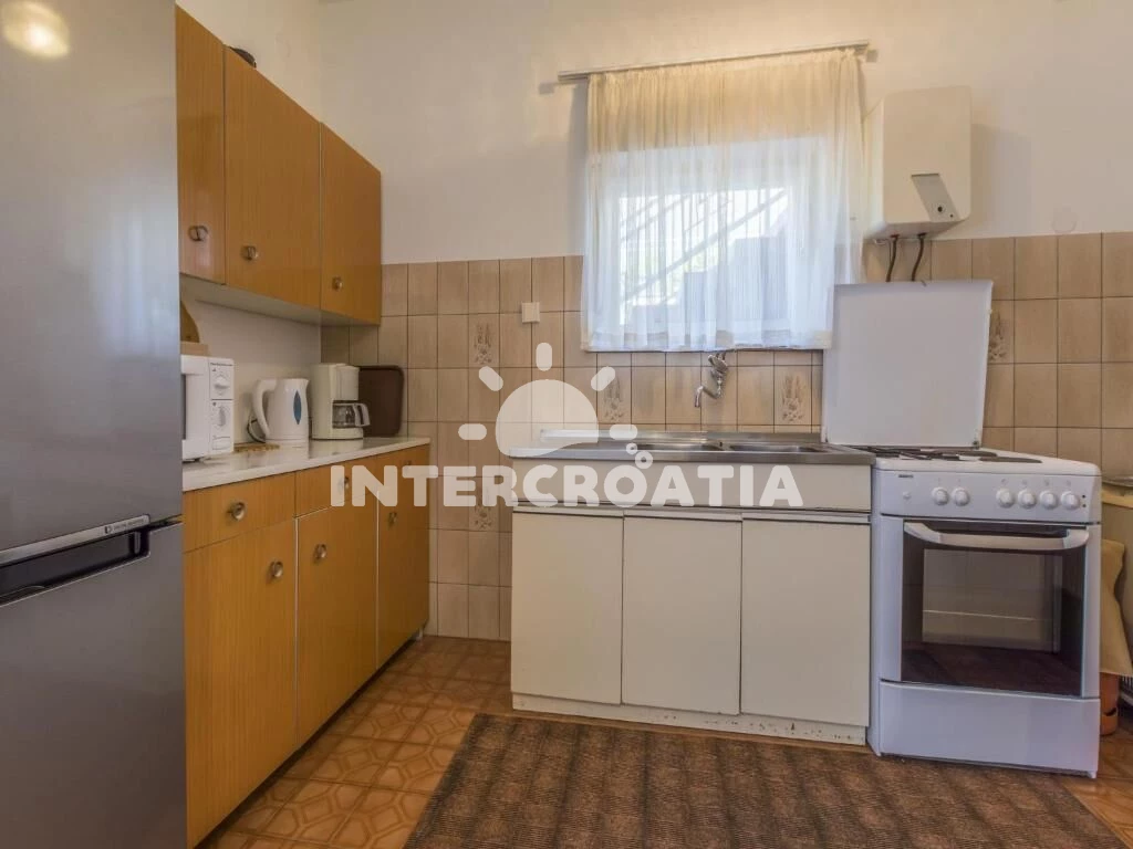Apartmán se nachází 300 m od moře a pláže. Pláž je skalnatá, oblázková a betonové desky. U objektu je k dispozici společná zahrada s posezením a grilem. Parkování je před domem.