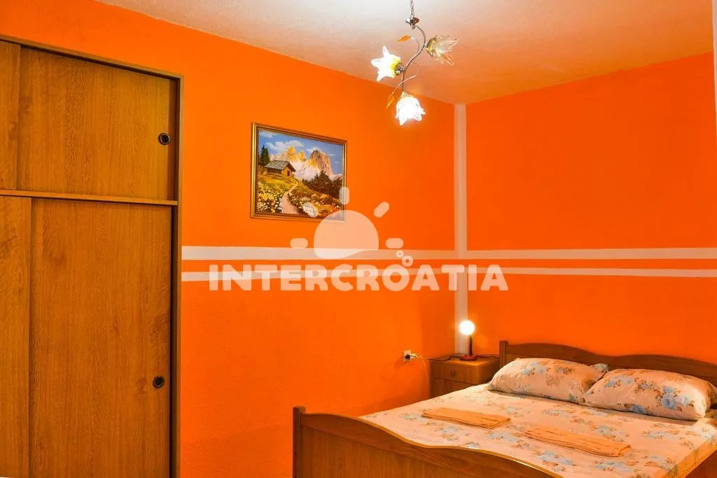 Dům s výhledem na moře, venkovní posezení na zahrádce s možností grilování. U objektu vyhrazené parkovací stání.