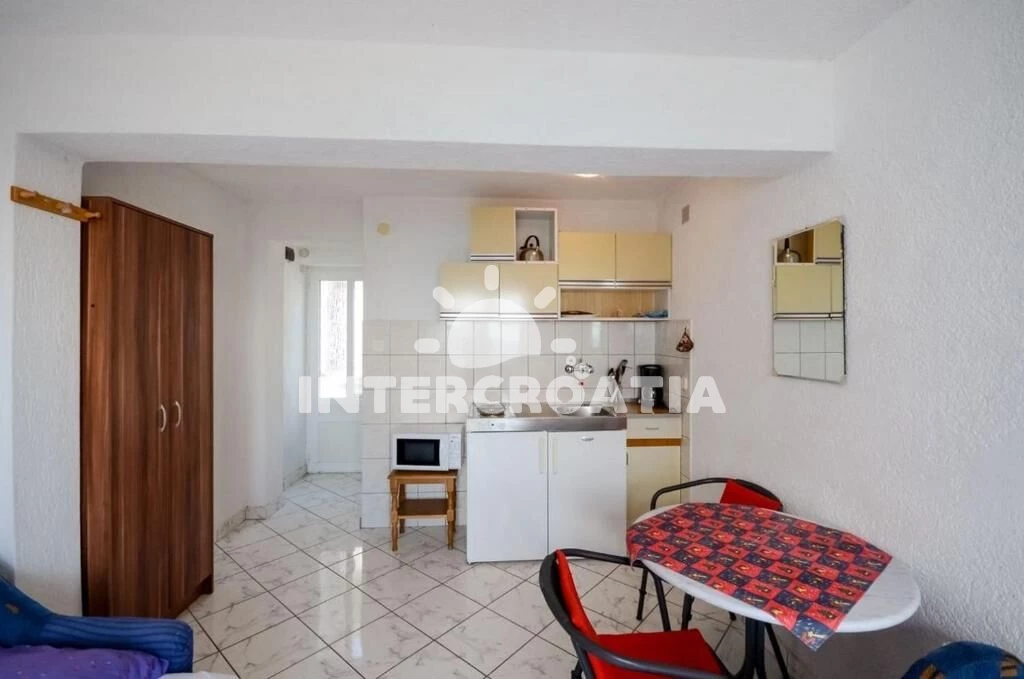 Apartmán (24 m2) studiového typu se nachází v 1. patře vily a je vhodný pro 2 osoby. Kuchyňský kout s dvouplotýnkovým vařičem, rychlovarnou konvicí, lednicí s mrazákem, kávovarem a nádobím. Dále jídelní stůl, televize se satelitem, dvě samostatná lůžka, klimatizace a vstup na balkon. Koupelna se sprchovým koutem, umyvadlem a wc. K dispozici balkon s posezením. Parkování pro automobily zdarma u objektu.