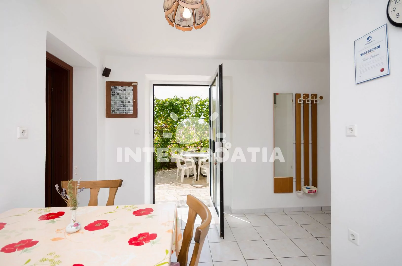 Komfortně zařízená apartmánová vilka s terasou, posezením na zahradě u grilu, výhledem na moře a okolí. Parkovací místa přímo u objektu.